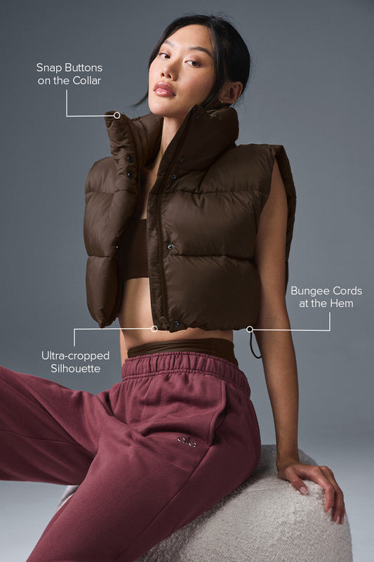 Cropped Gold Rush Puffer Vest - Espresso