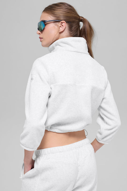 Polar Fleece Retreat Cropped Jacket - White Heather Grey