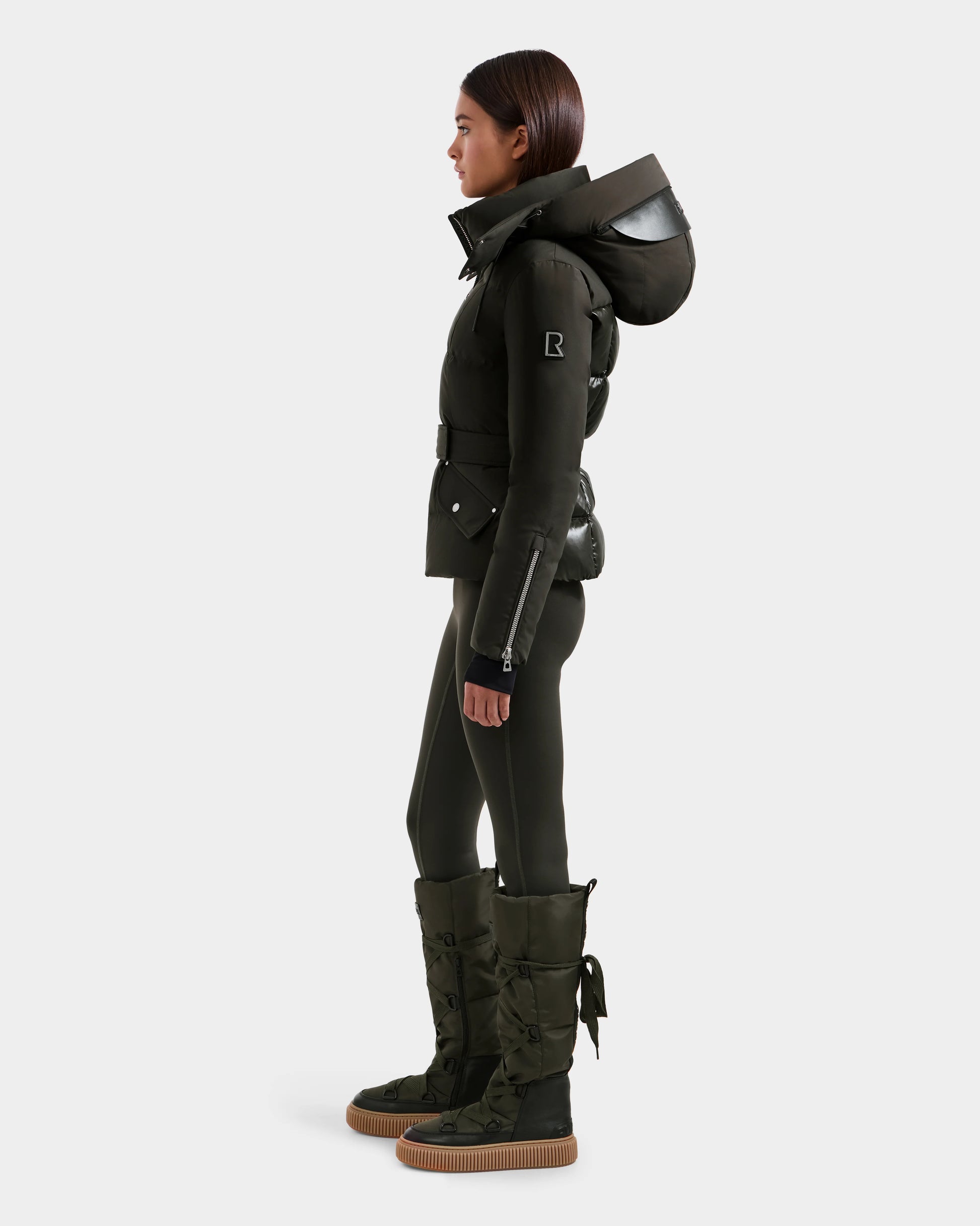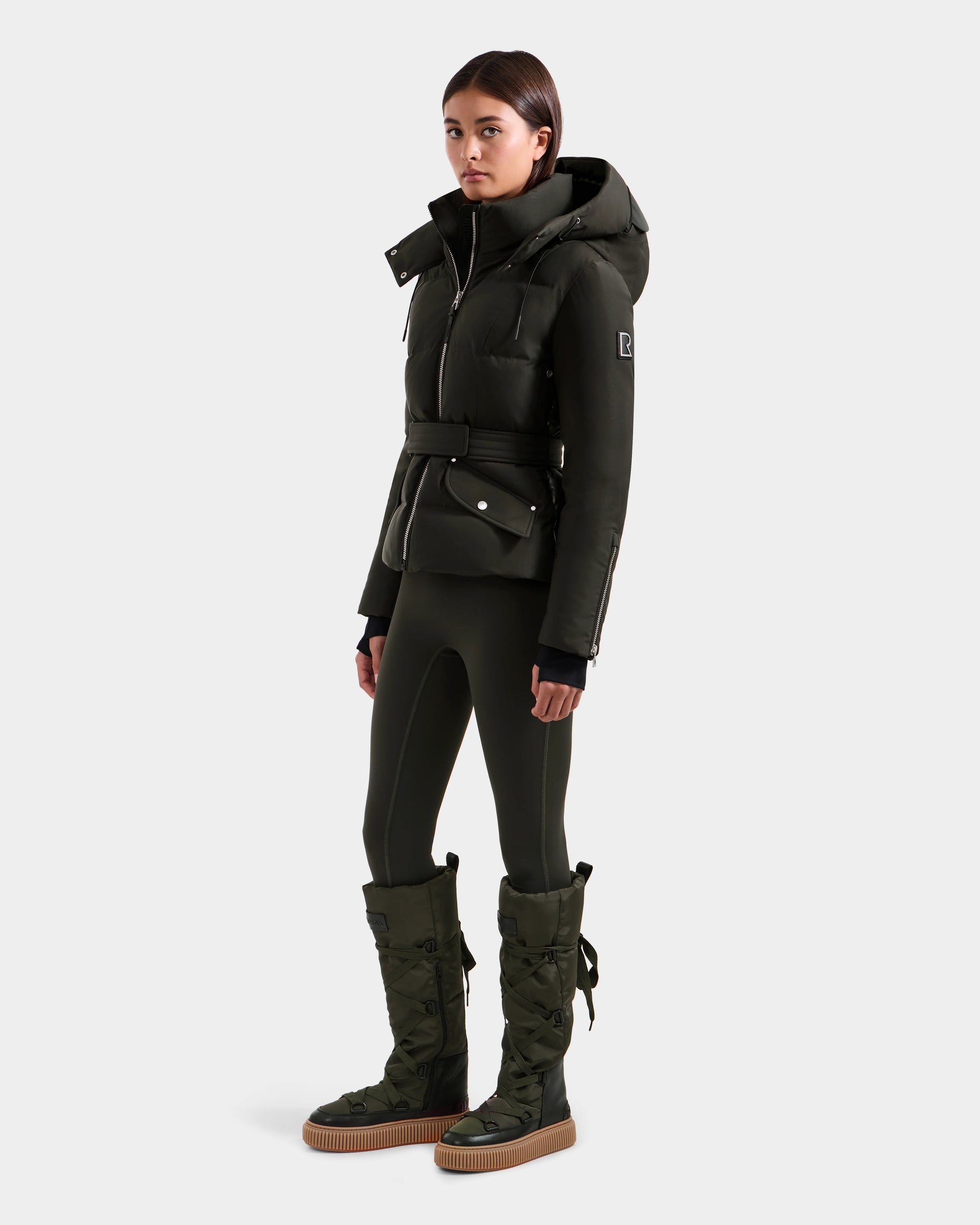 The ADELINE H by RUDSAK is a fitted women’s heritage down puffer designed to take on winter with elevated edge. Featuring a removable belt for a cinched silhouette, half-glossy back for modern contrast, and zippered sleeve openings for versatility, it blends fashion and function seamlessly. Inner backpack straps allow for effortless carry, while high-loft down ensures warmth. A cold-weather staple, ADELINE H delivers iconic RUDSAK style built for city streets and beyond.