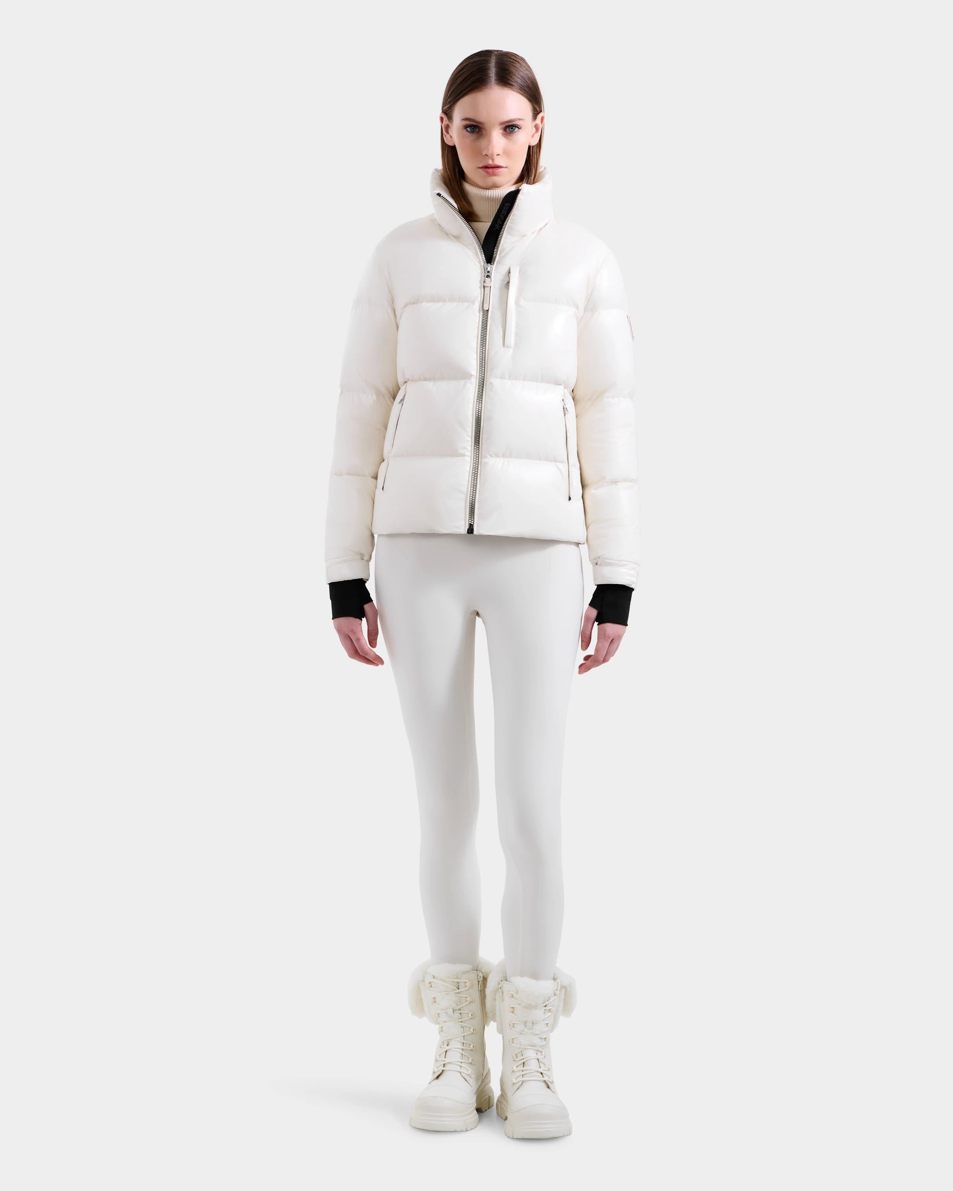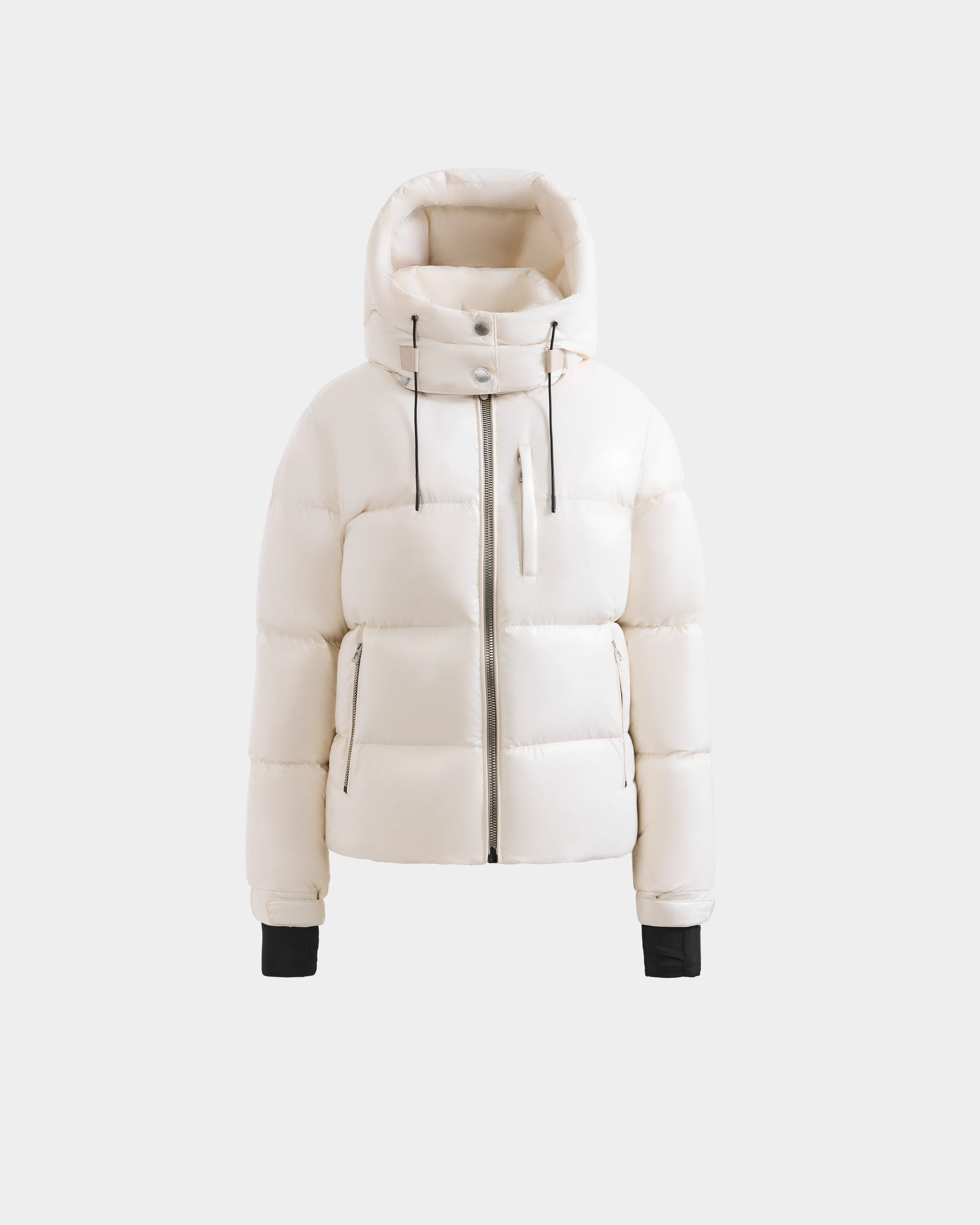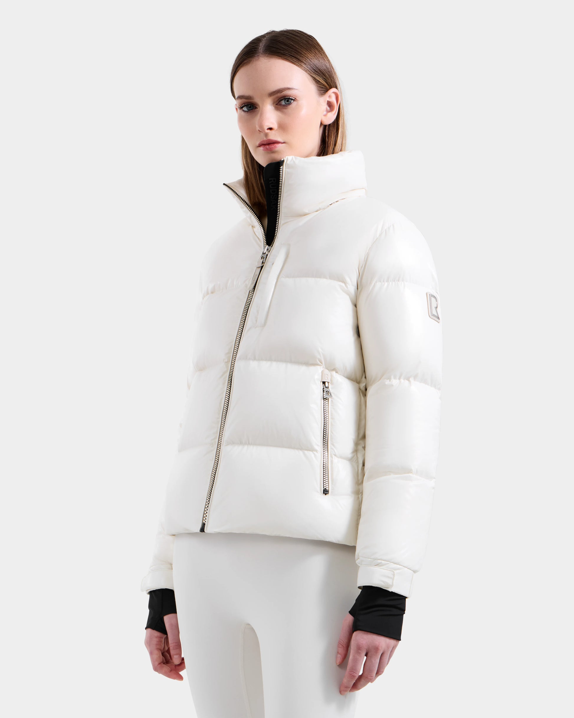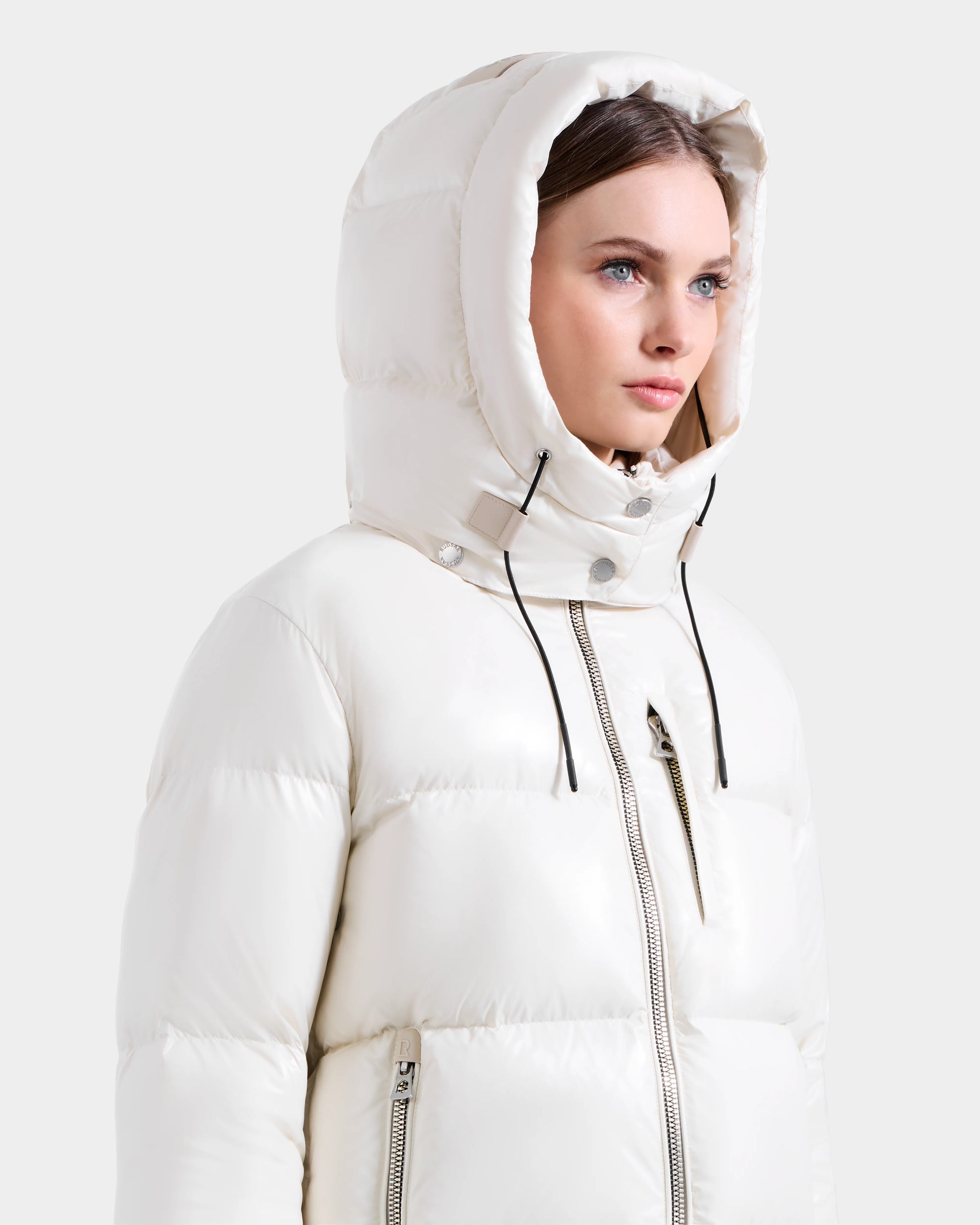 The ASHLYN by RUDSAK is a women's glossy down puffer with a wind and water-resistant shell for reliable weather protection. Insulated with high-loft RDS-certified down, it provides exceptional warmth without the bulk. Featuring a removable hood for versatile styling options, this puffer offers both functionality and style. Ideal for winter and cold days, the ASHLYN S down puffer is a sleek everyday essential that keeps you warm and fashionable throughout the season.