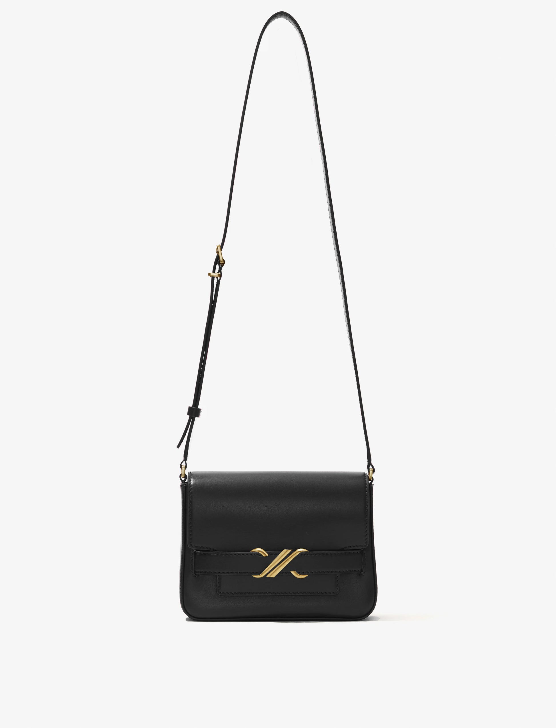 The Monogram Box Bag is crafted in smooth, structured leather to a crossbody silhouette. Features a warm gold-tone metal monogram that spans the center front. Refined with an internal zipper compartment, a card holder slot, and a patch pocket for easy access. The front flap secures with a magnetic closure, seamlessly integrated into the monogram design, while the back is finished with an outside slip pocket.