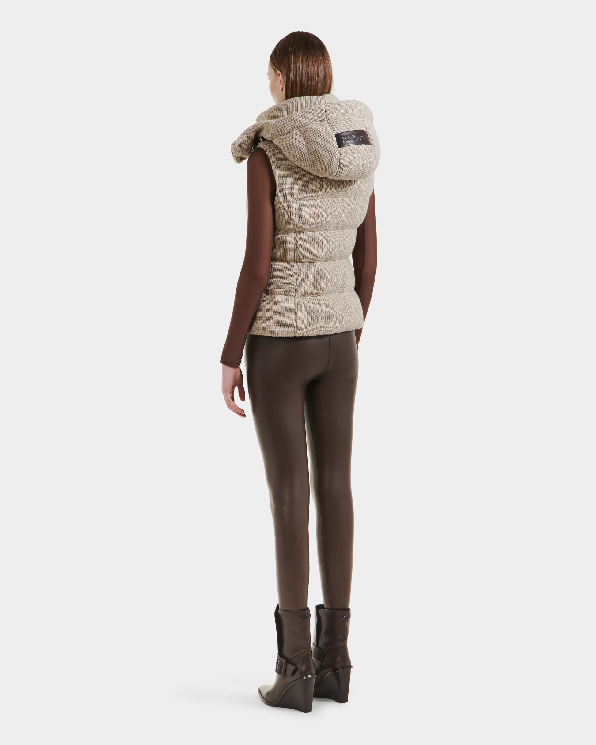 Crafted in a cozy knit wool-blend shell, the CASSIDY by RUDSAK is a women’s fitted down vest that blends softness with structure. This sleeveless silhouette features a high neck and removable hood for customizable coverage, while high-loft down fill provides superior insulation. Zippered pockets and sleek trim details complete the polished look. Perfect for transitional weather and travel days, CASSIDY delivers lightweight warmth with a sophisticated edge—ideal for layering from city strolls to weekend escapes.