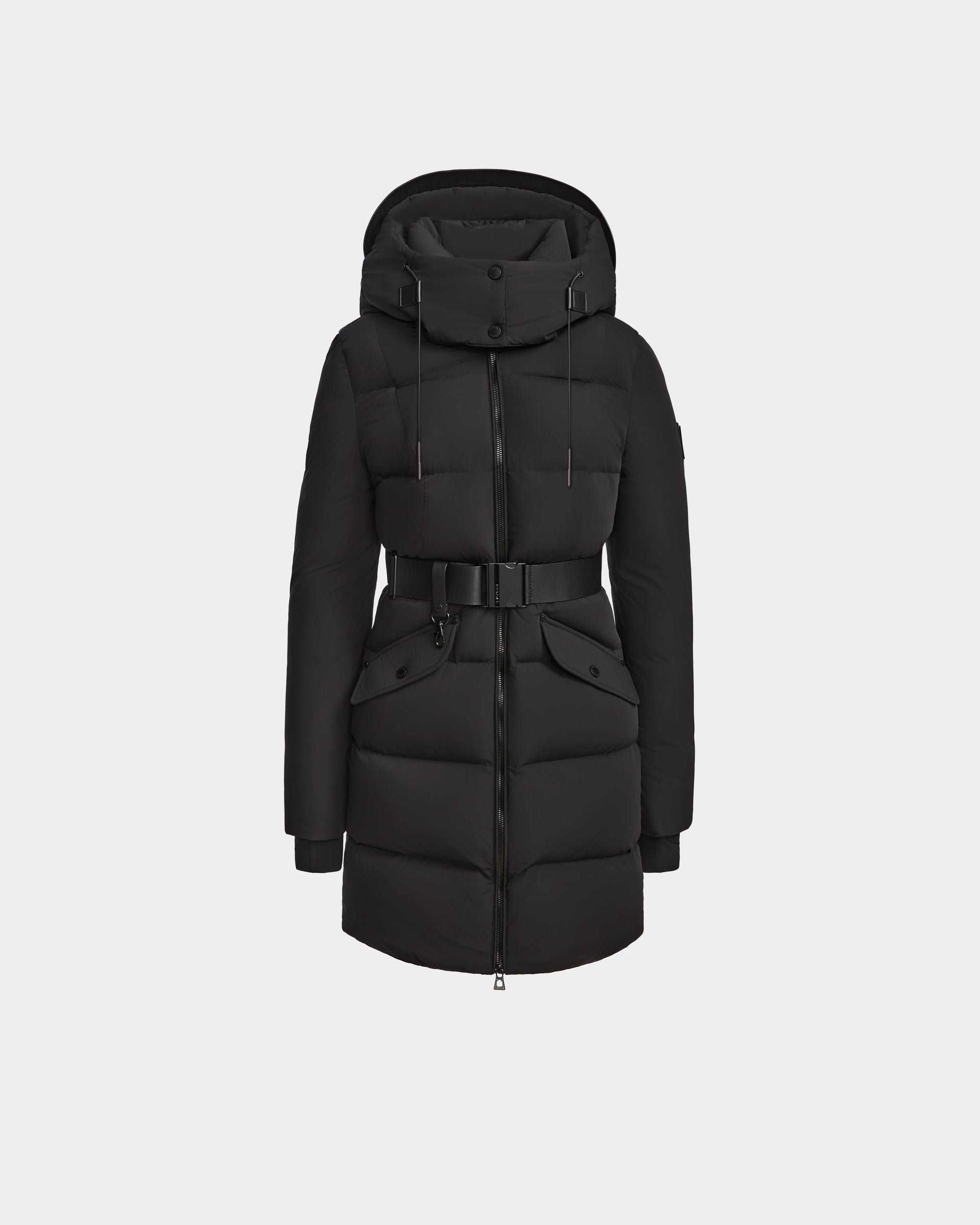 Elevate your winter style with the CAT by RUDSAK, a mid-length women's quilted down puffer that blends elegance with practicality. Insulated with RDS-certified down, this coat delivers superior warmth for cold days. It features a removable hood, a fitted silhouette, and an adjustable, removable belt for a tailored fit. Storm cuffs at the wrists offer extra protection against the elements. Wind and water-repellent, this mid-length puffer ensures you stay chic and comfortable in any weather. A perfect upgrade for your winter wardrobe.