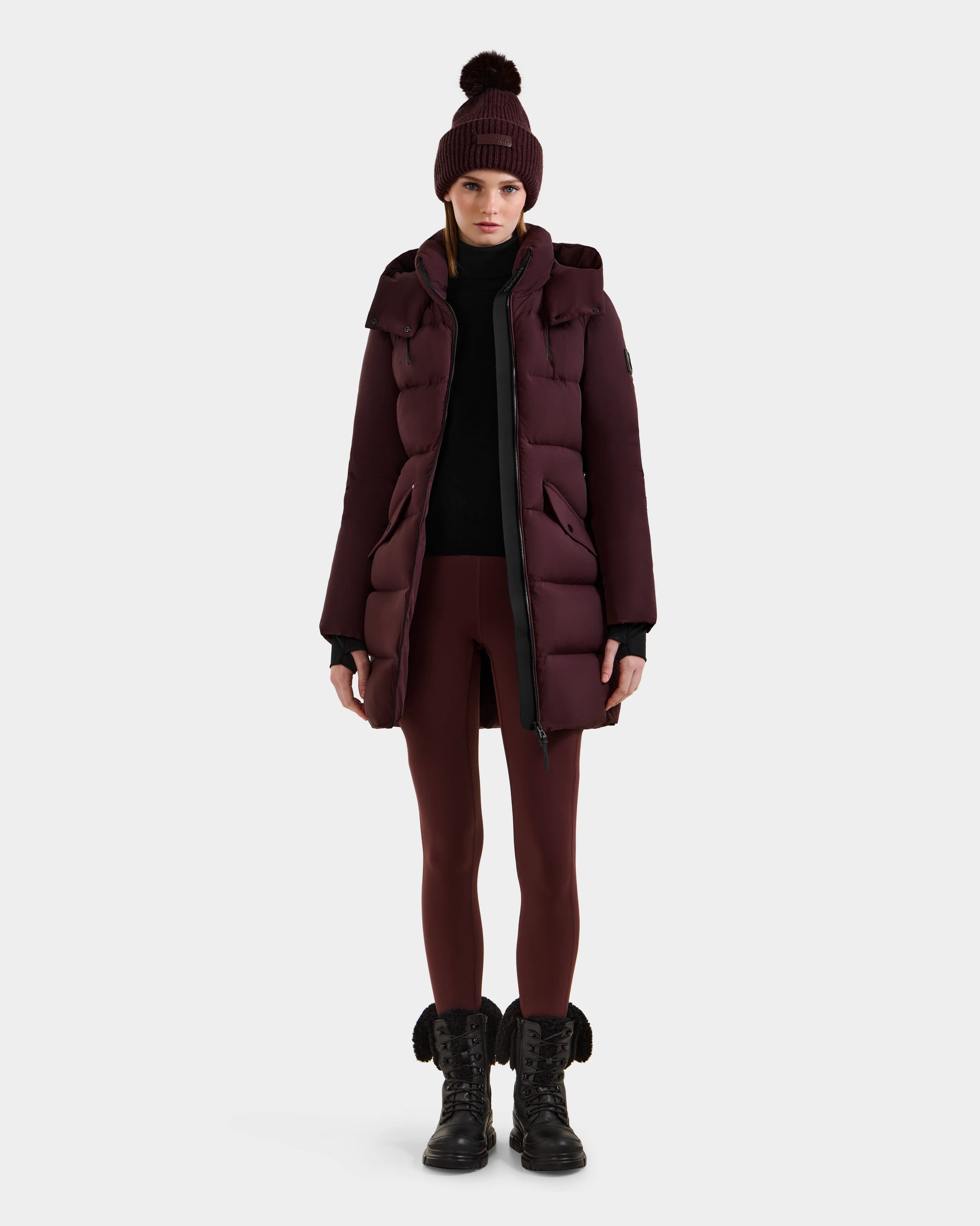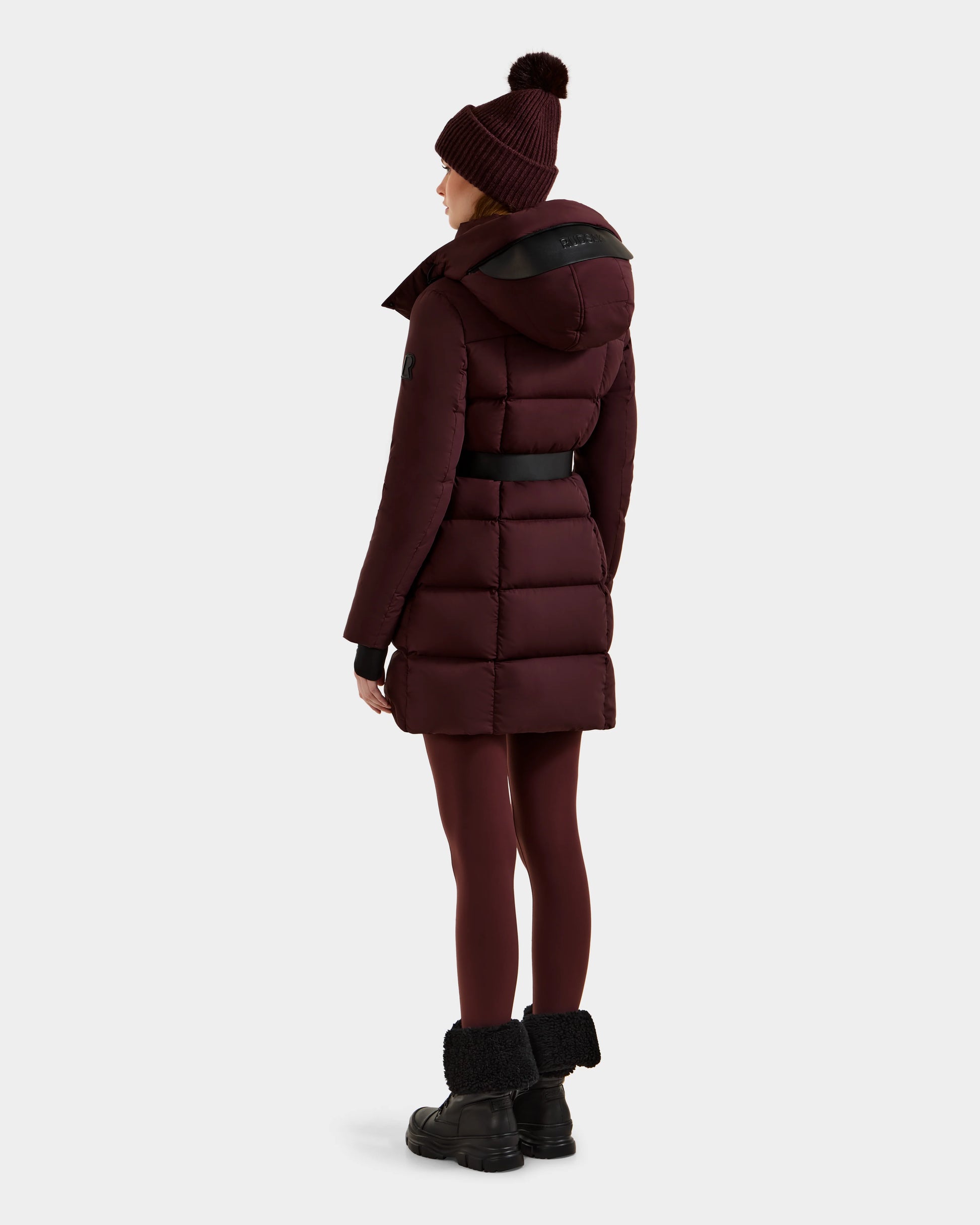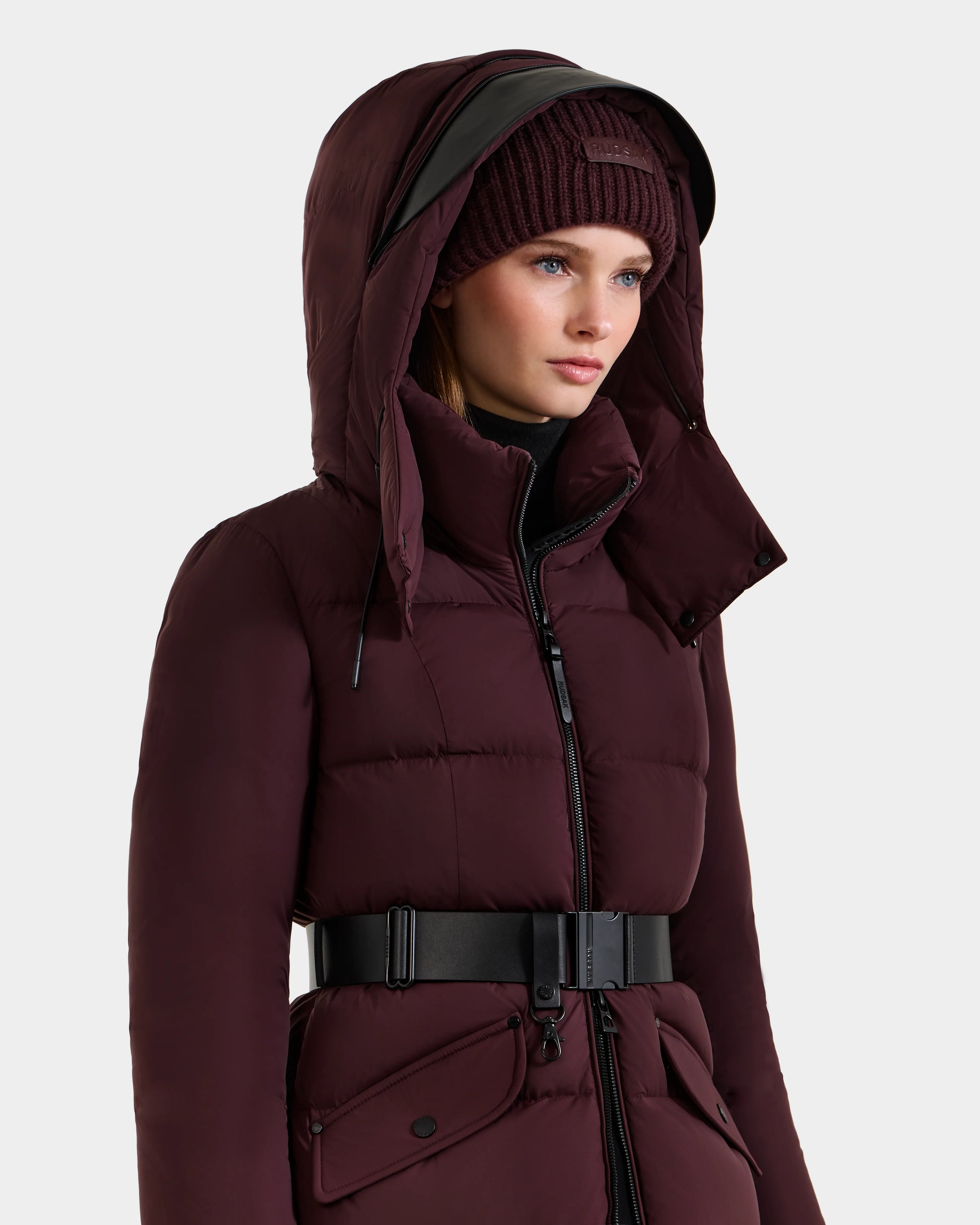 Elevate your winter style with the CAT by RUDSAK, a mid-length women's quilted down puffer that blends elegance with practicality. Insulated with RDS-certified down, this coat delivers superior warmth for cold days. It features a removable hood, a fitted silhouette, and an adjustable, removable belt for a tailored fit. Storm cuffs at the wrists offer extra protection against the elements. Wind and water-repellent, this mid-length puffer ensures you stay chic and comfortable in any weather. A perfect upgrade for your winter wardrobe.