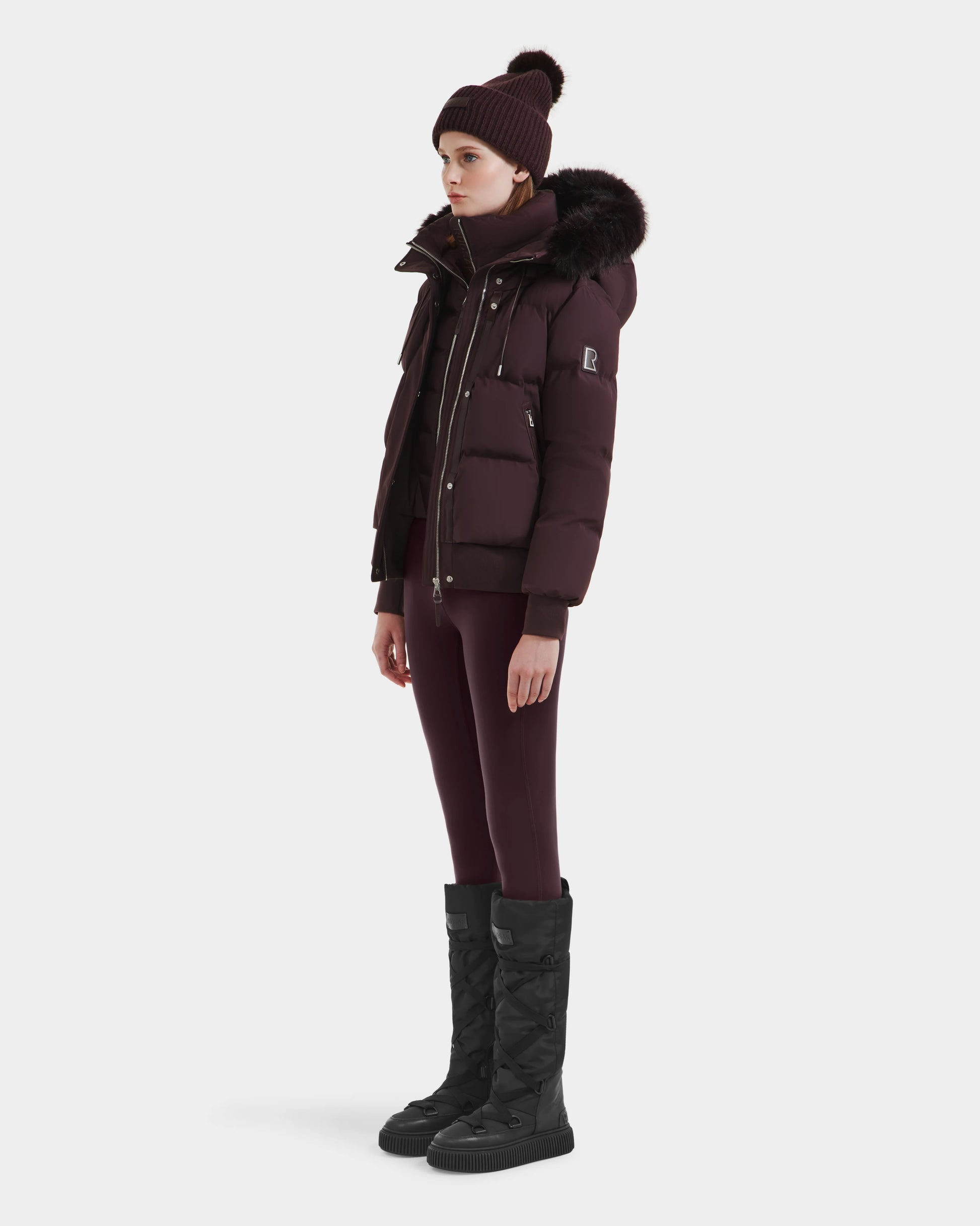 CIEYNA by RUDSAK is the ultimate winter essential, blending high-performance function with modern city polish. Designed in a recycled weather-resistant shell, this down-filled bomber delivers lightweight warmth with a sculpted silhouette. It features a removable inner dickie and faux fur hood trim for versatile wear. Sleek zip accents and soft ribbed cuffs finish the look with refined edge. From snowy streets to crisp commutes, CIEYNA offers elevated protection built to brave the elements in style.