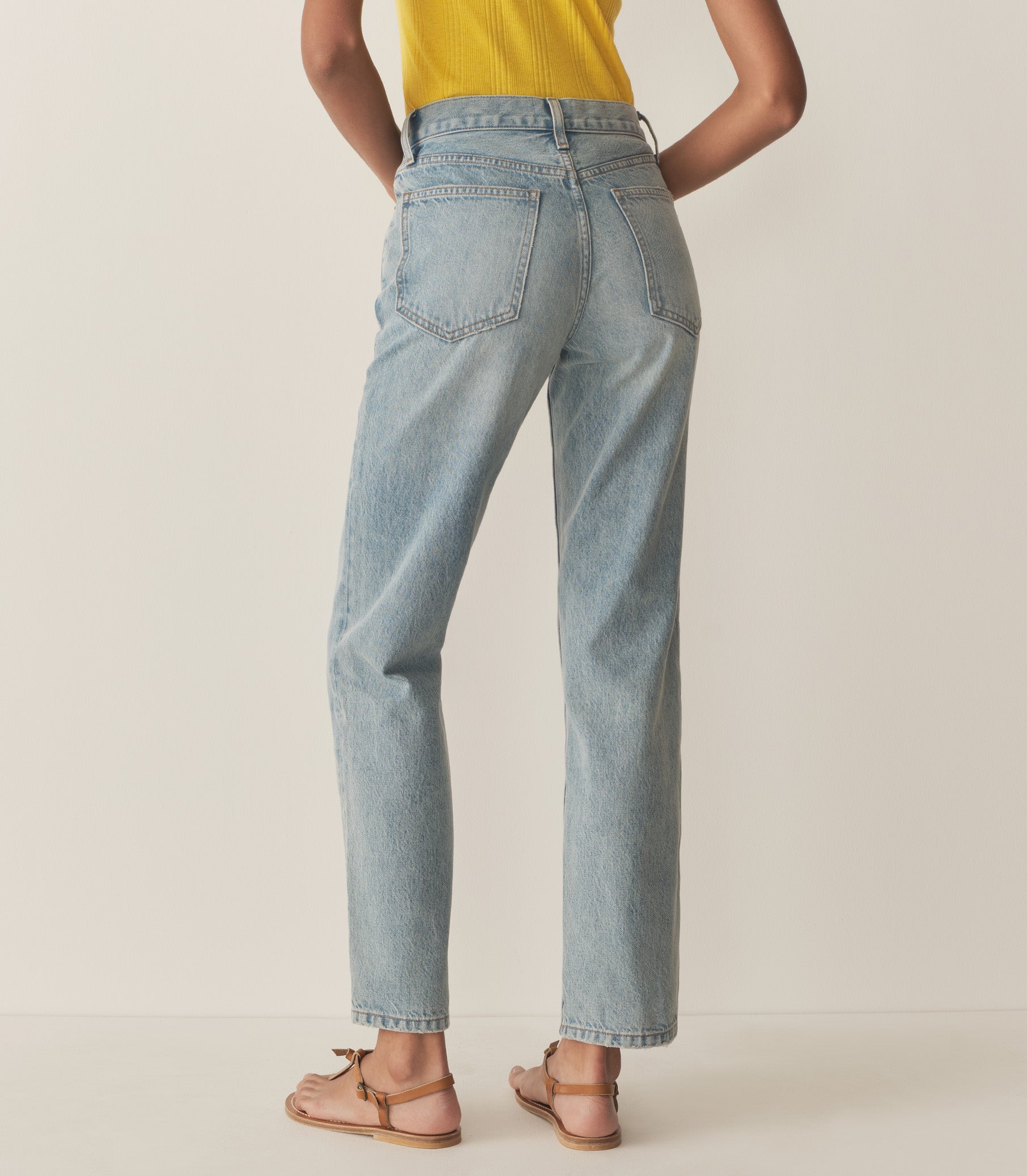 Inspired by our favorite vintage denim and crafted from organic cotton, our forever-favorite Diana Jean arrives in our lightest wash yet, Vendome. The Diana features a button fly, a high waist, and a classic straight leg. Pointed back pockets rest below a triangle yoke, while a second set of functional pockets in front include a mini side pocket on the right.