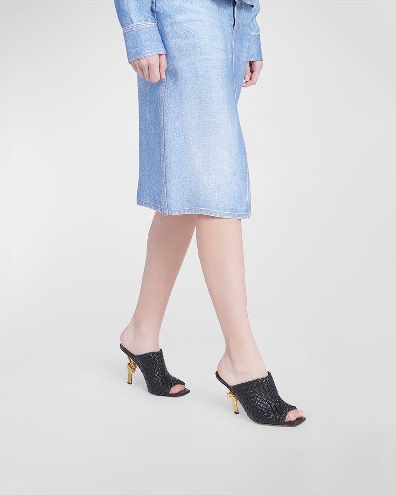 Gold Knot Heel Mules Woven High Heel Pumps