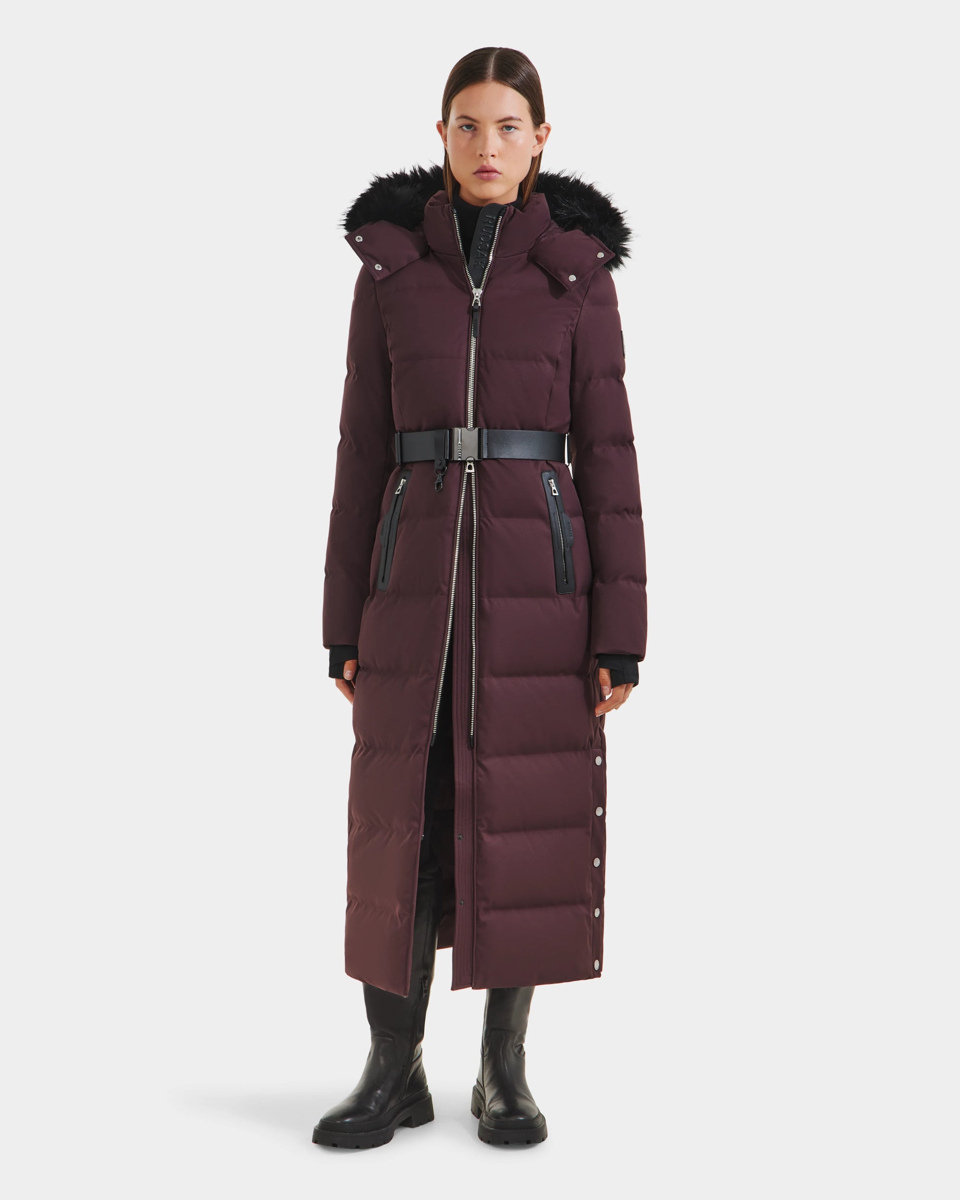 The IZABELLA H by RUDSAK is a full-length women’s puffer built for warmth, elegance, and high function. Crafted from wind- and water-resistant fabric, it’s insulated with a high-loft 90/10 RDS-certified down fill. Details include a removable faux fur trim, vegan leather belt, and a two-way front zipper for flexible wear. Inner backpack straps offer easy carrying, making this coat ideal for cold-weather commutes, travel, or city strolls in elevated style.