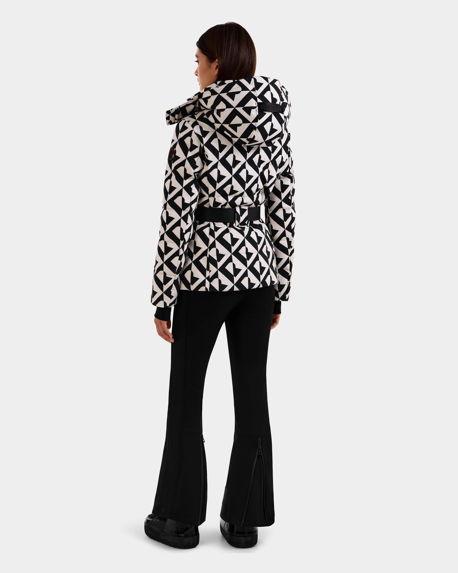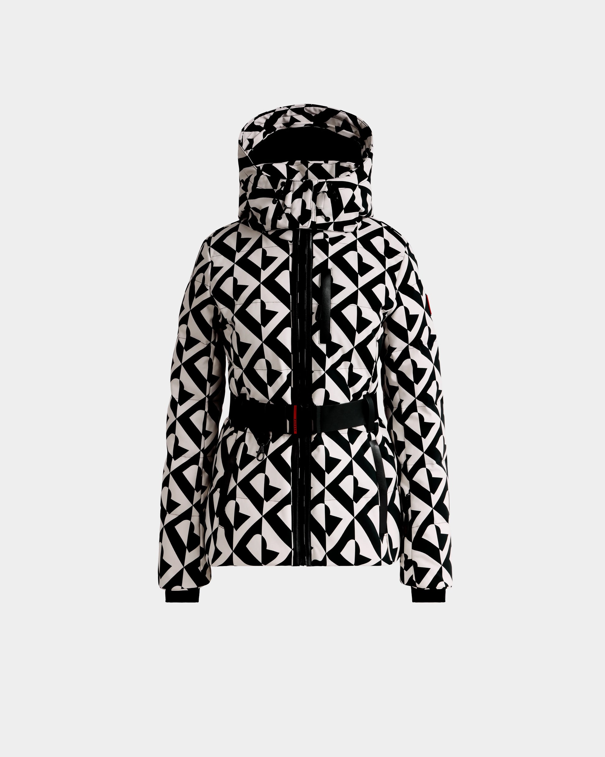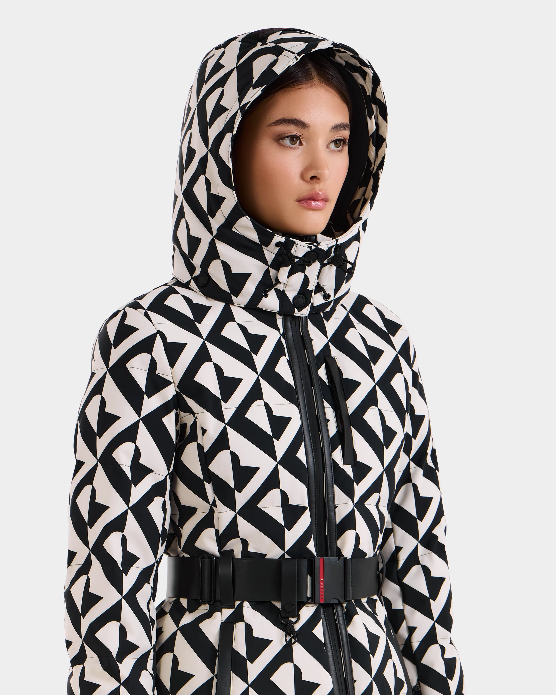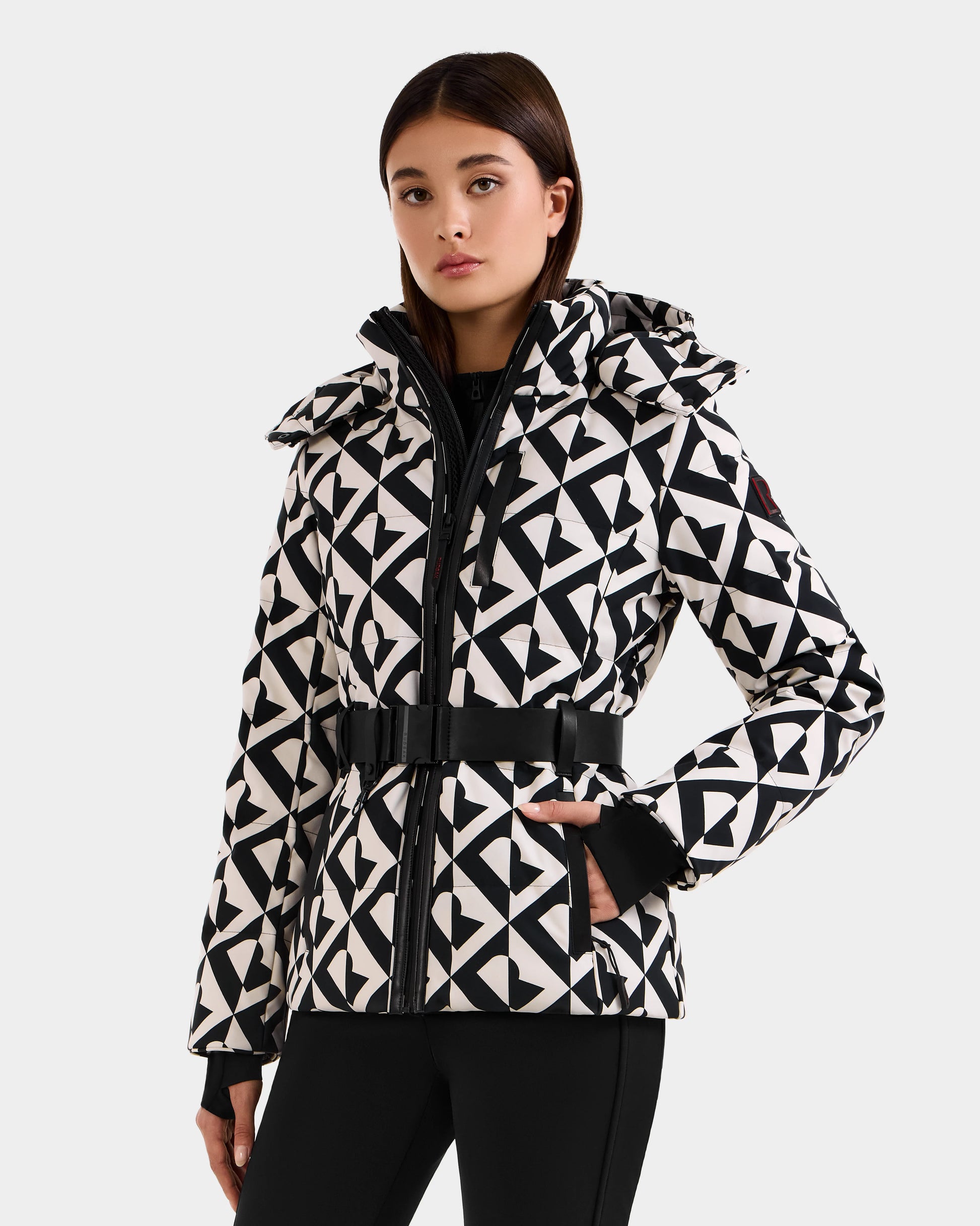 JOANNA P by RUDSAK is a women’s down ski jacket refreshed in a soft, sculptural print. The tonal pattern elevates a streamlined silhouette with a removable belt, storm cuffs, and a double front-zip expansion for easy layering. Practical touches—a sleeve ski-pass pocket, inner snow-skirt, and removable hood—keep you slope-ready. Insulated with premium down and equipped with RECCO® rescue technology, it delivers warmth without bulk from first chair to après, finished with smooth hardware and clean proportions.