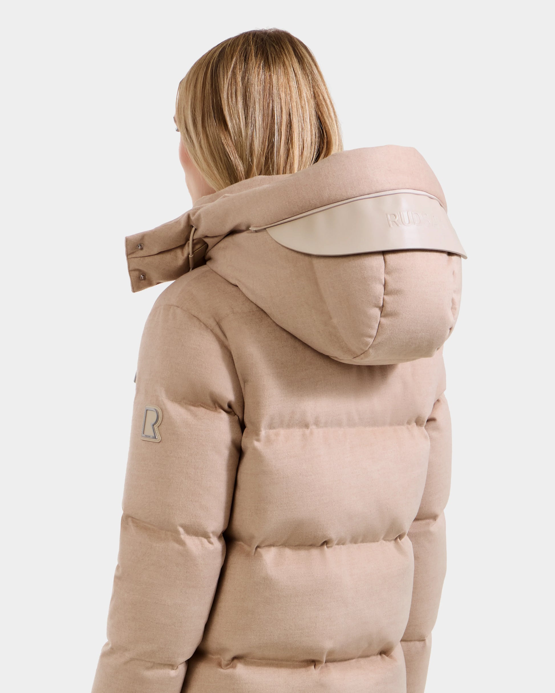 JOON W by RUDSAK is a women’s wool-blend down puffer designed for refined warmth and modern versatility. Tailored in a sleek silhouette, it’s insulated with high-quality down for lightweight protection without bulk. A removable hood adapts to shifting weather, while inner backpack straps offer hands-free carrying. Finished with storm cuffs for added insulation, JOON W blends premium materials, thoughtful details, and contemporary style—perfect for city winters and elevated cold-weather layering.