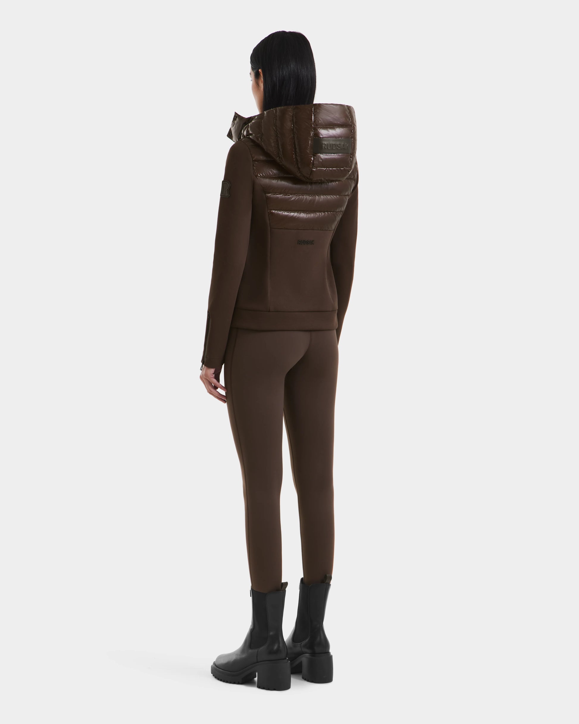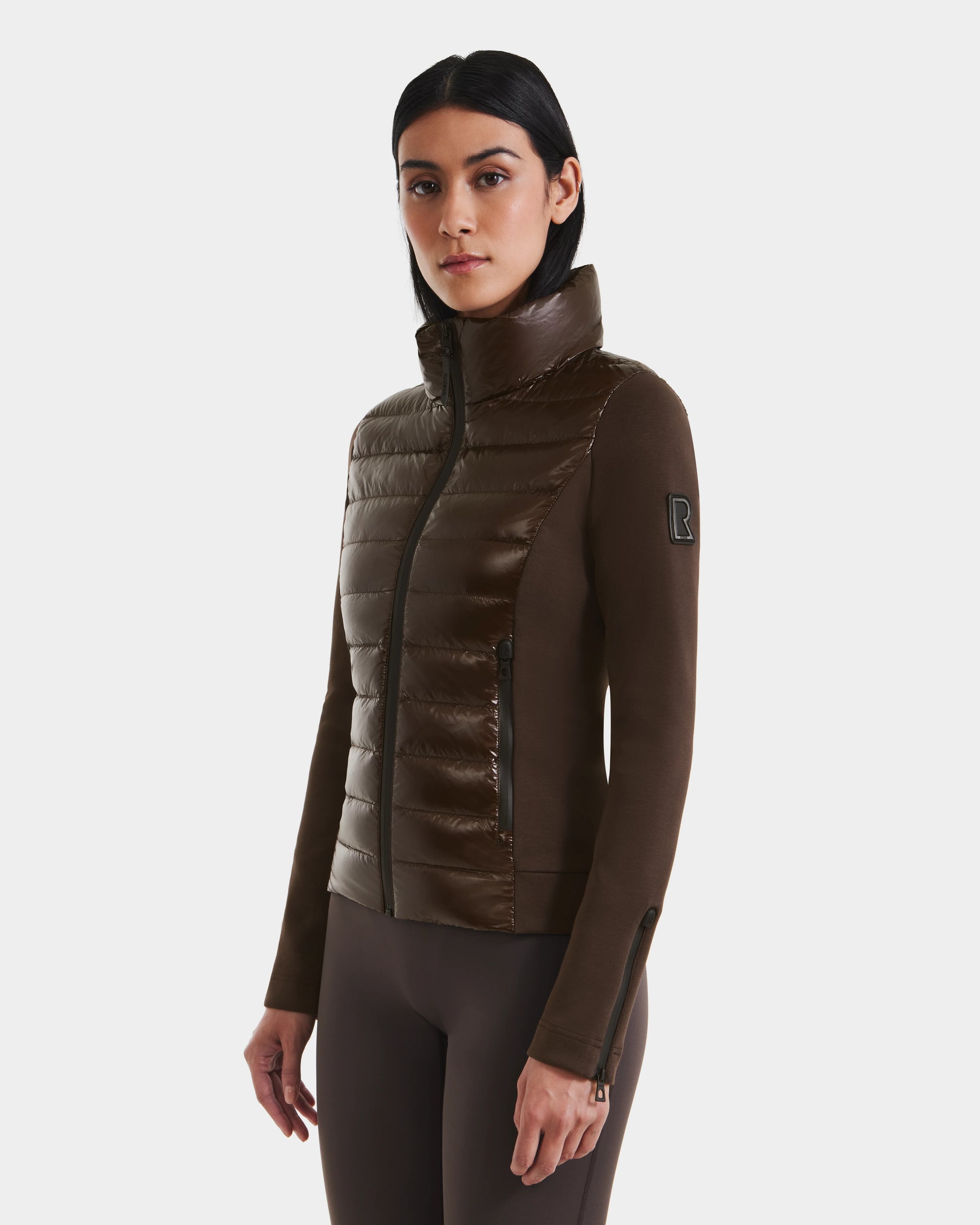 The MABS is a lightweight activewear jacket for women. It features a sporty silhouette crafted from a combination of RUDSAK’s glossy material and stretch neoprene that is ultra-light and designed for movement and comfort. Ideal for mild days and layering in colder temps, this jacket is insulated with a high loft blend of RDS-certified down. Complete with a removable hood with interior storm fastener and waterproof zippers, this light-as-a-cloud puffer will take you through the seasons in style.