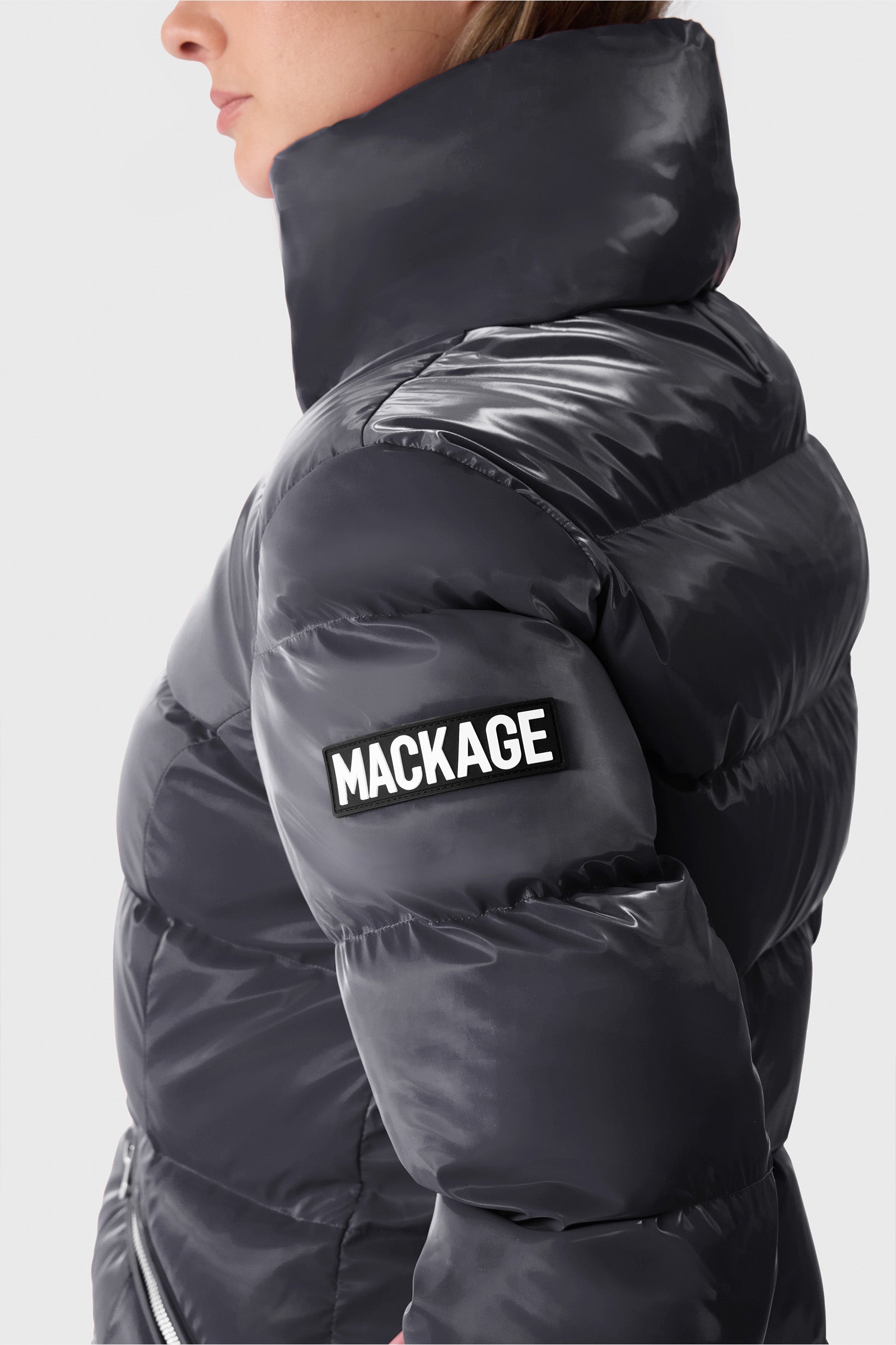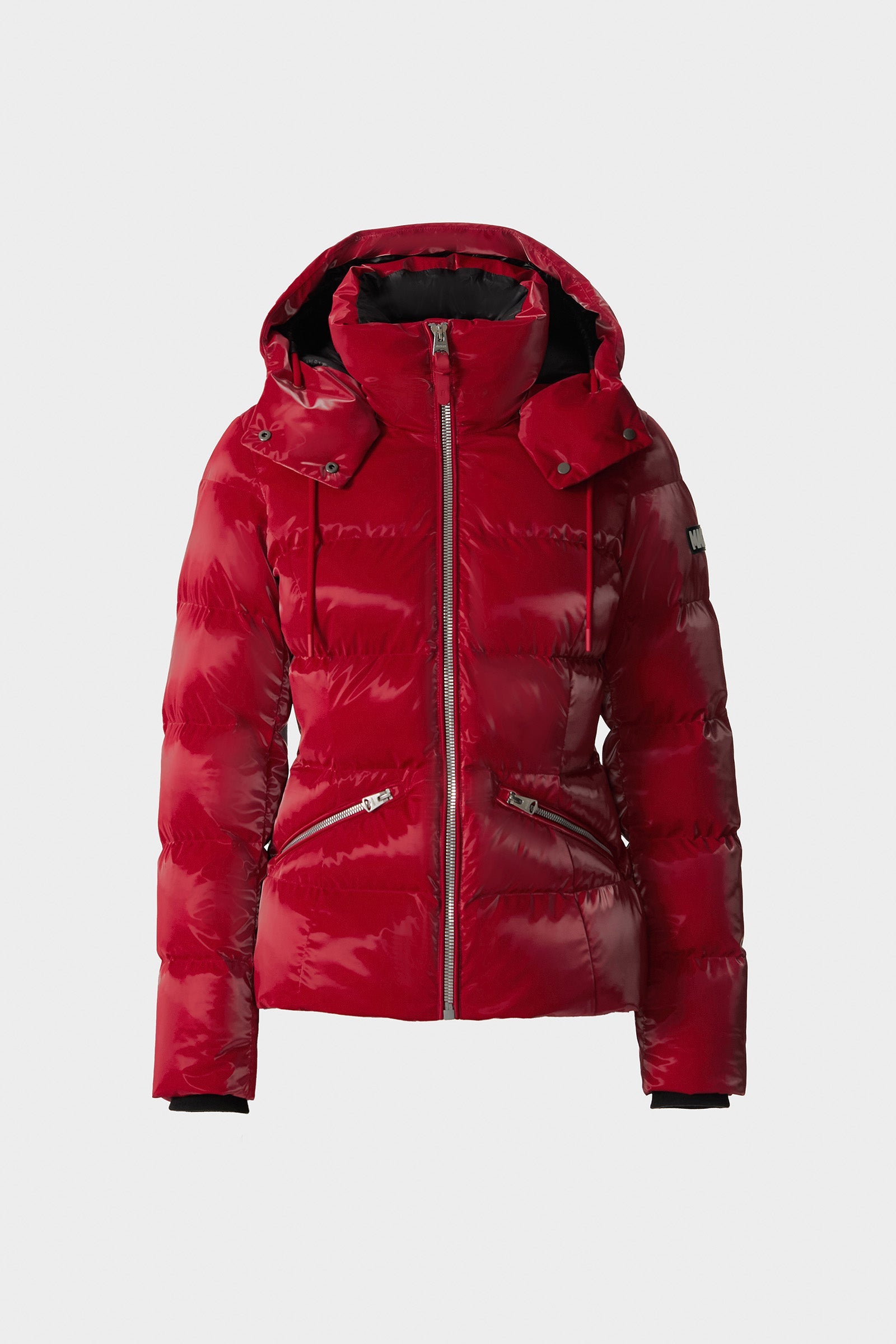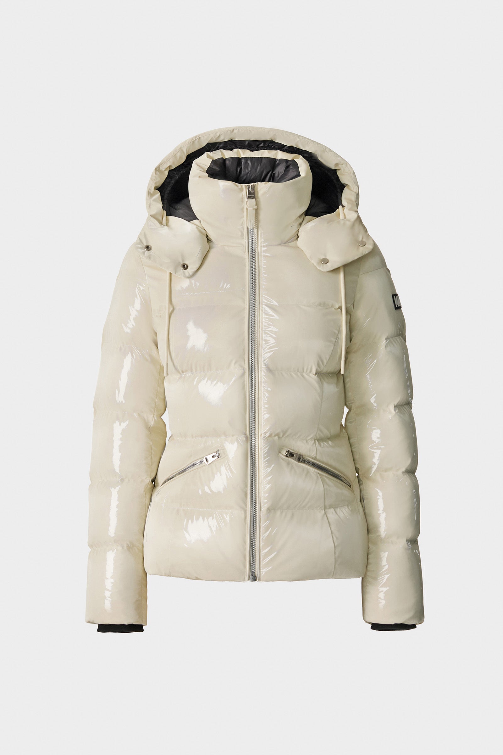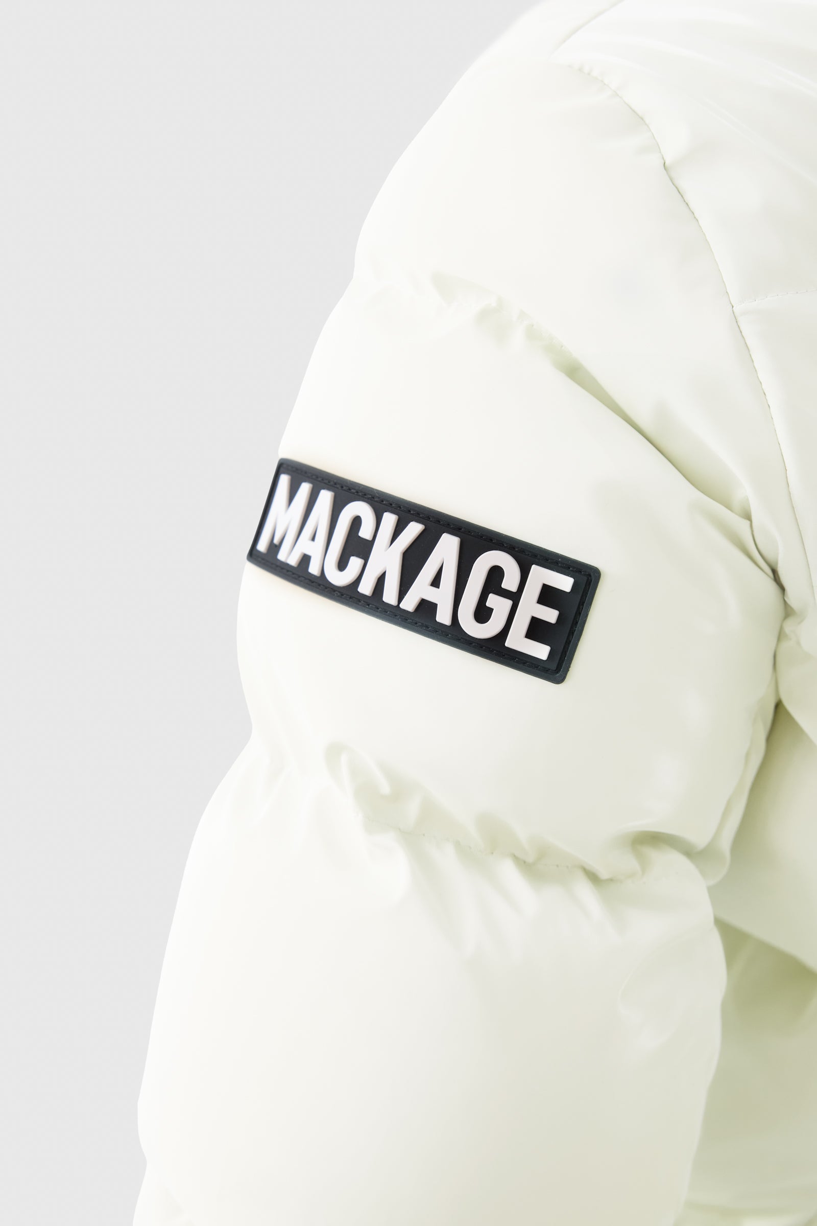 MADALYN-GLO is a high-gloss down jacket crafted from sustainable materials and engineered for deep cold. Designed with a removable hood and adjustable storm visor, this high-performance style features rib knit cuffs, insulated zip pockets, and underarm eyelets for ventilation. A branded drawcord and signature MACKAGE patch finish the look.
