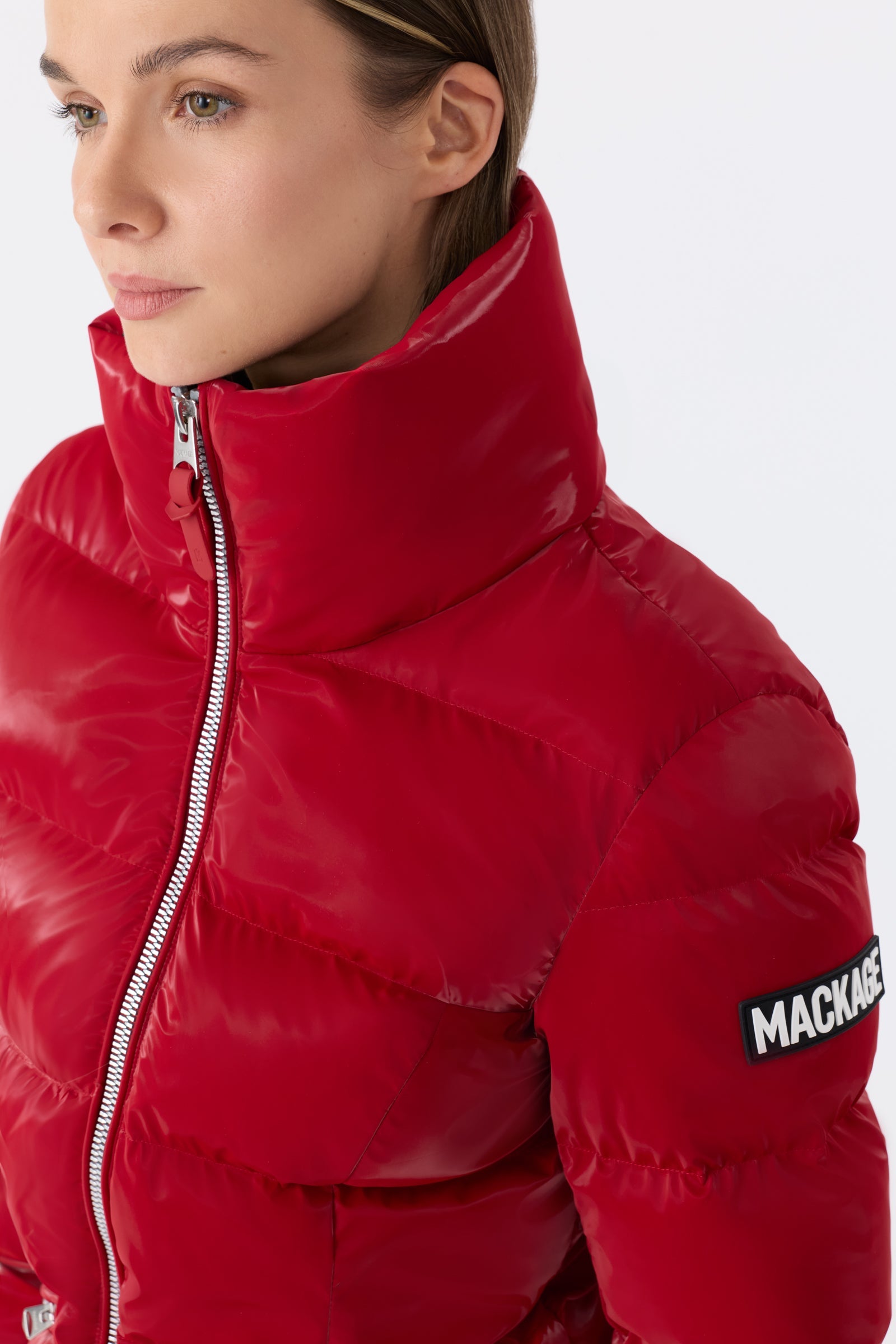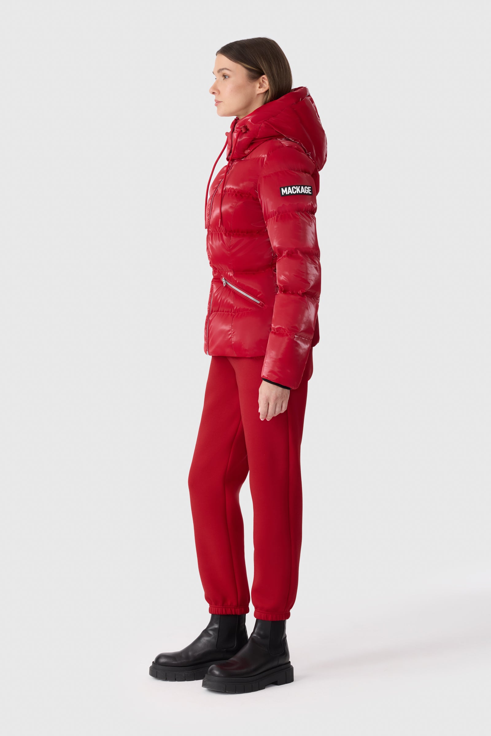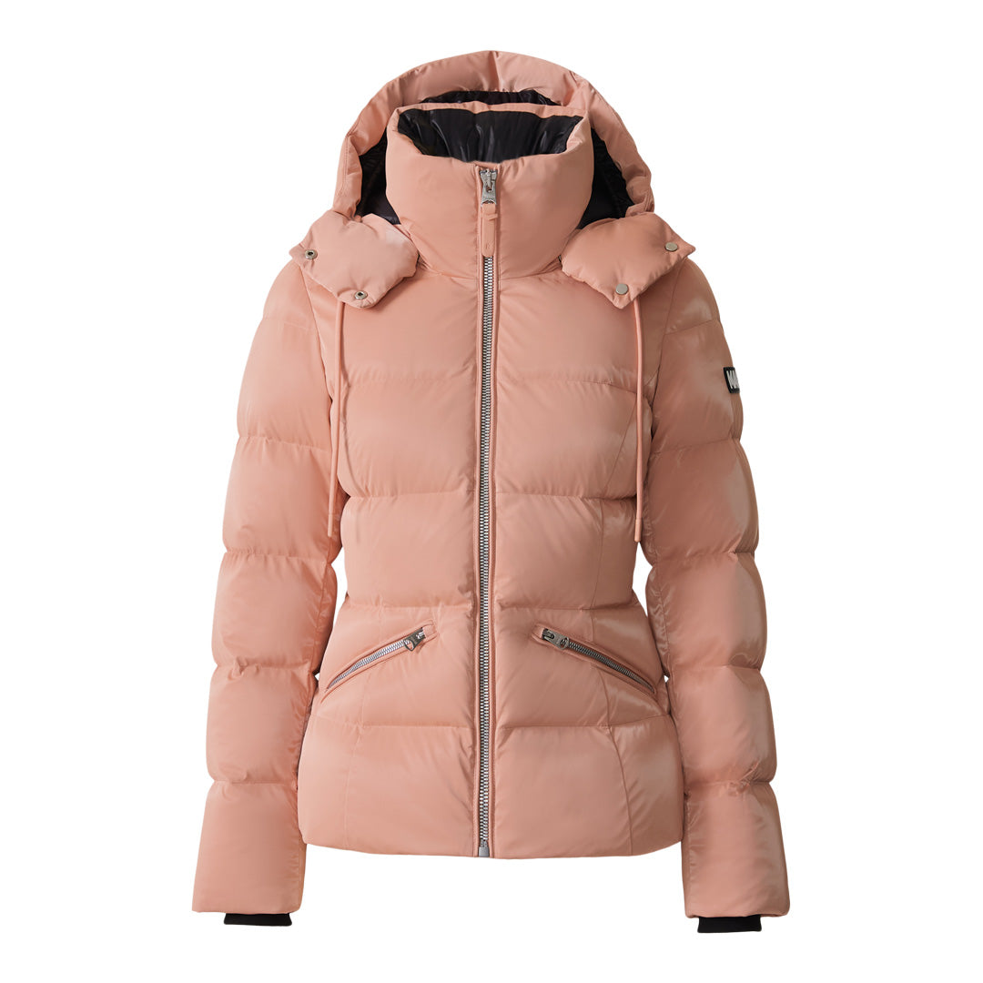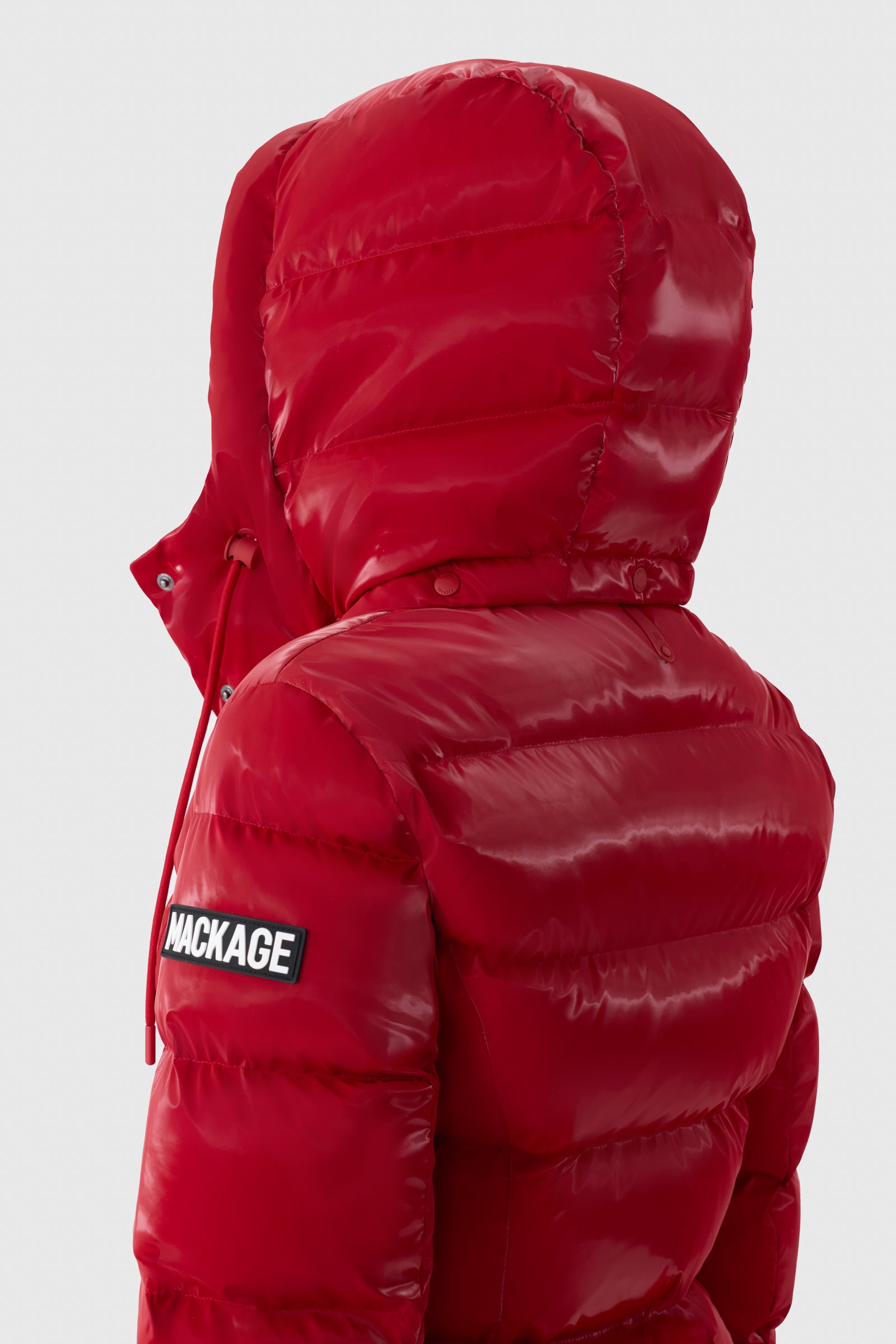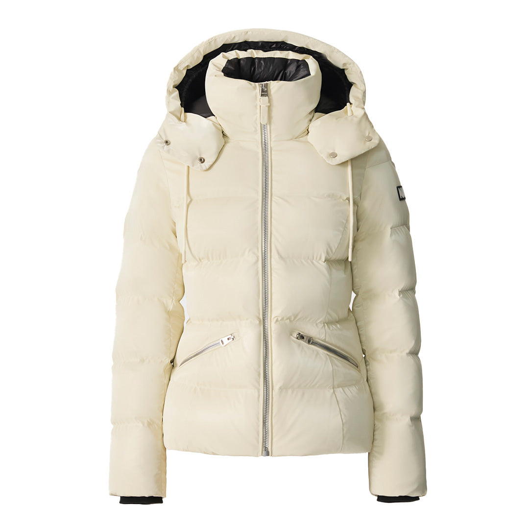 MADALYN-GLO is a high-gloss down jacket crafted from sustainable materials and engineered for deep cold. Designed with a removable hood and adjustable storm visor, this high-performance style features rib knit cuffs, insulated zip pockets, and underarm eyelets for ventilation. A branded drawcord and signature MACKAGE patch finish the look.