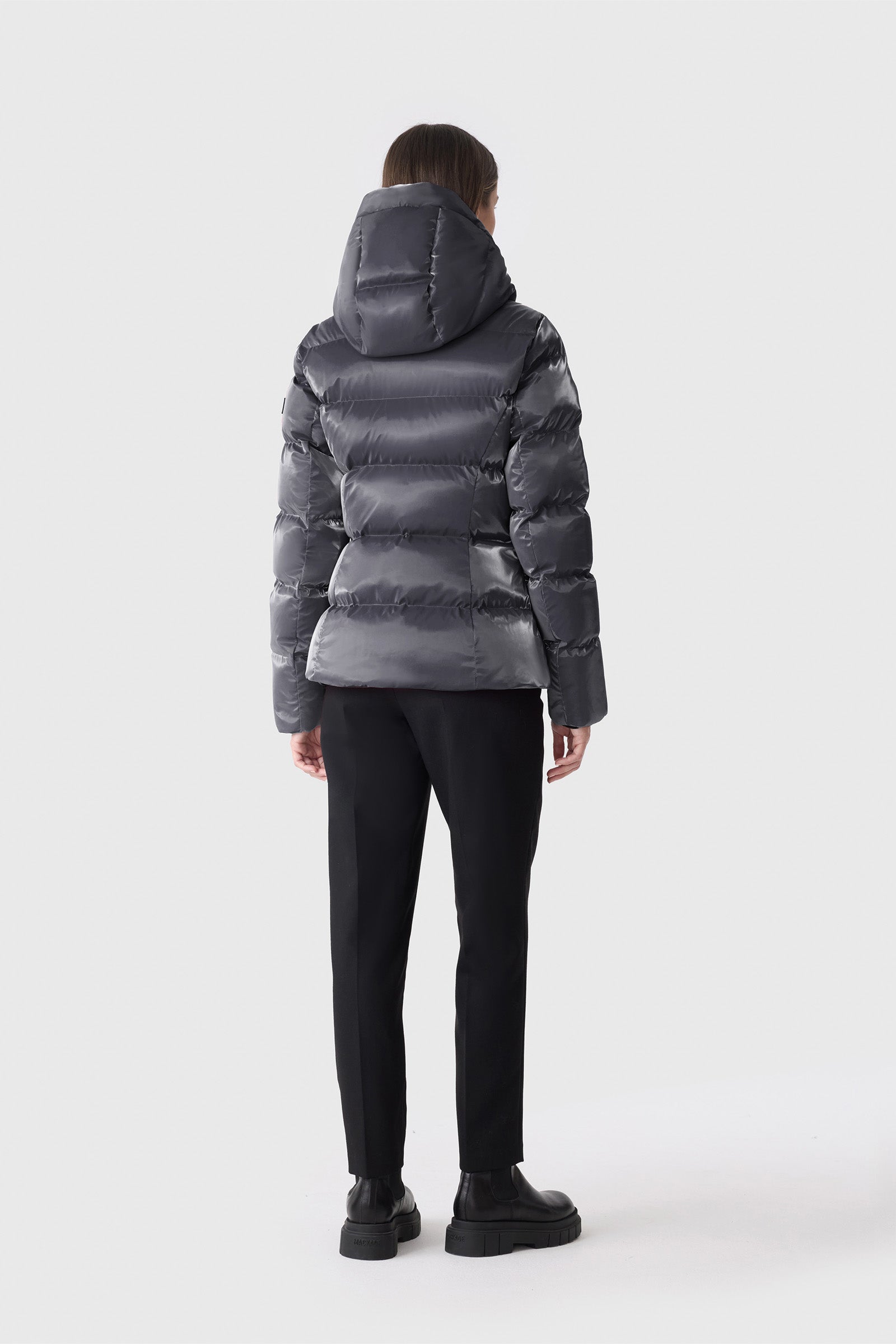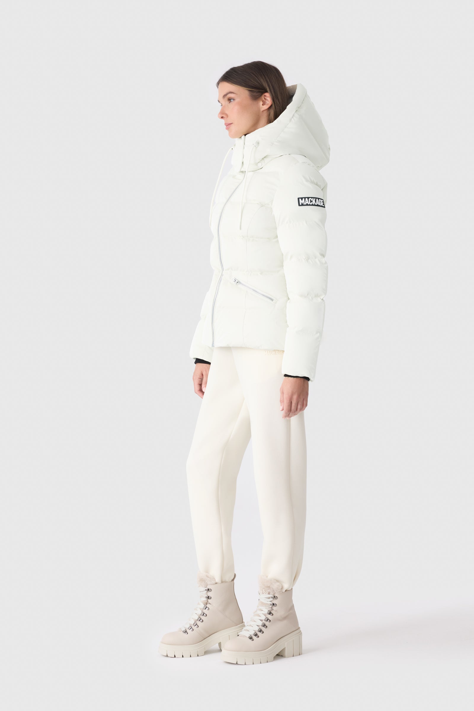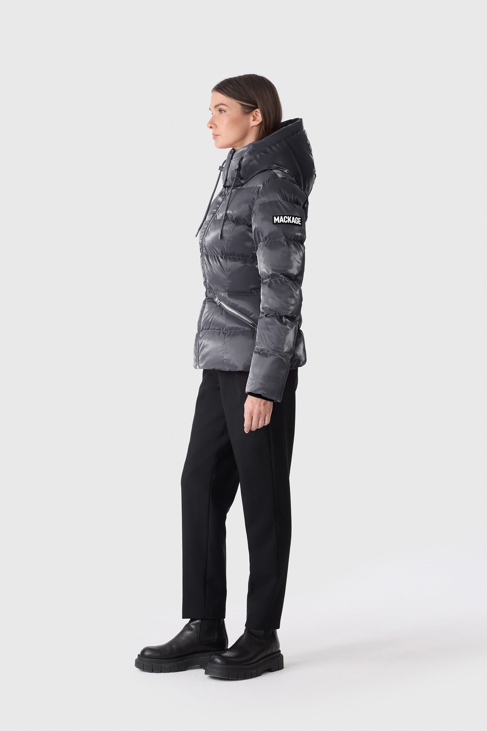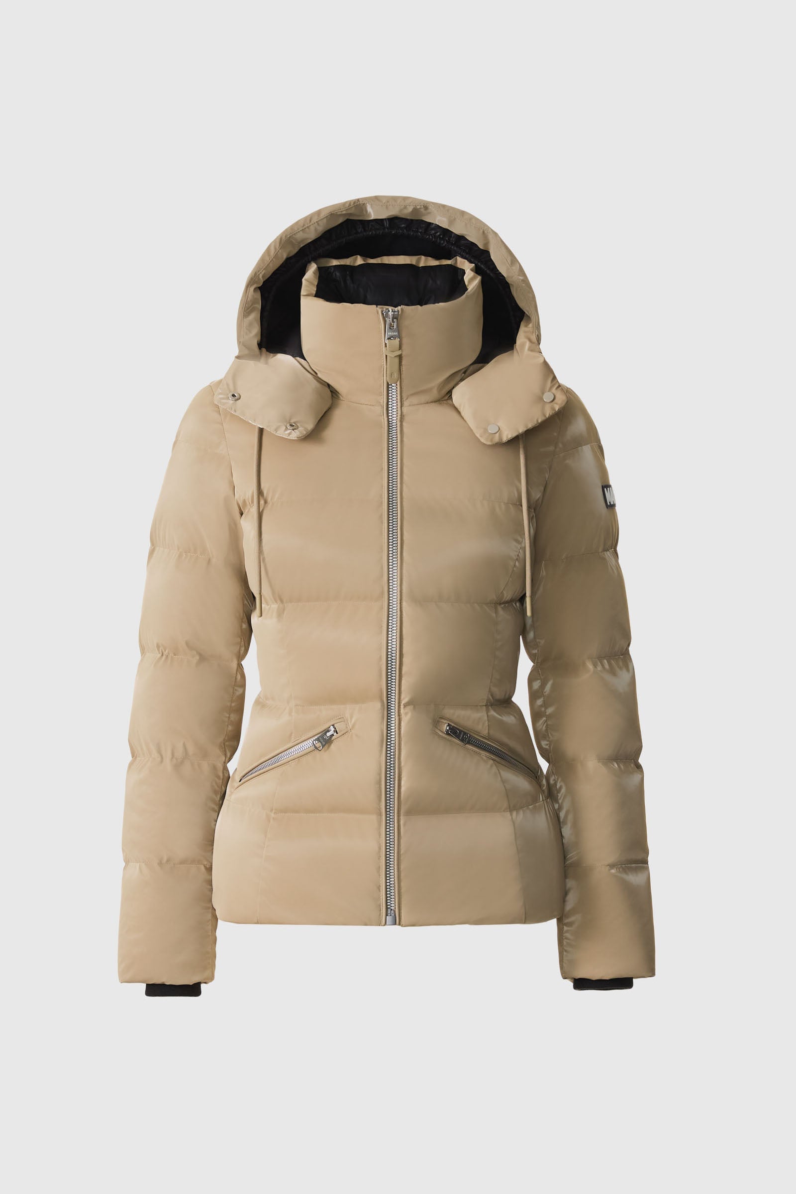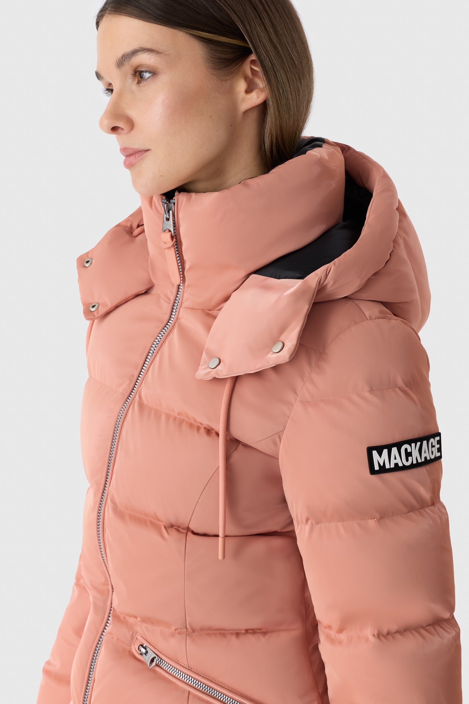 MADALYN-GLO is a high-gloss down jacket crafted from sustainable materials and engineered for deep cold. Designed with a removable hood and adjustable storm visor, this high-performance style features rib knit cuffs, insulated zip pockets, and underarm eyelets for ventilation. A branded drawcord and signature MACKAGE patch finish the look.