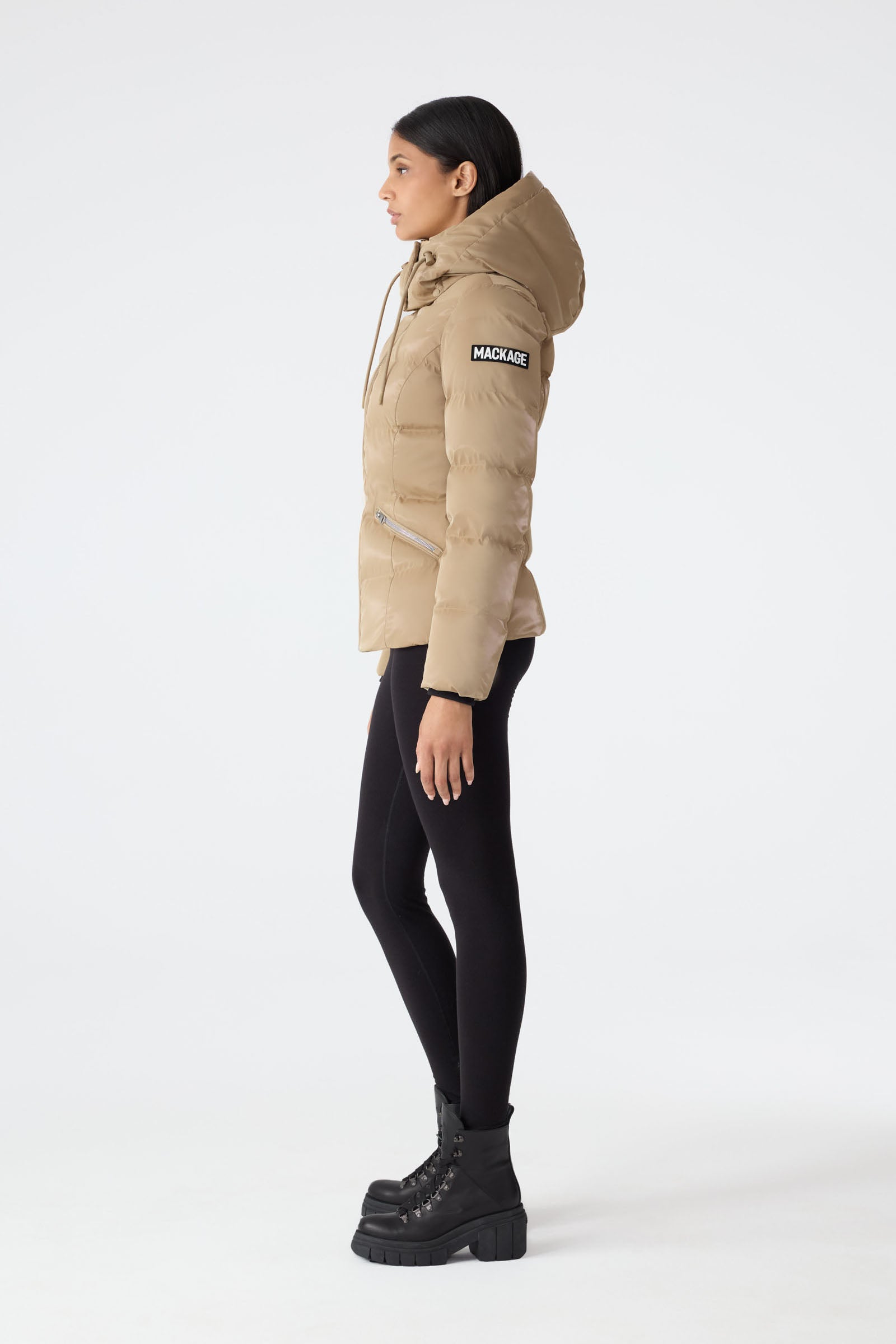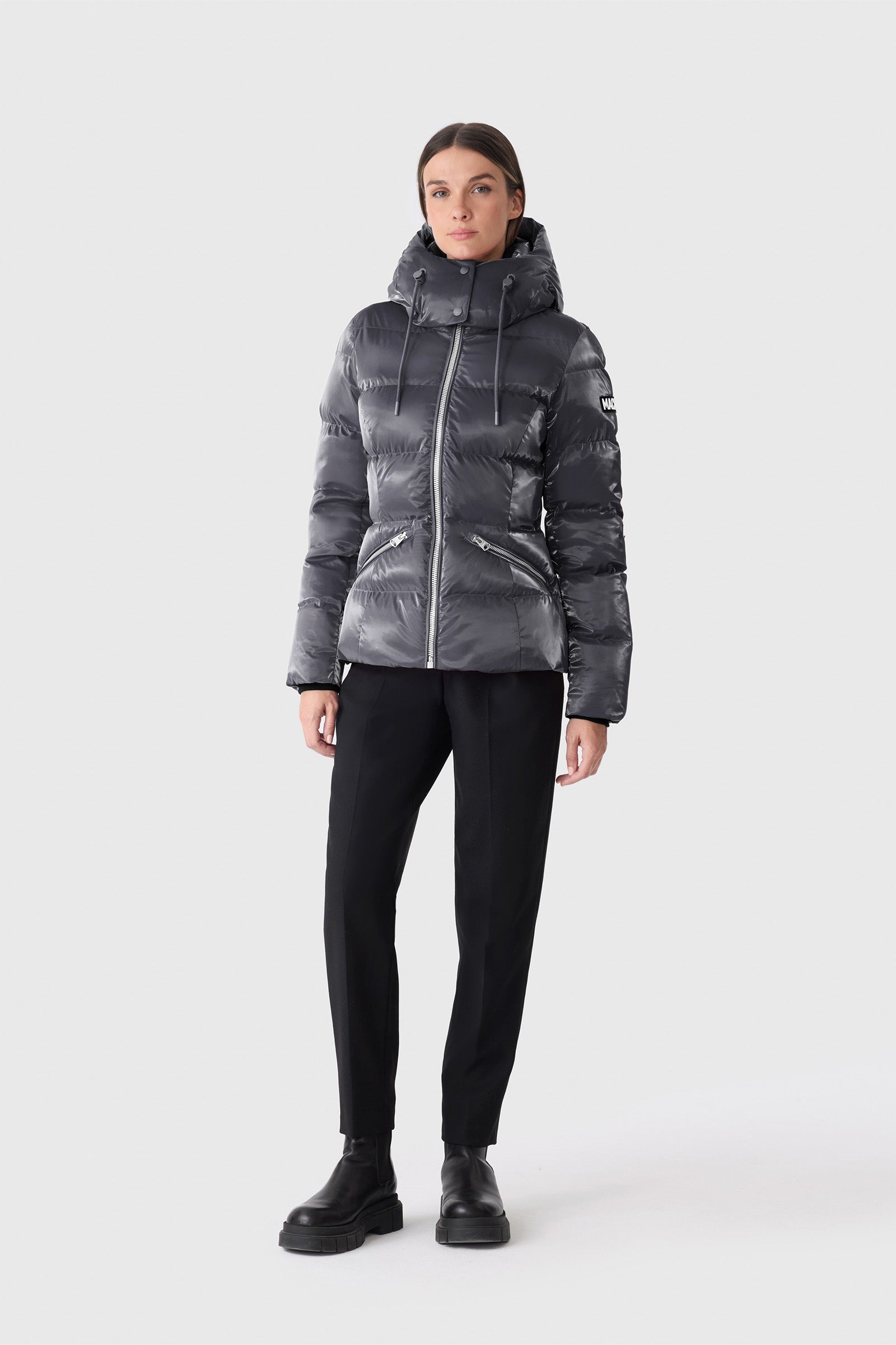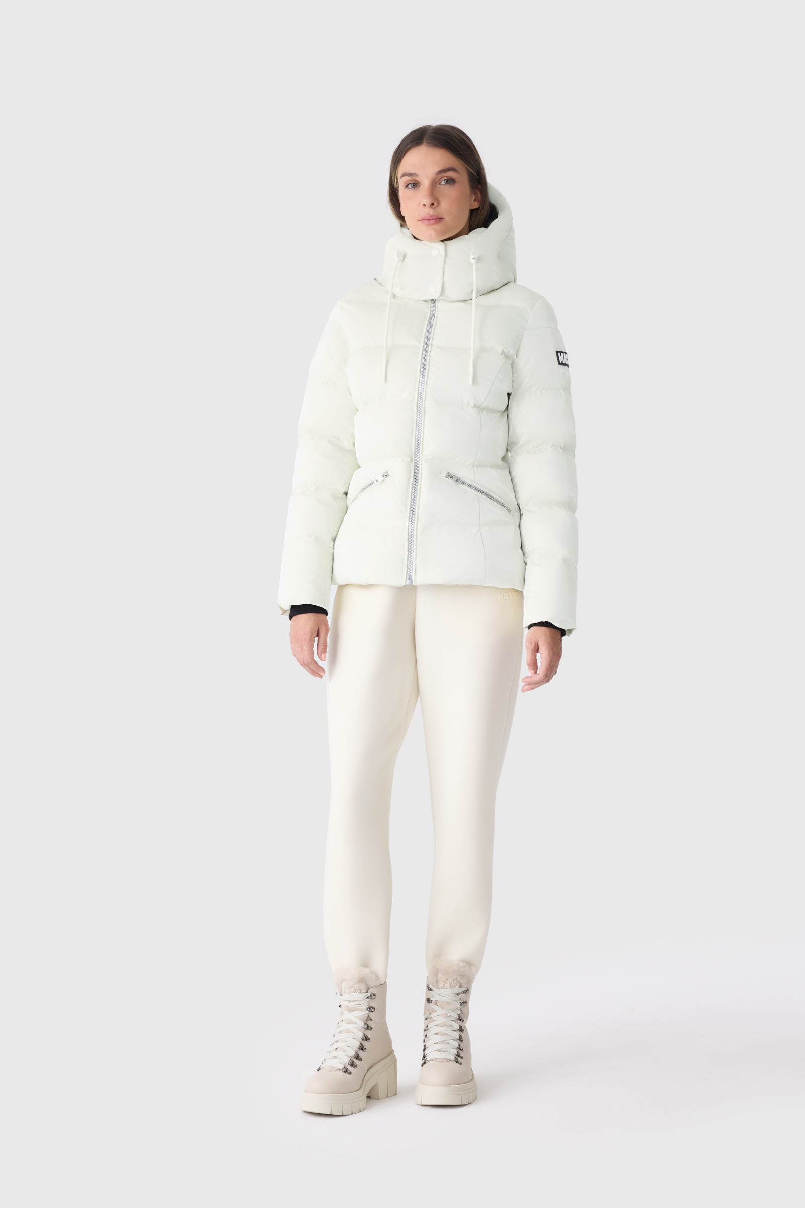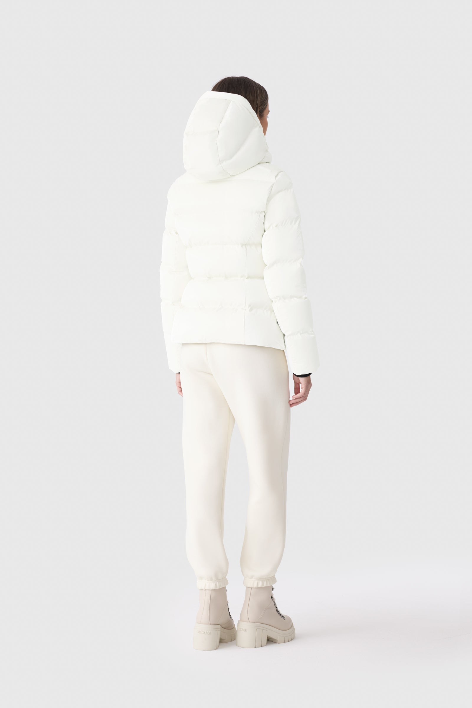 MADALYN-GLO is a high-gloss down jacket crafted from sustainable materials and engineered for deep cold. Designed with a removable hood and adjustable storm visor, this high-performance style features rib knit cuffs, insulated zip pockets, and underarm eyelets for ventilation. A branded drawcord and signature MACKAGE patch finish the look.
