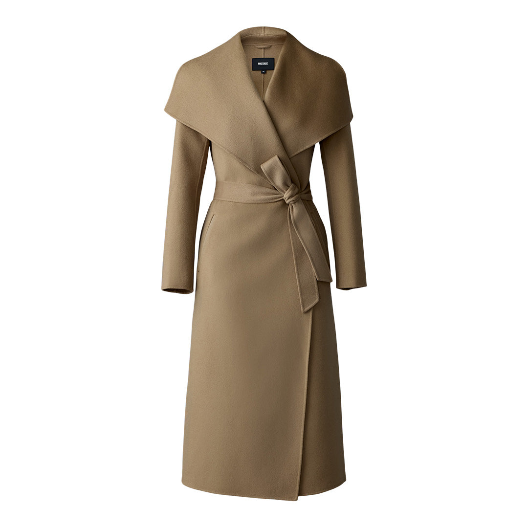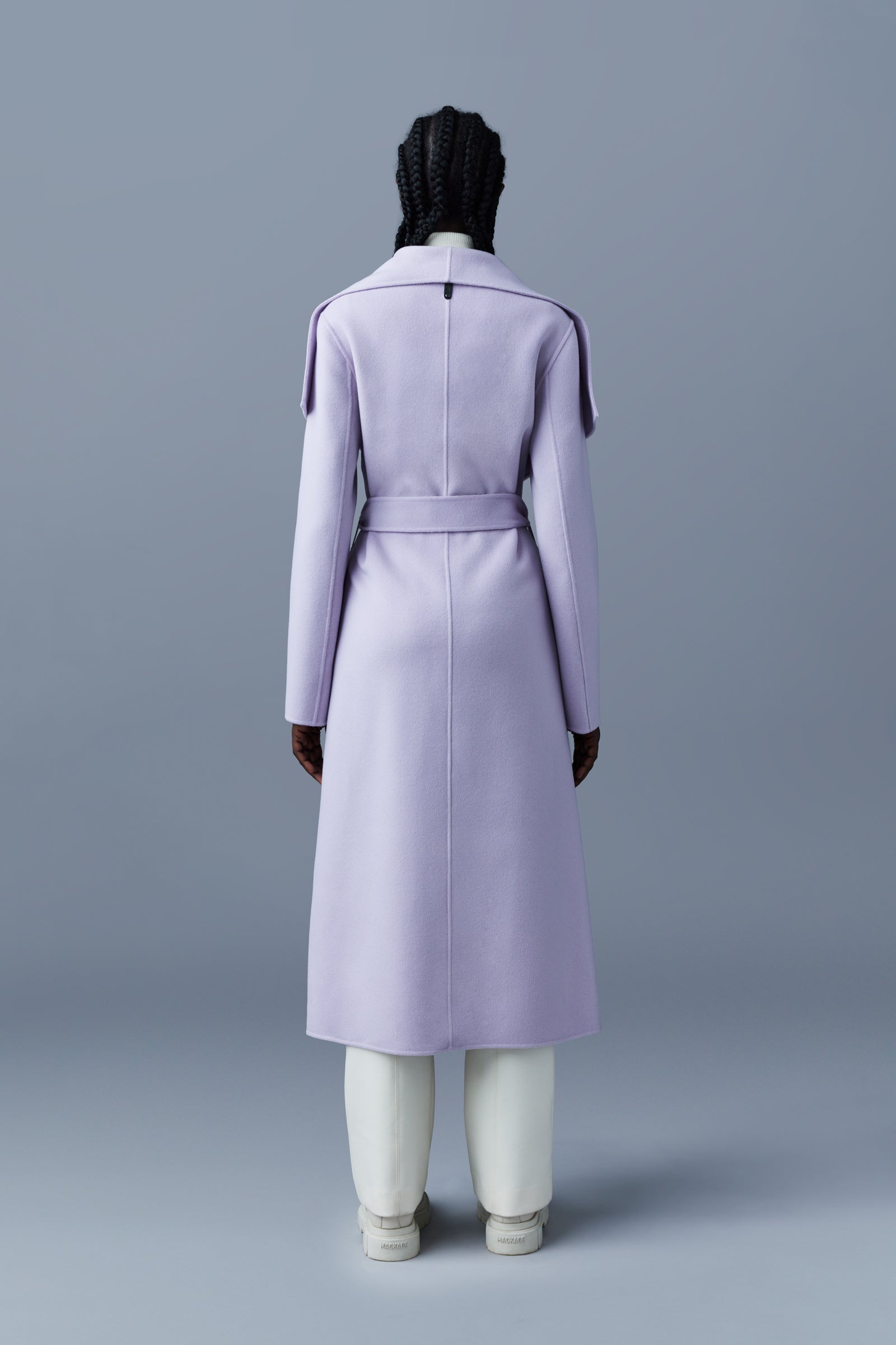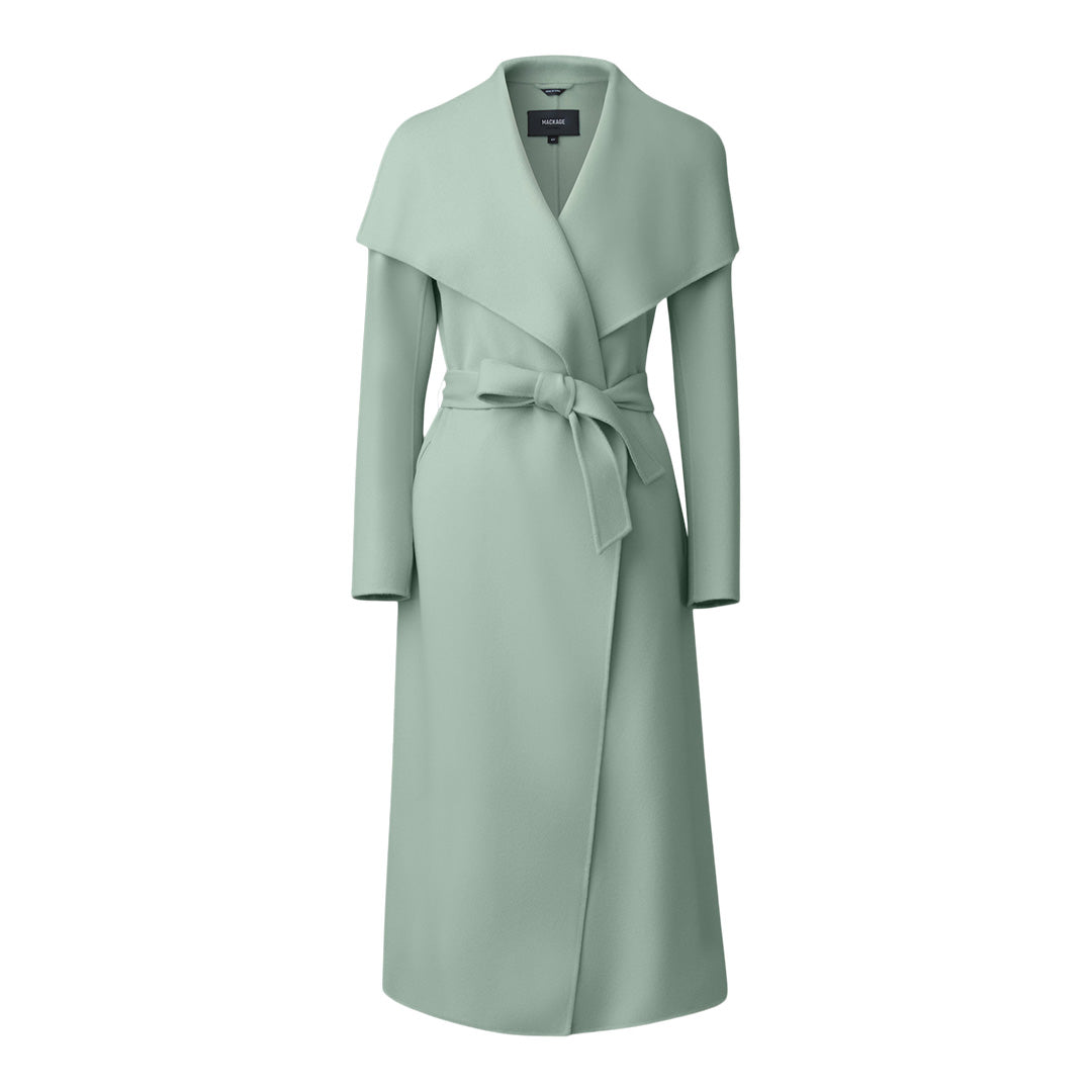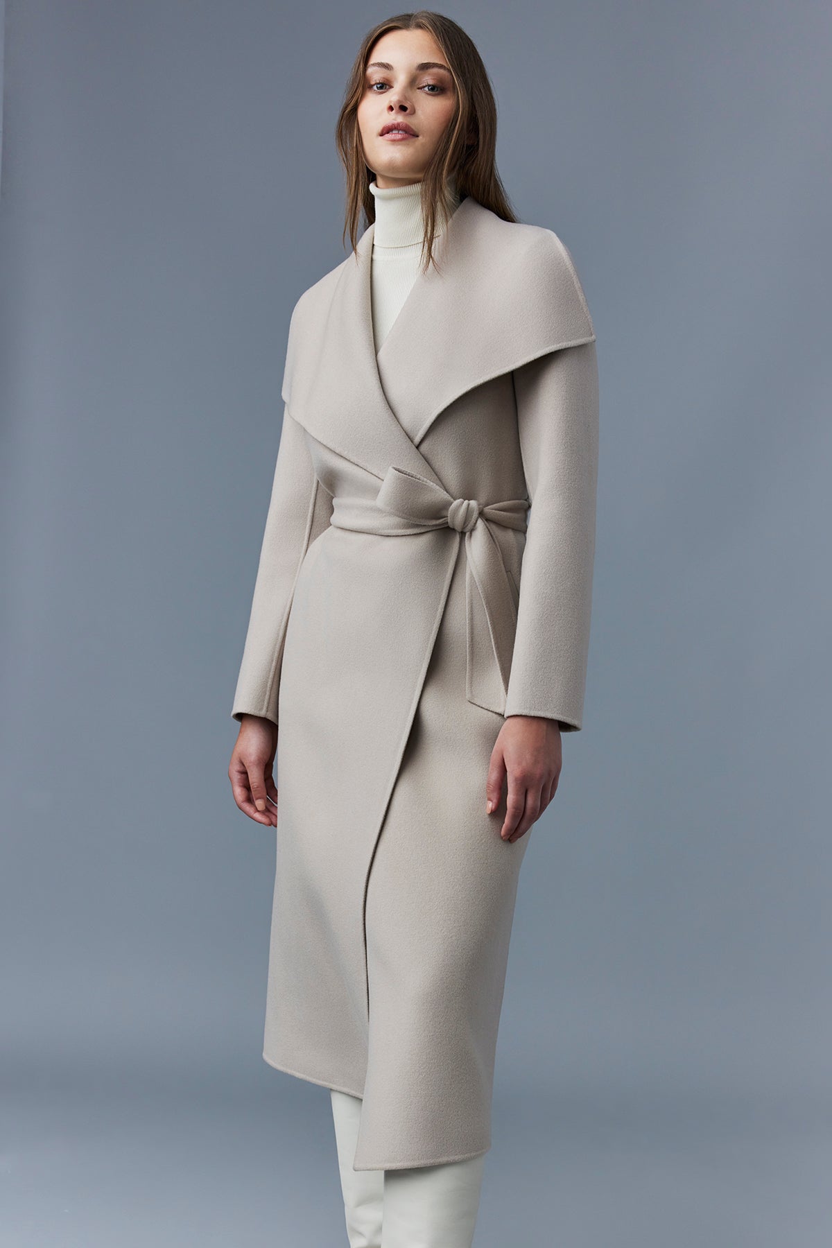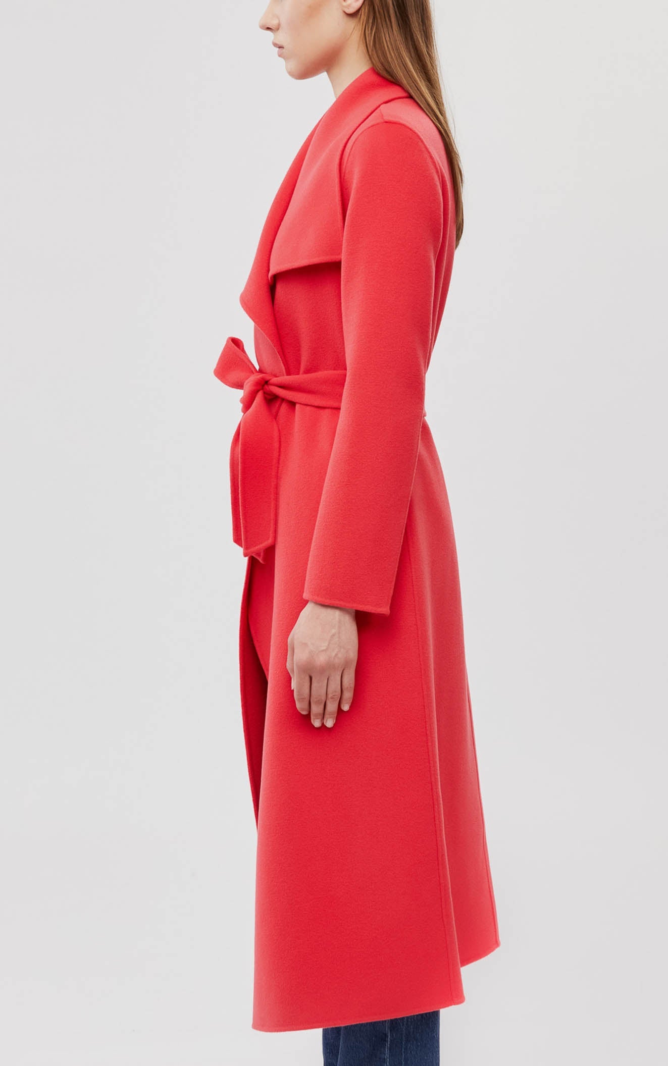 MAI-CN is a long wrap coat for women handmade from luxurious soft double-face wool. The fluid drape provides a relaxed-fit and unlined layer for maximum comfort in mild climates. The waterfall collar adds a sophisticated appeal while leather welting highlights the waist pockets and belt loops.