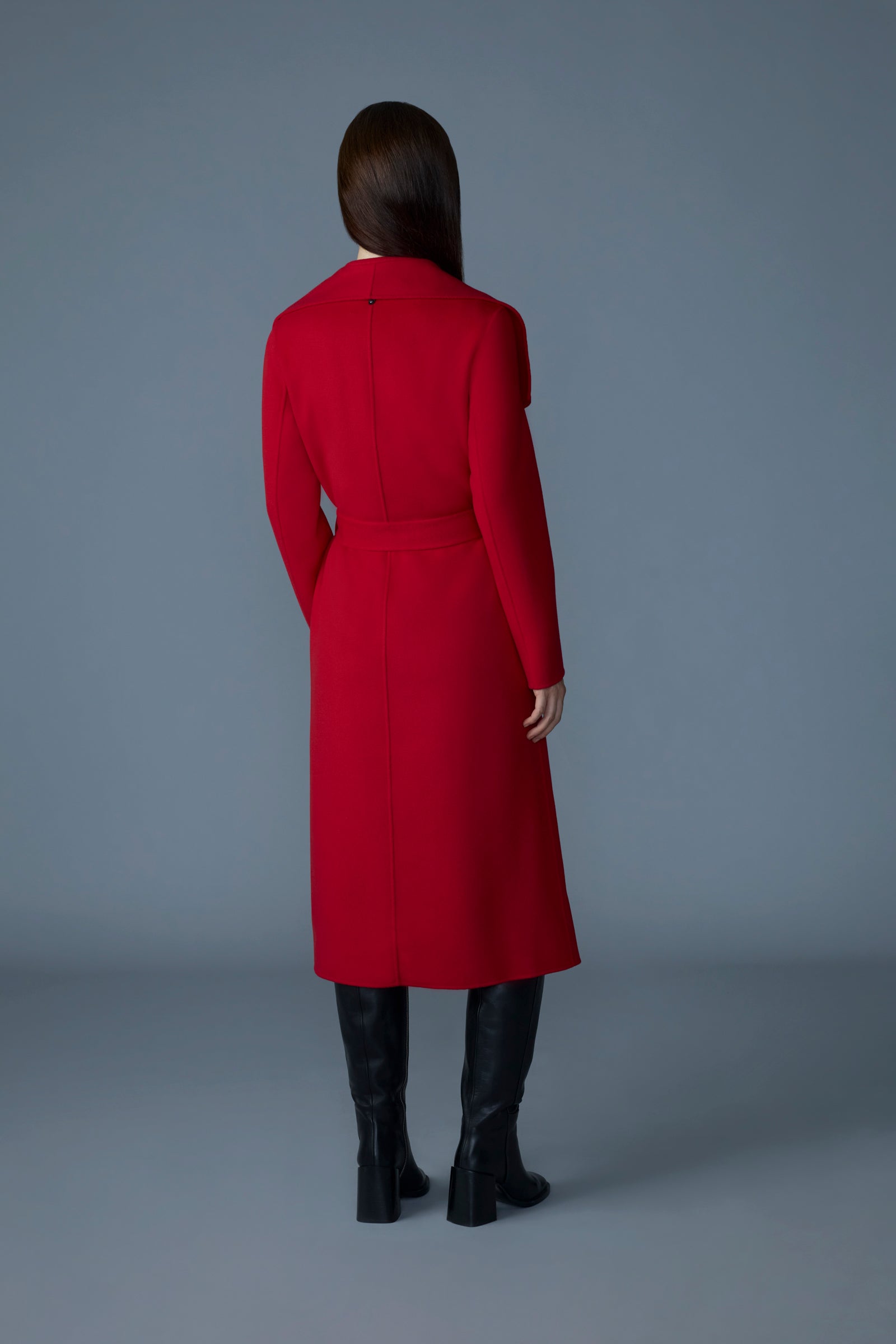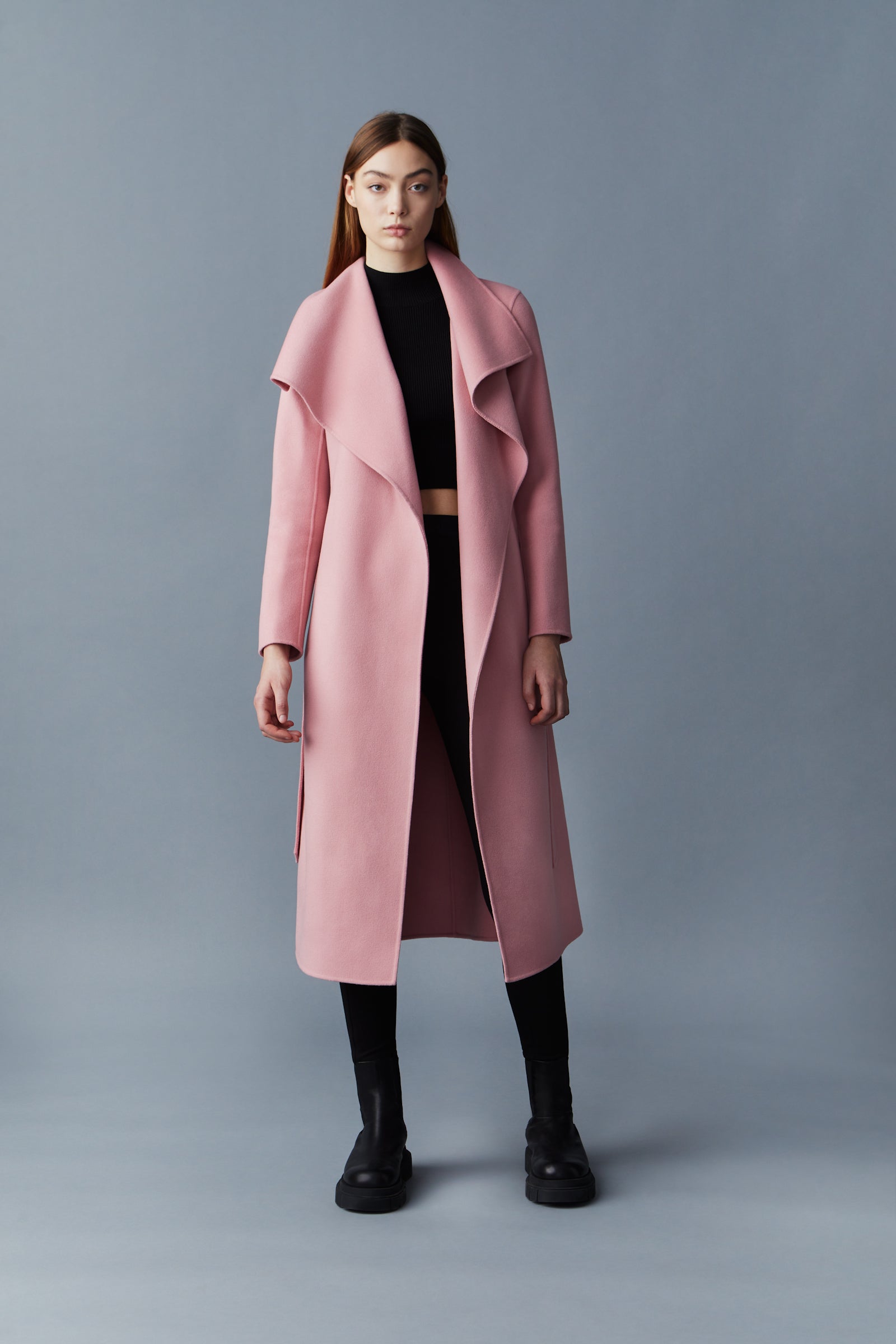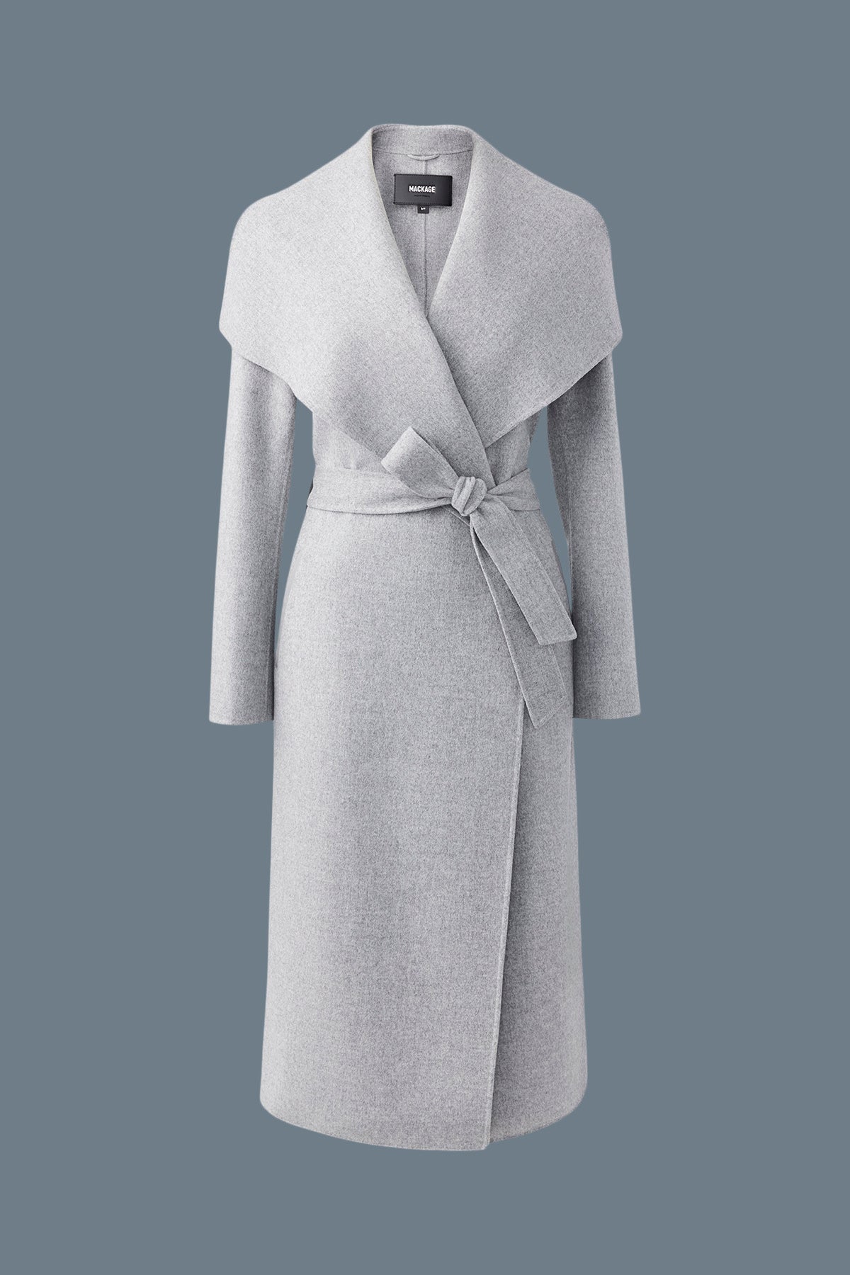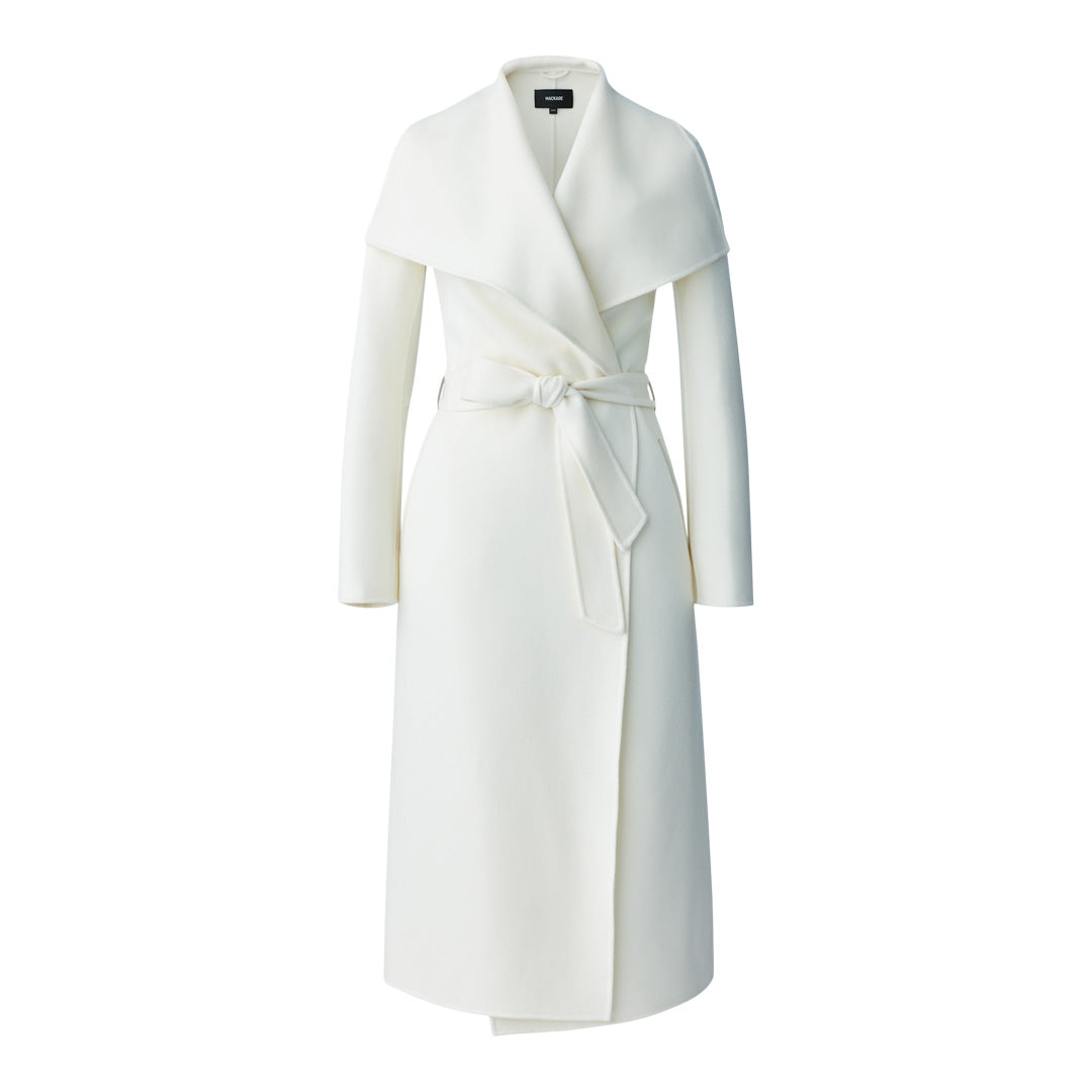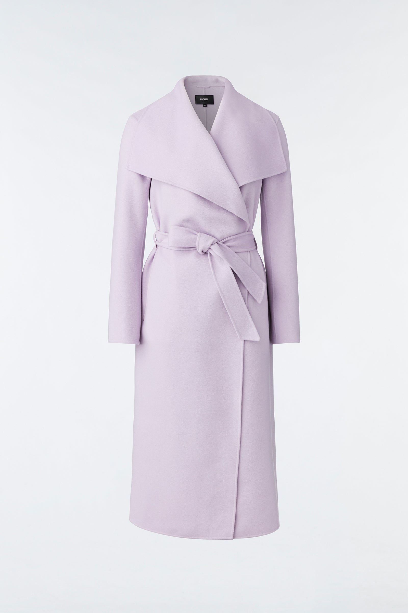 MAI-CN is a long wrap coat for women handmade from luxurious soft double-face wool. The fluid drape provides a relaxed-fit and unlined layer for maximum comfort in mild climates. The waterfall collar adds a sophisticated appeal while leather welting highlights the waist pockets and belt loops.
