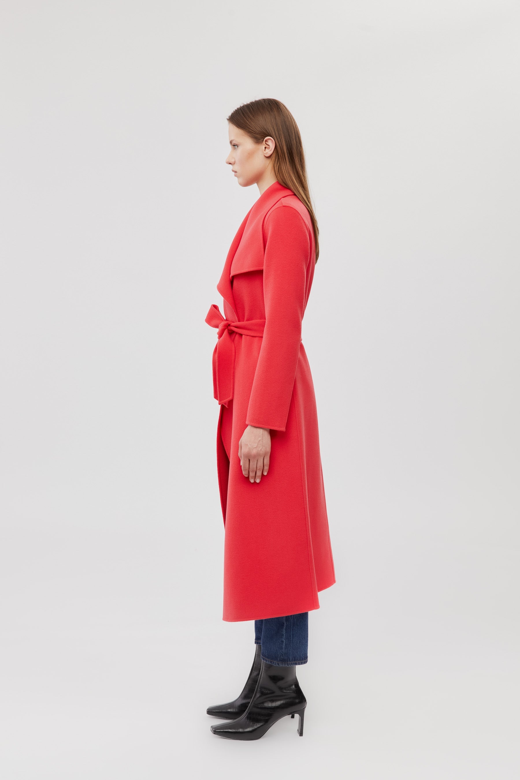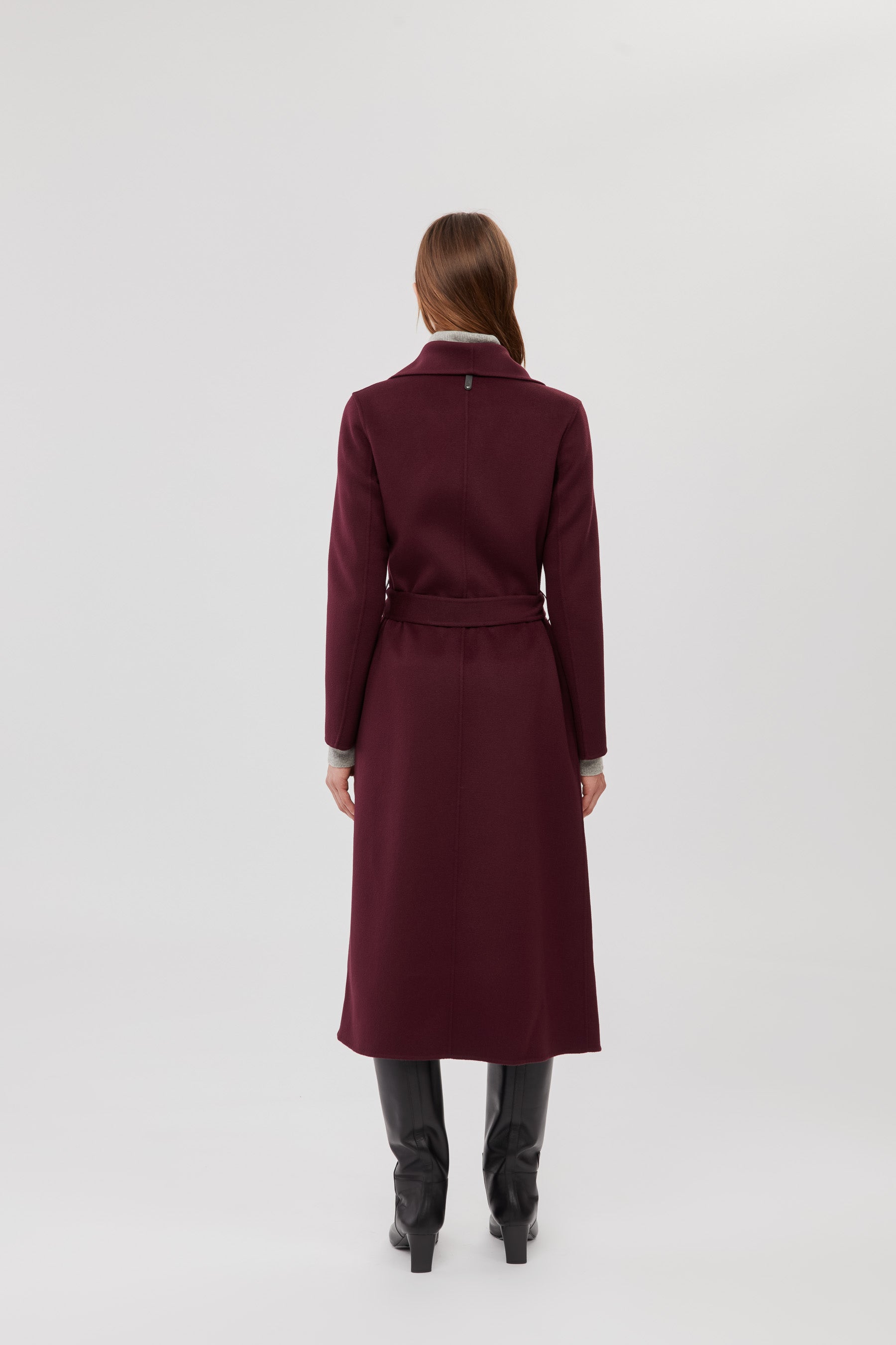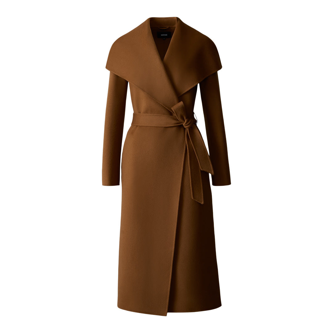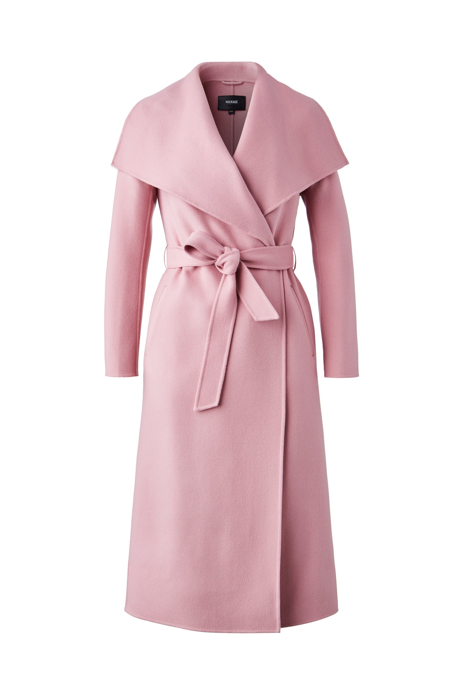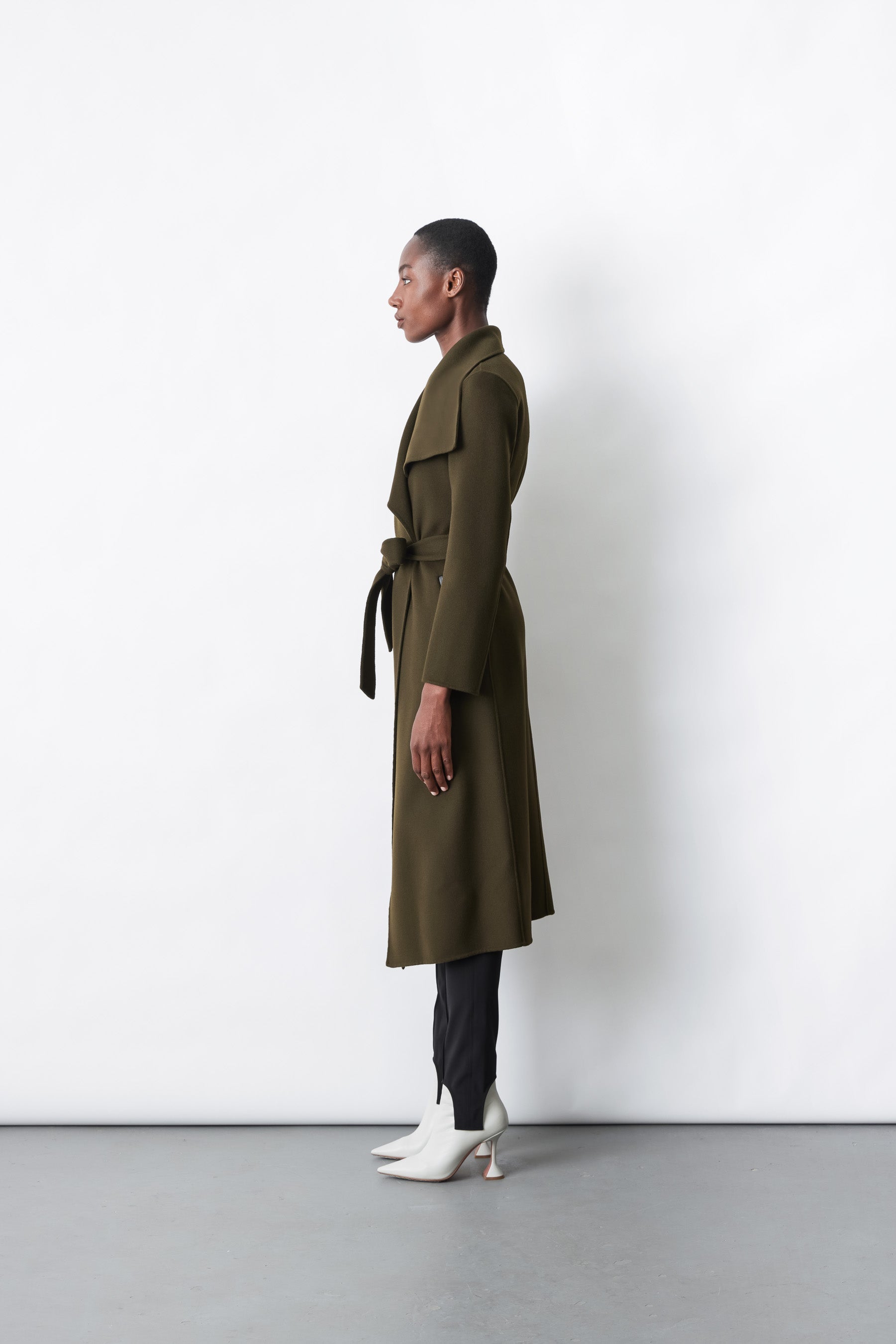 MAI-CN is a long wrap coat for women handmade from luxurious soft double-face wool. The fluid drape provides a relaxed-fit and unlined layer for maximum comfort in mild climates. The waterfall collar adds a sophisticated appeal while leather welting highlights the waist pockets and belt loops.