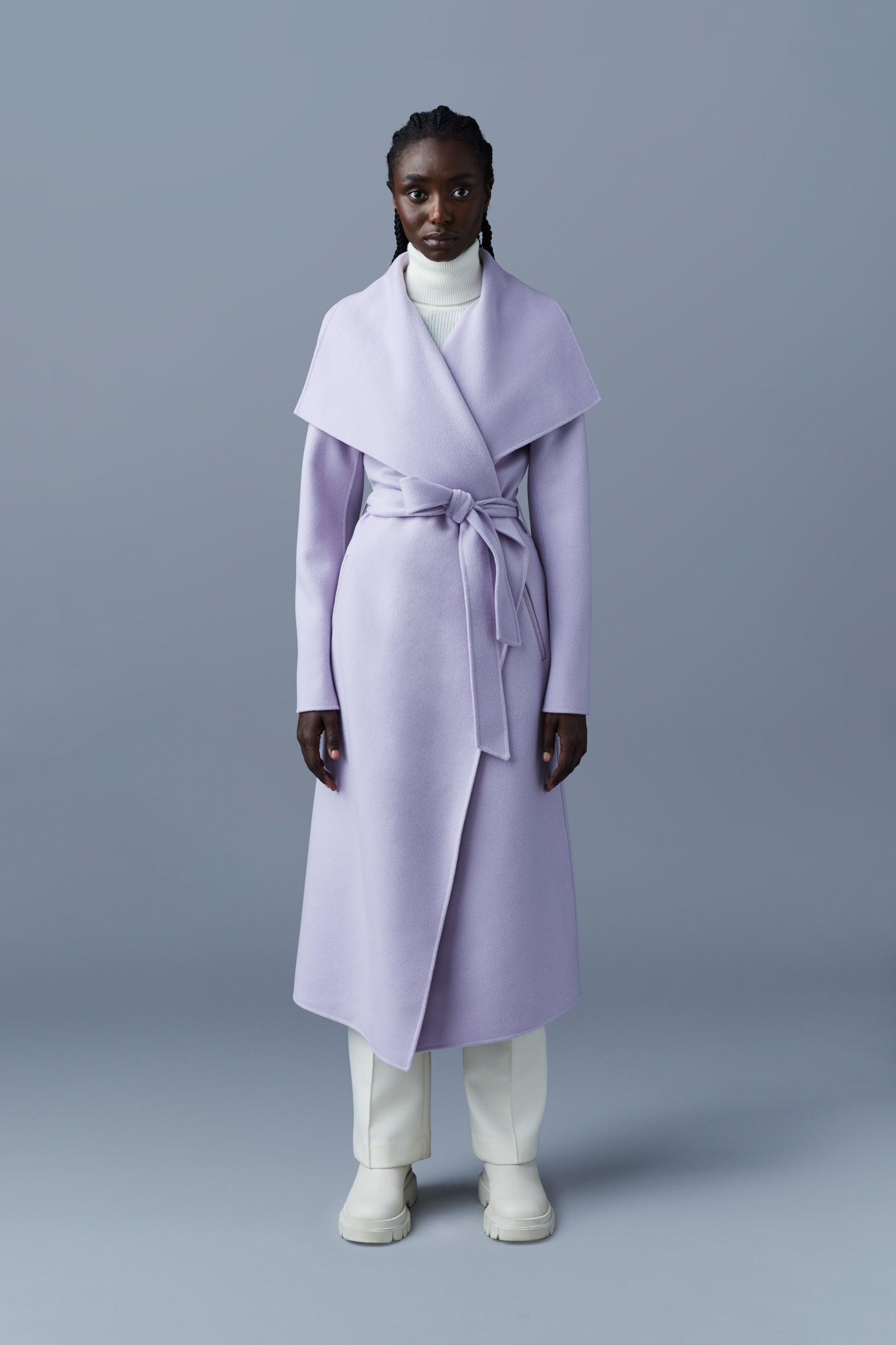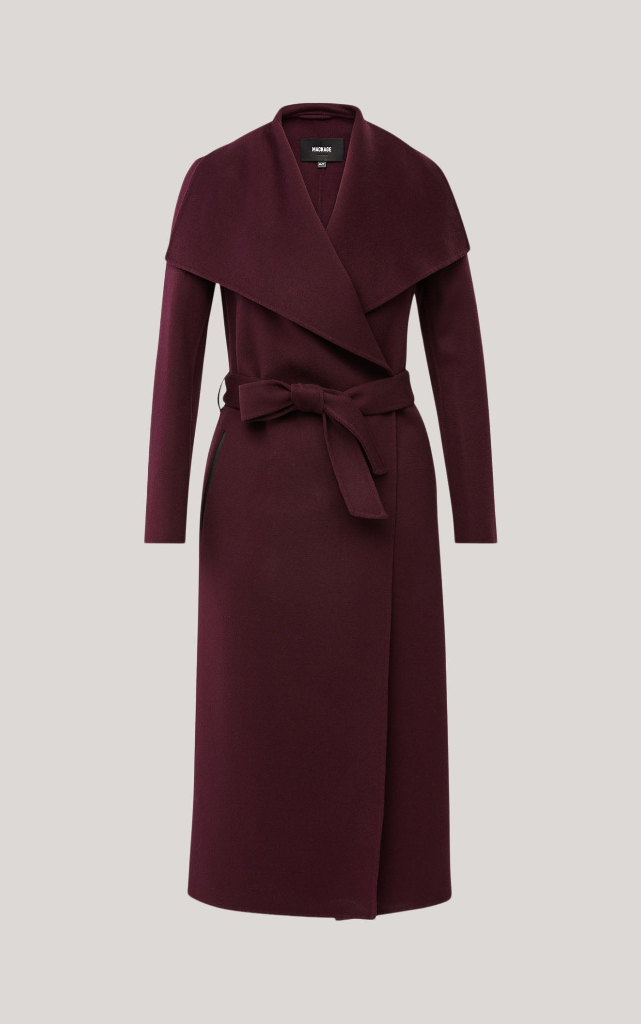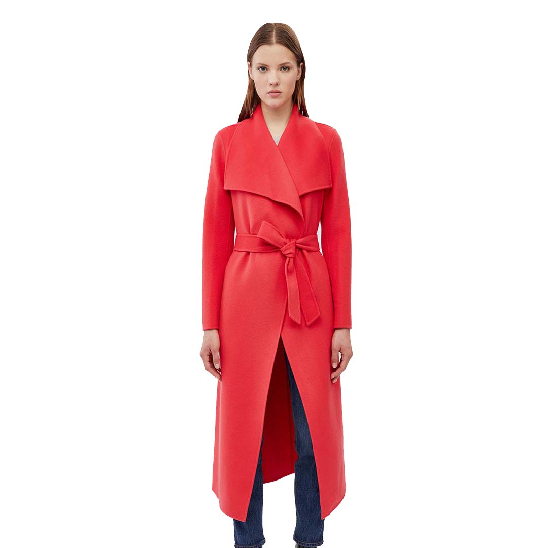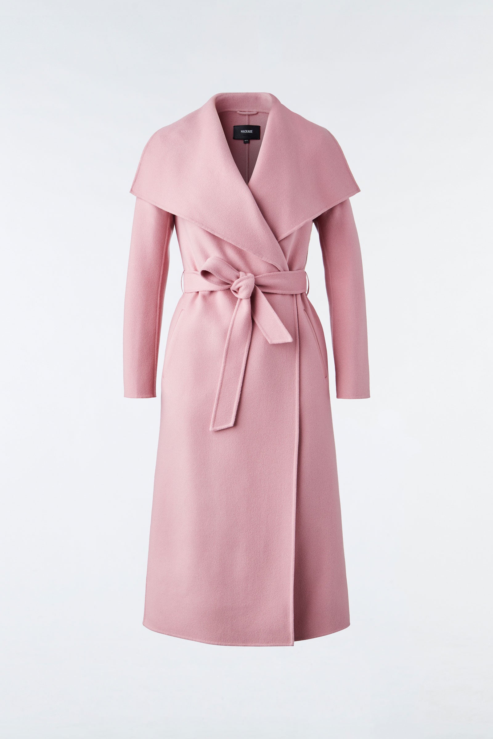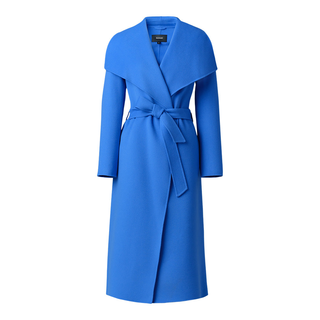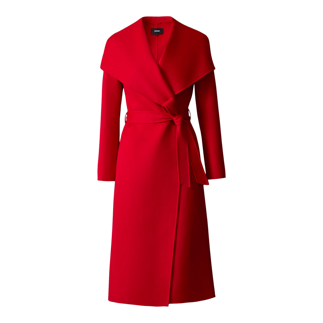 MAI-CN is a long wrap coat for women handmade from luxurious soft double-face wool. The fluid drape provides a relaxed-fit and unlined layer for maximum comfort in mild climates. The waterfall collar adds a sophisticated appeal while leather welting highlights the waist pockets and belt loops.
