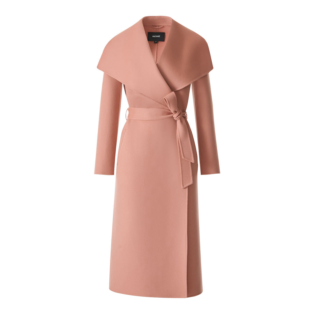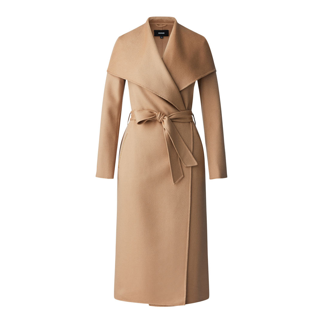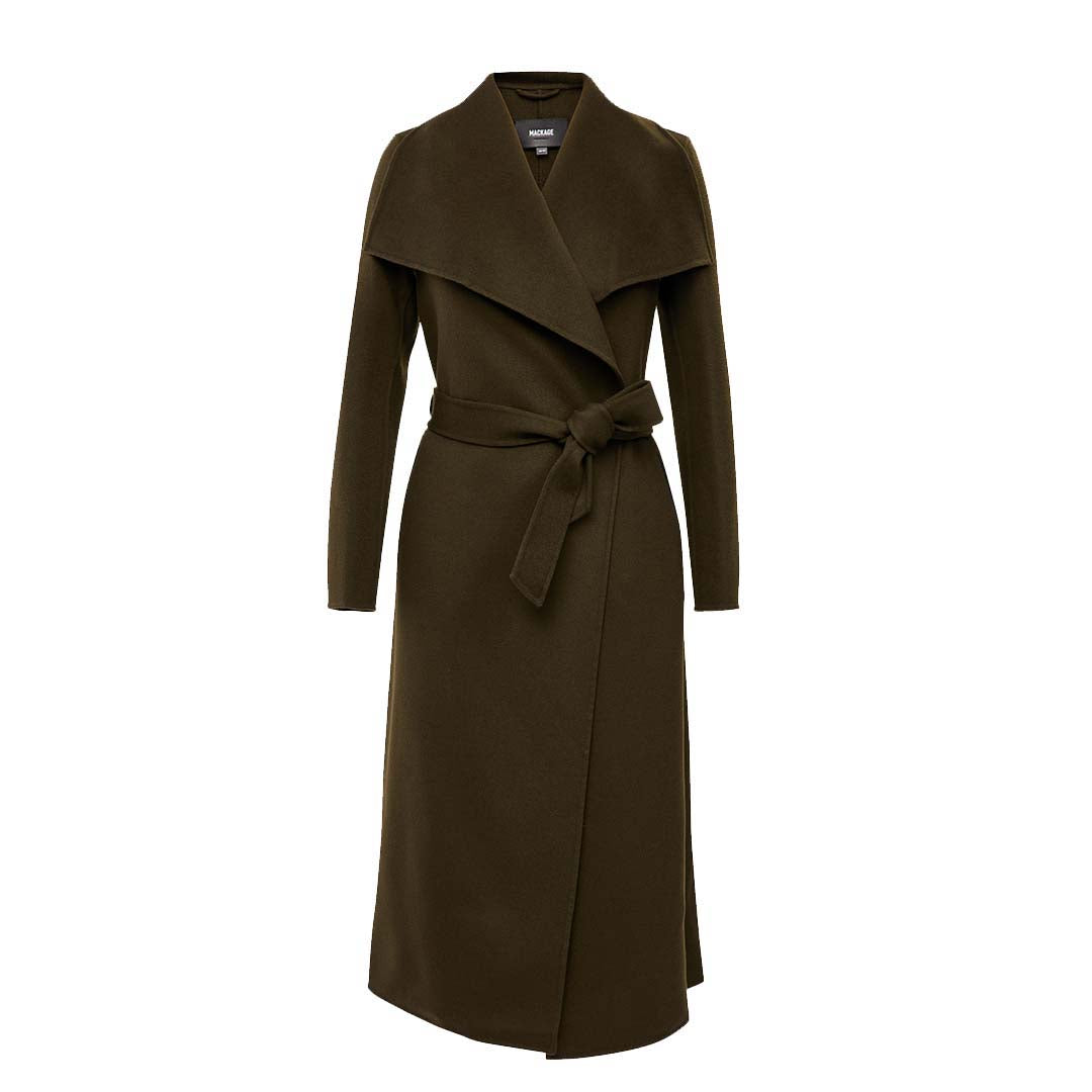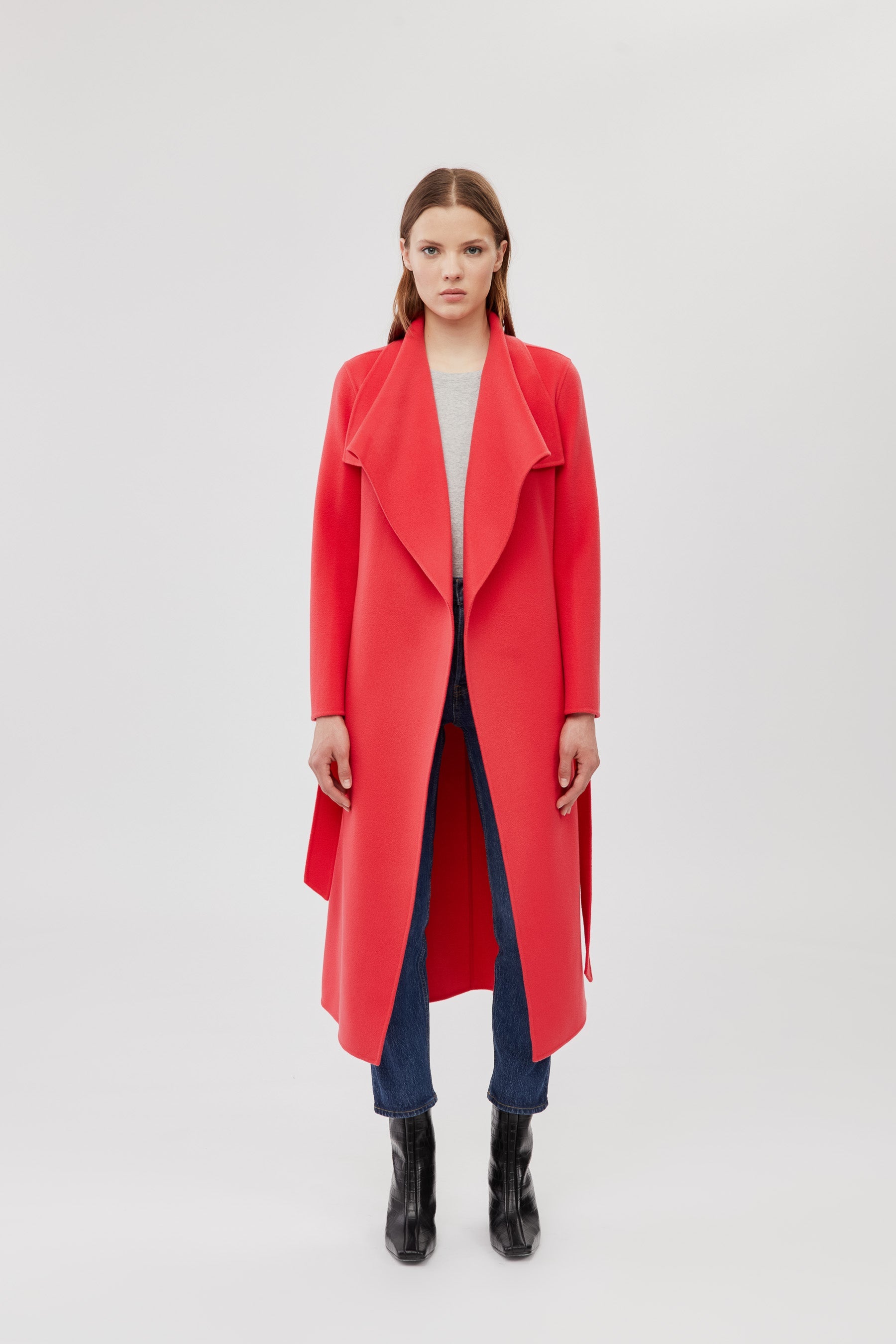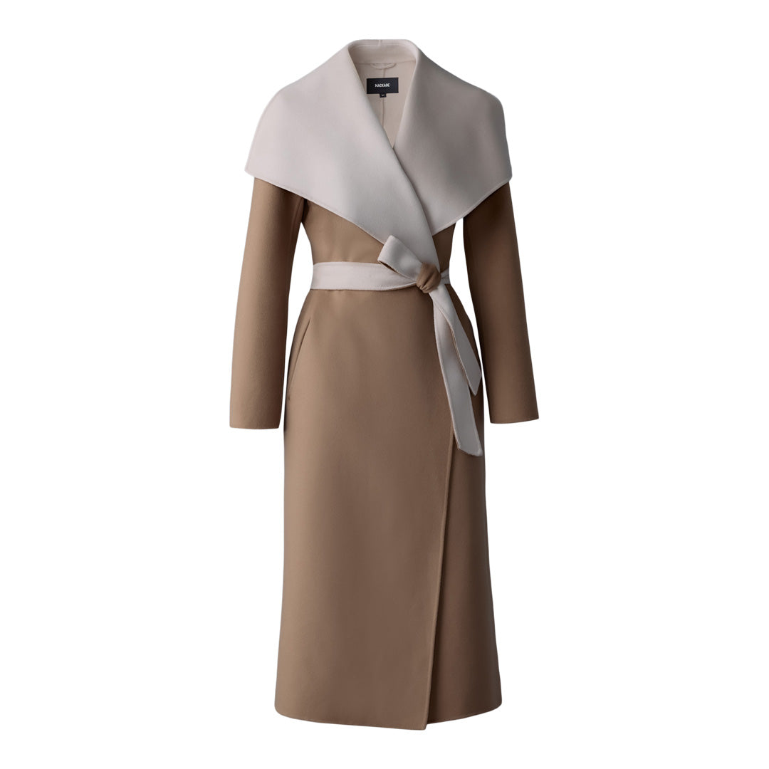 MAI-CN is a long wrap coat for women handmade from luxurious soft double-face wool. The fluid drape provides a relaxed-fit and unlined layer for maximum comfort in mild climates. The waterfall collar adds a sophisticated appeal while leather welting highlights the waist pockets and belt loops.