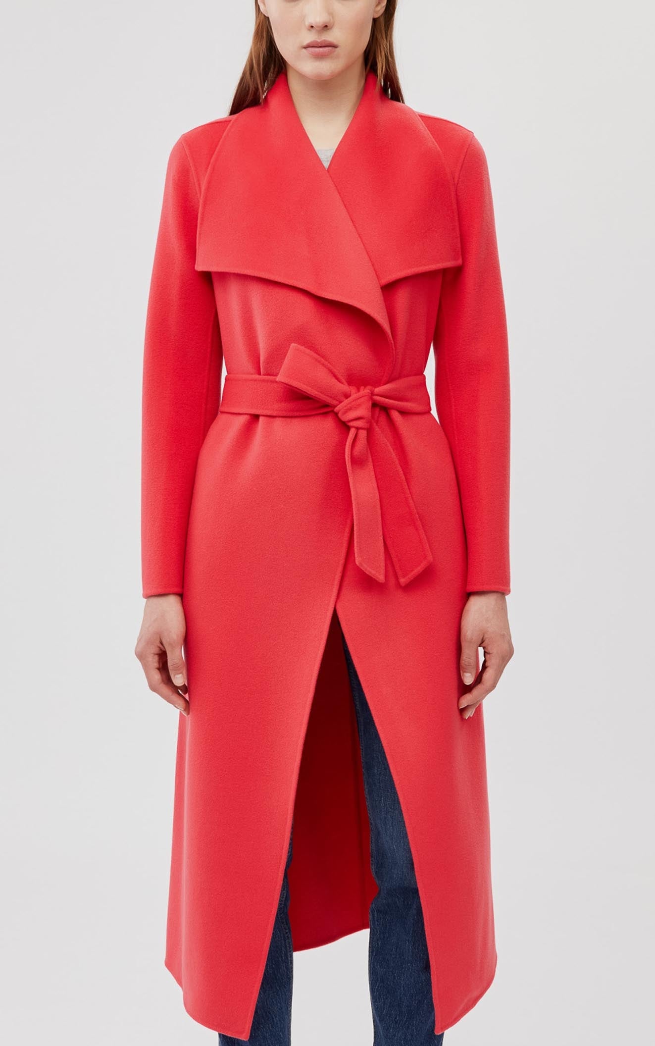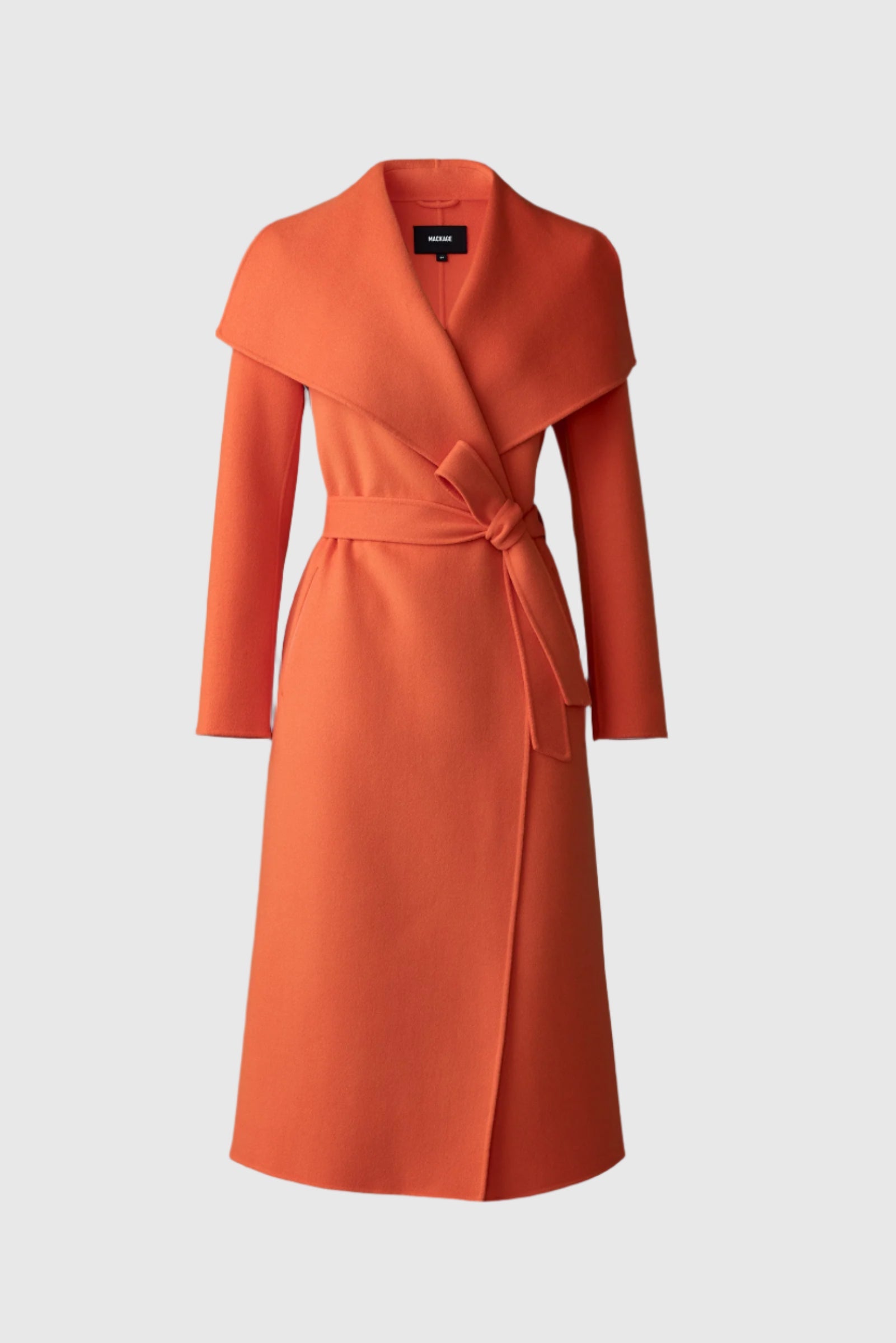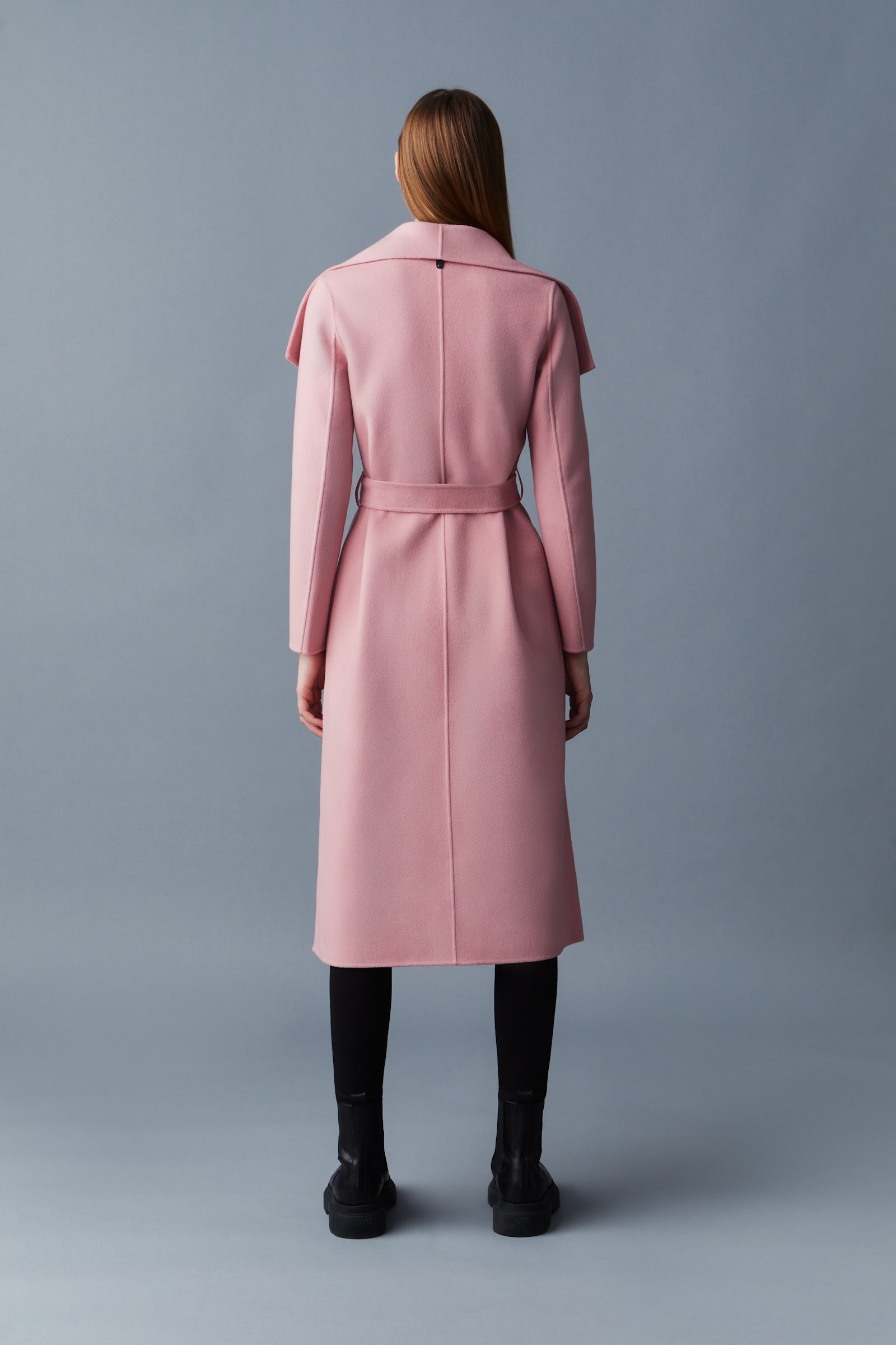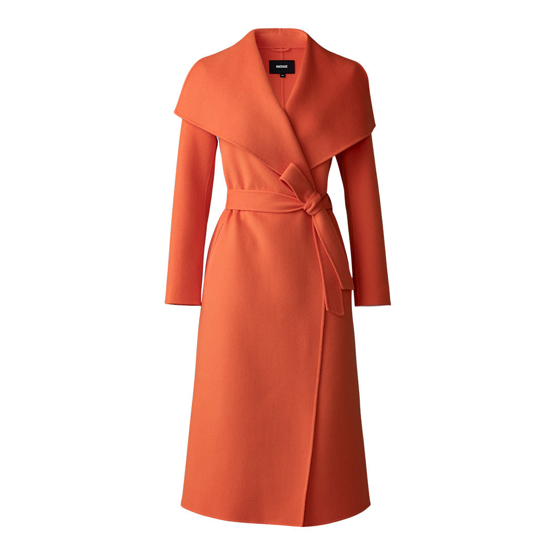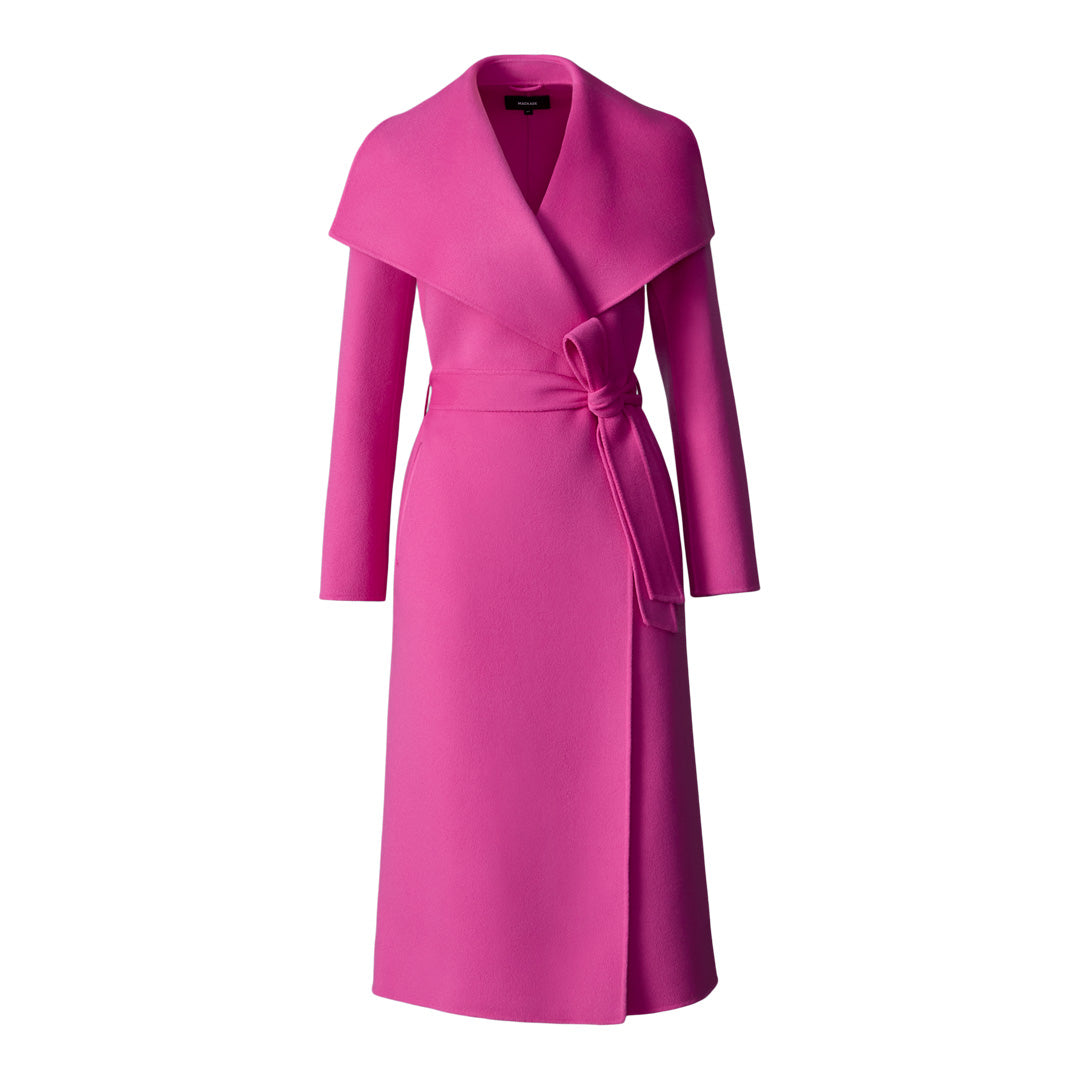 MAI-CN is a long wrap coat for women handmade from luxurious soft double-face wool. The fluid drape provides a relaxed-fit and unlined layer for maximum comfort in mild climates. The waterfall collar adds a sophisticated appeal while leather welting highlights the waist pockets and belt loops.