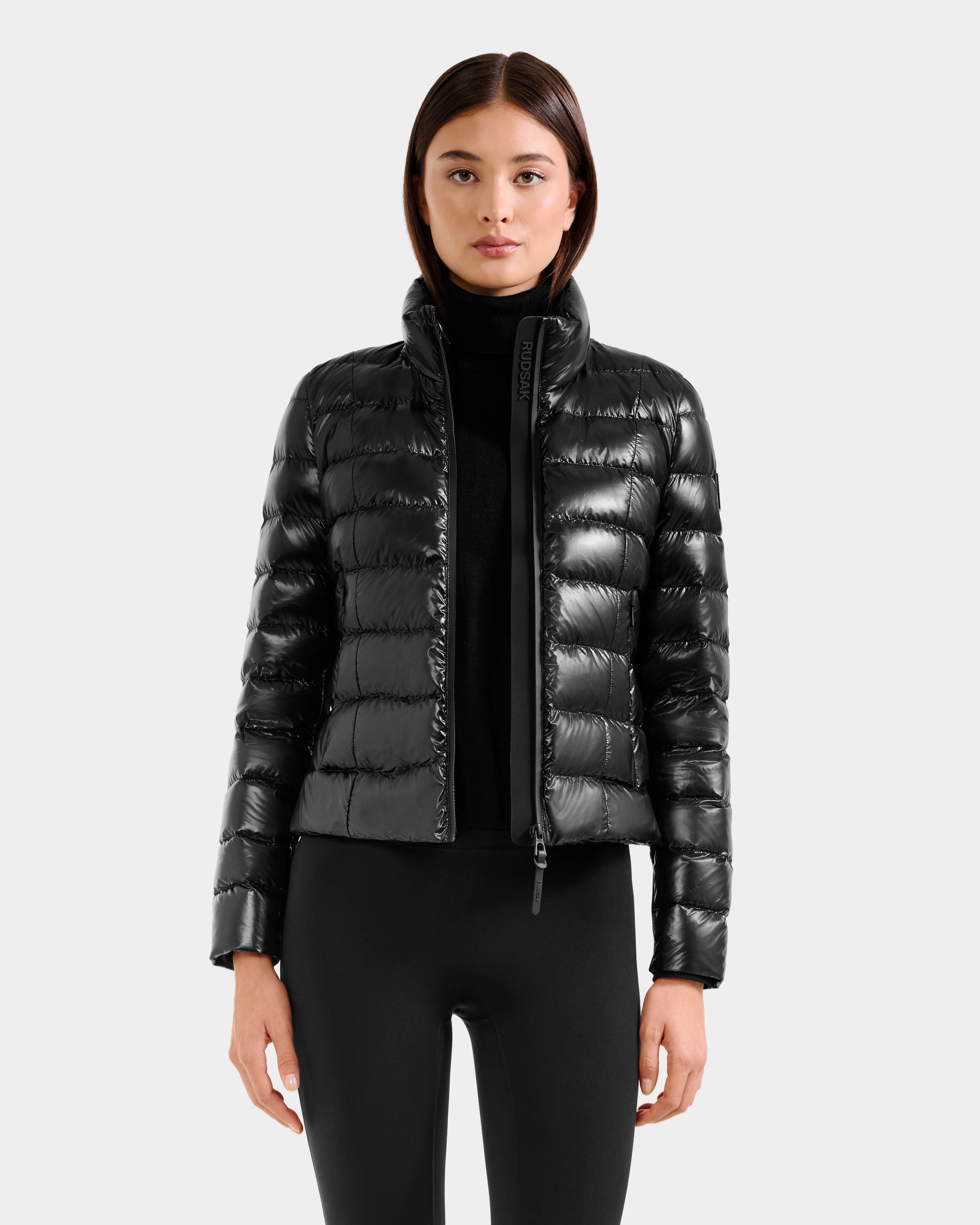 Meet MELISSA C by RUDSAK, a women’s lightweight down puffer crafted in a sleek, high-gloss shell. Designed for transitional weather, it features a removable hood, waterproof zippers, and subtle side vents for enhanced mobility. Insulated with premium down for warmth without bulk, this streamlined silhouette offers a refined take on cold-weather comfort. Sleek, compact, and ultra-light, MELISSA C is the perfect packable piece for on-the-go style and effortless layering in motion.