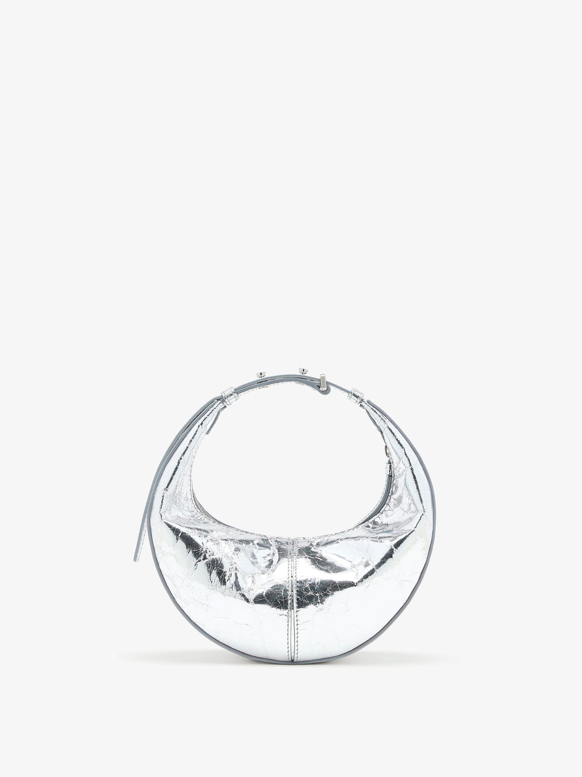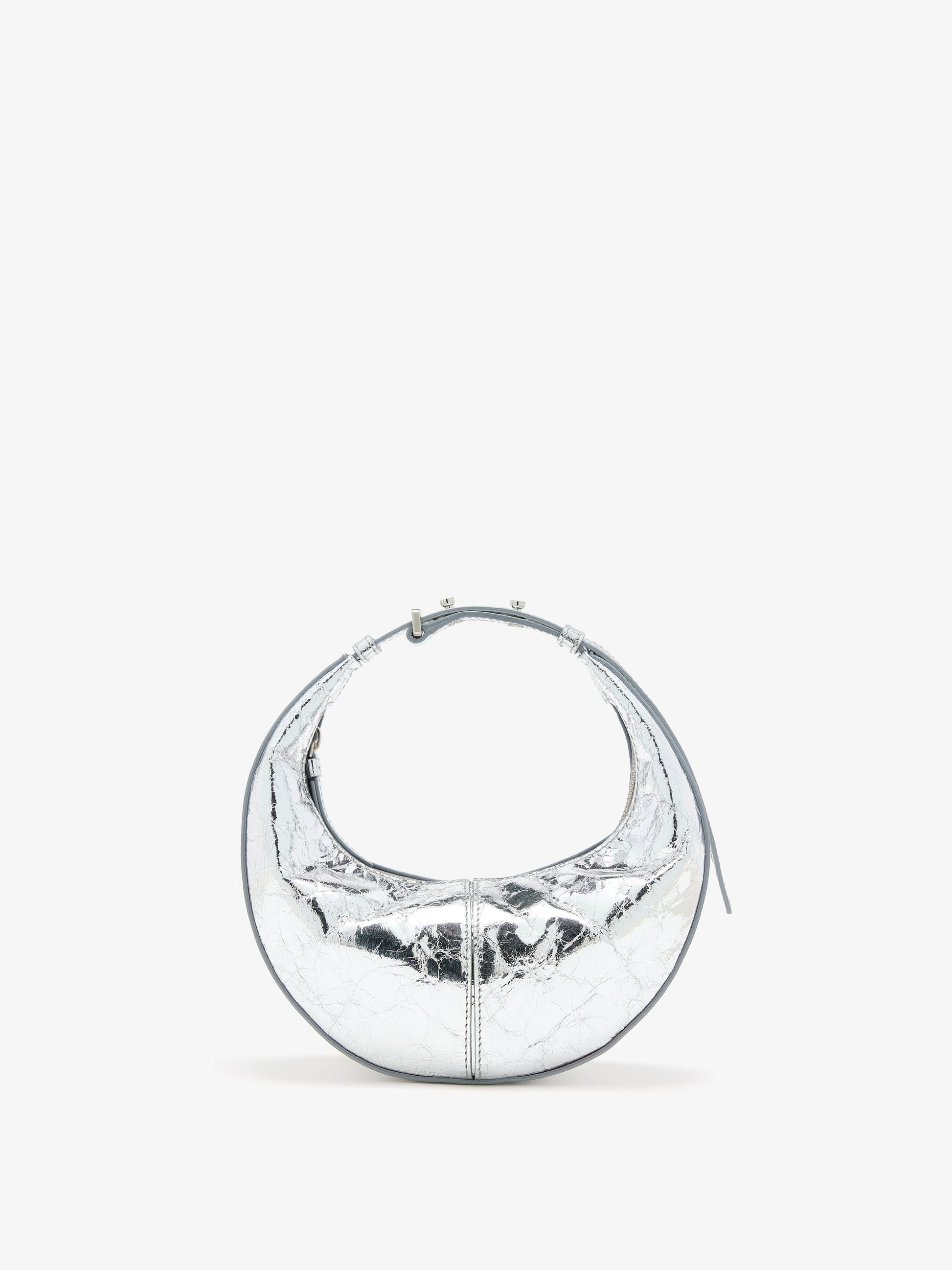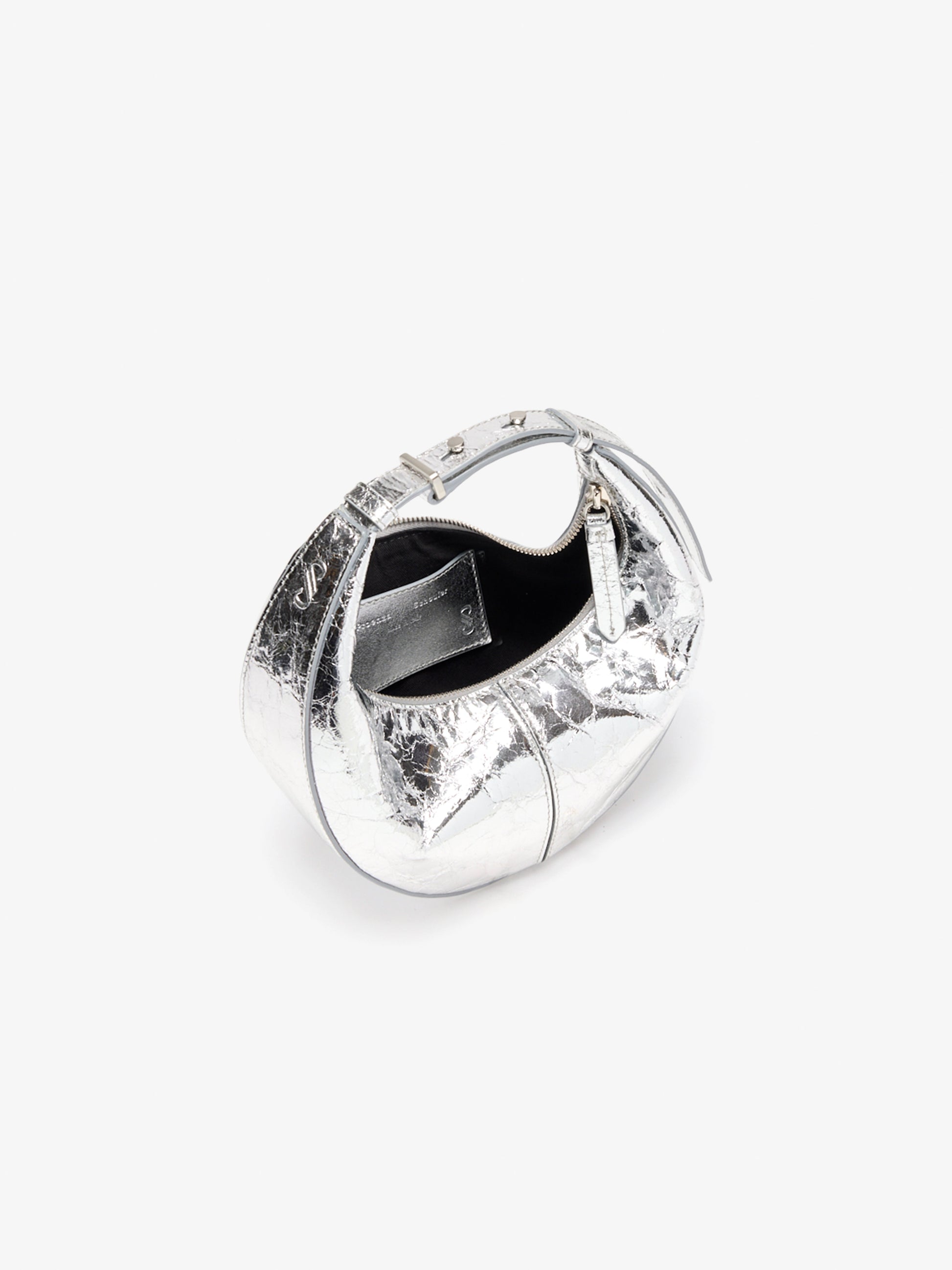 The Mini Slide Bag in Crinkle Metallic is crafted to a small handheld wrist bag with an adjustable strap for a snug fit under the arm. It features a curved silhouette, an interior patch pocket, and a monogram detail at the side.