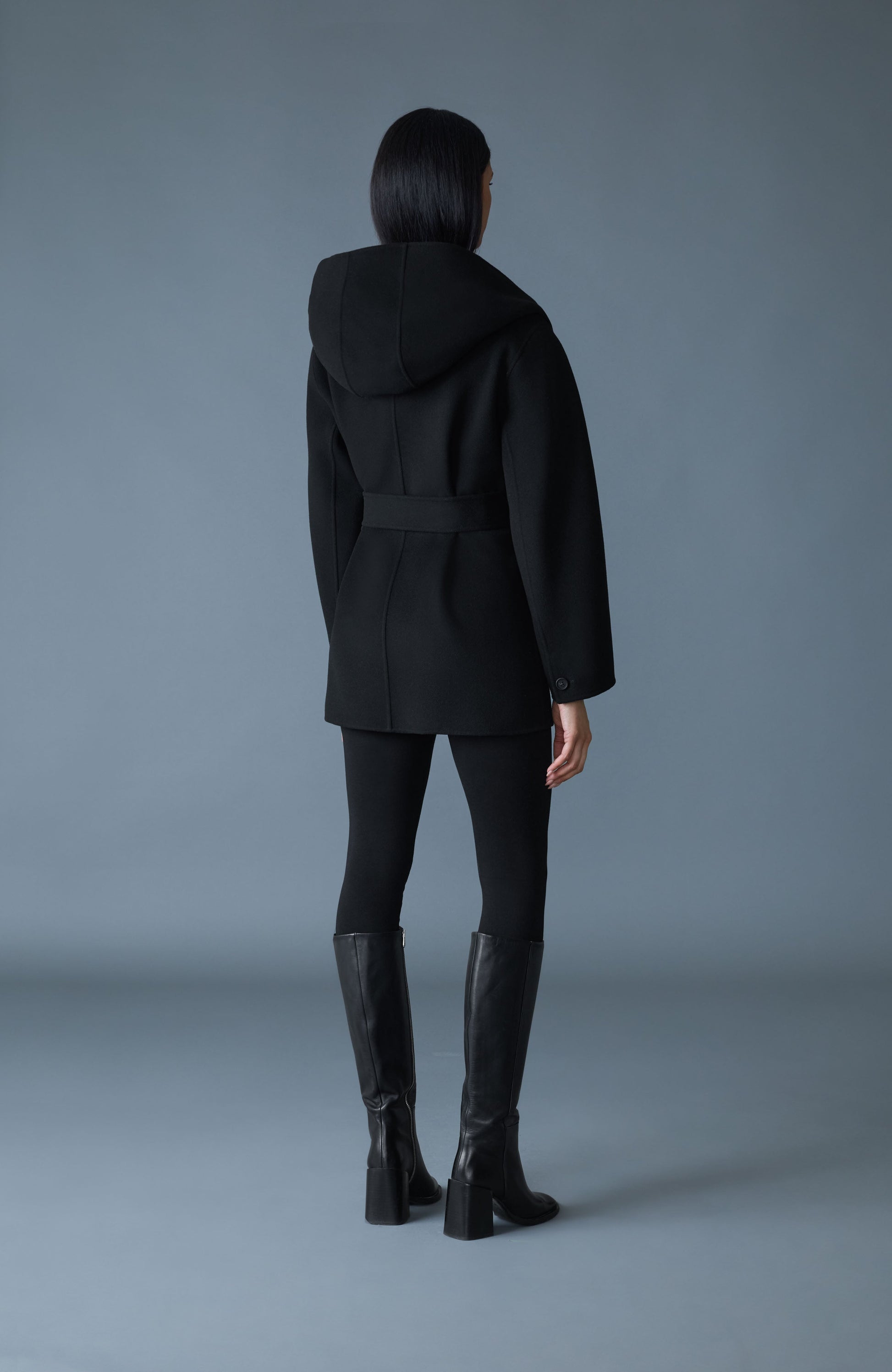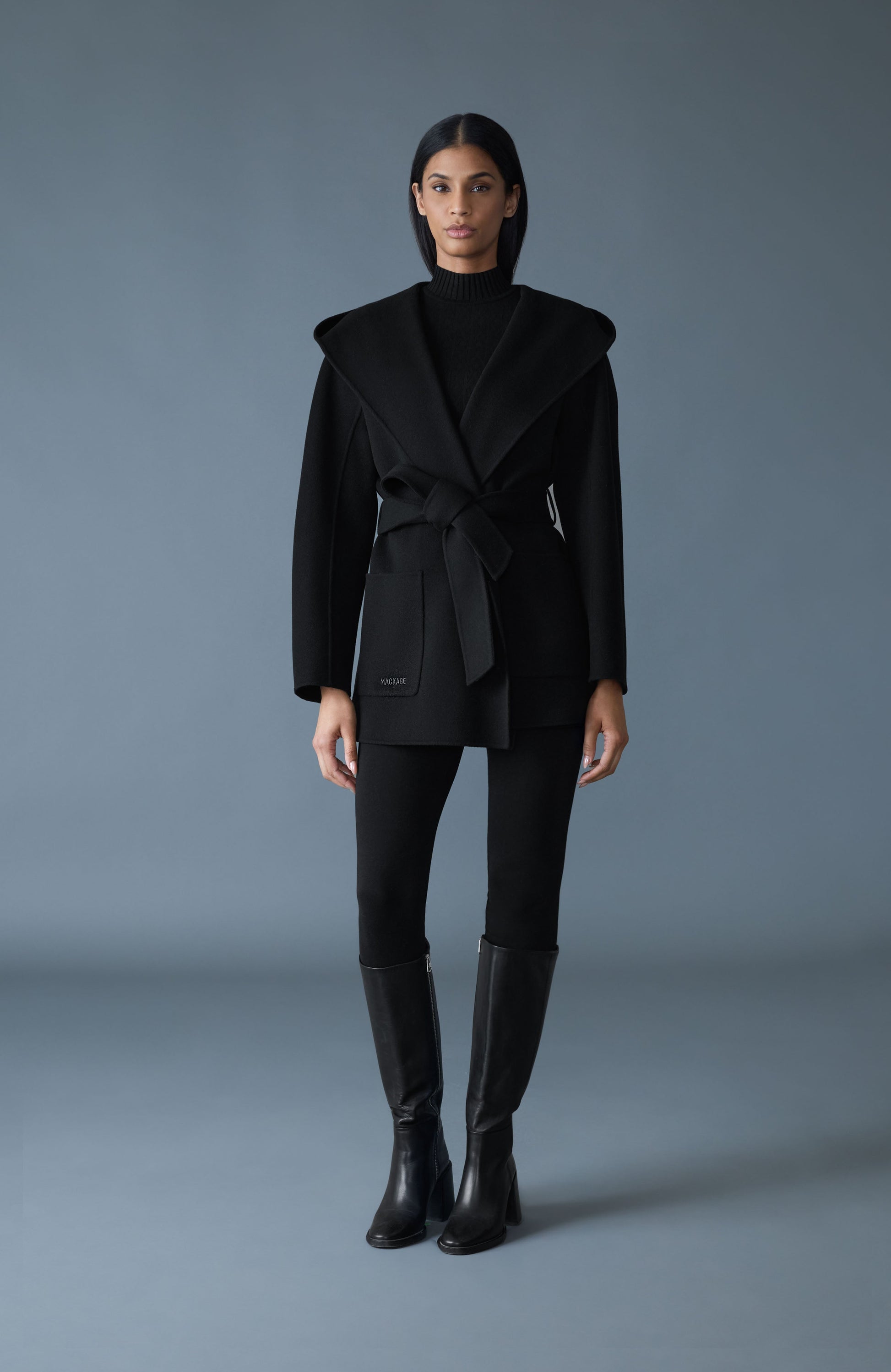 PAYA is a relaxed-fit wrap coat handmade from luxurious and responsibly-sourced double-face wool. Designed for transitional weather, it features a soft unlined construction and bold bathrobe-inspired silhouette. A wide hood, dropped shoulders, and a tonal sash belt add to the casual luxe detailing.