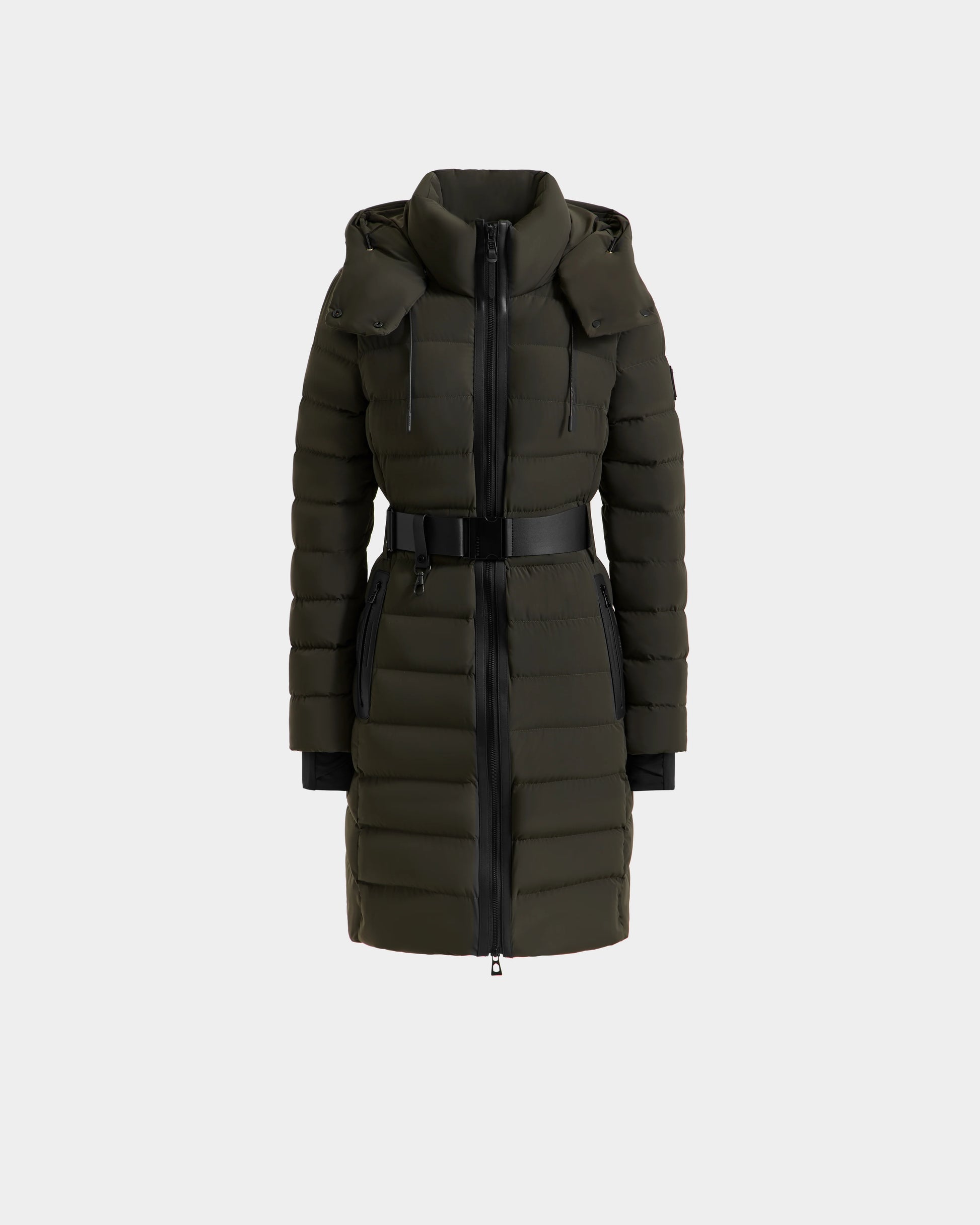 The PELIN M by RUDSAK is a women's mid-length quilted down puffer crafted from water and wind-resistant fabric, ensuring both warmth and style. Featuring RDS-certified down fill, this jacket offers a cozy fit with a figure-enhancing silhouette. The removable hood and adjustable buckled belt add versatility, allowing you to adapt the look to your preference. Ideal for winter, the PELIN S puffer is a perfect blend of practical functionality and modern elegance.