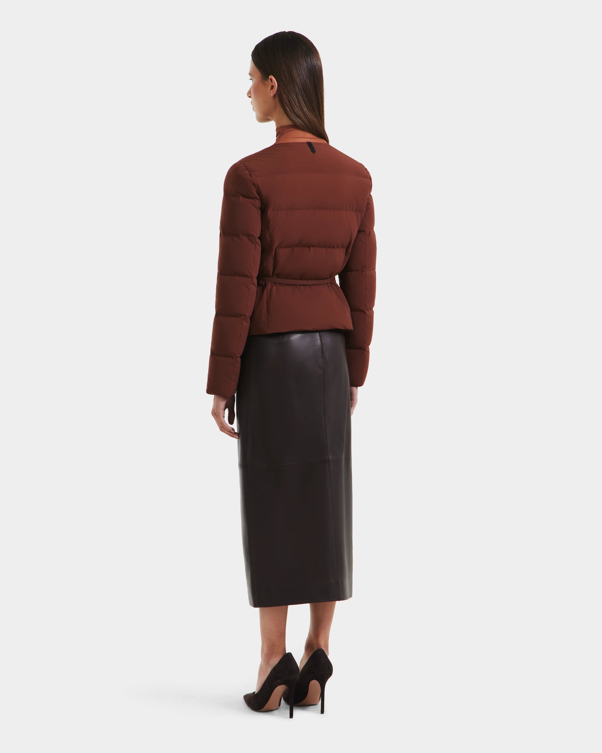 The FRANCESCA by RUDSAK is a lightweight quilted puffer jacket that redefines sophisticated style in outerwear. Insulated with RDS-certified down and feather fill, it provides warmth without bulk. Its cropped, collarless design and thin removable vegan leather belt create a sleek, cinched silhouette, while flap-front pockets and a snap button closure add functional elegance. Perfect for layering, the FRANCESCA effortlessly combines practicality and refined design for a polished look on cooler days.