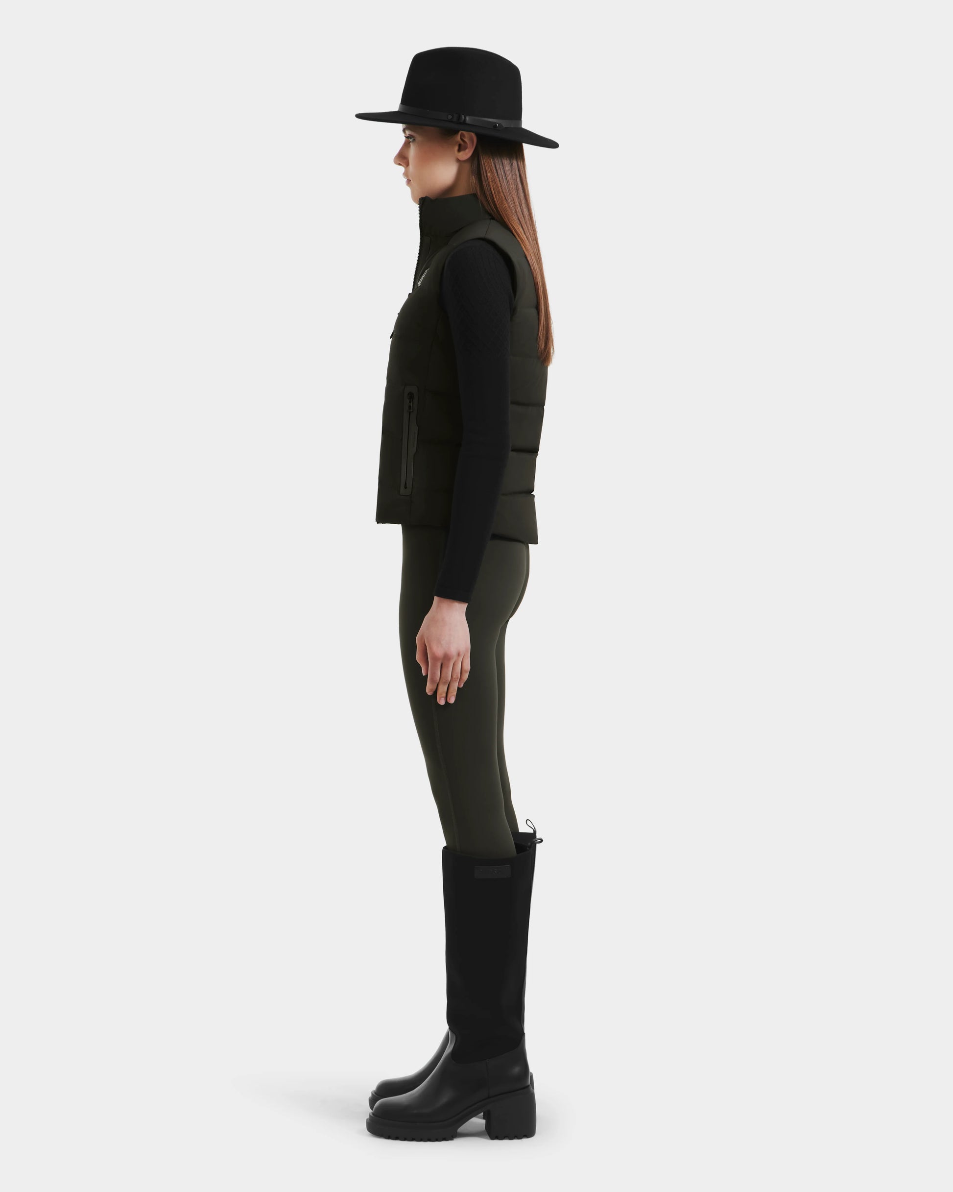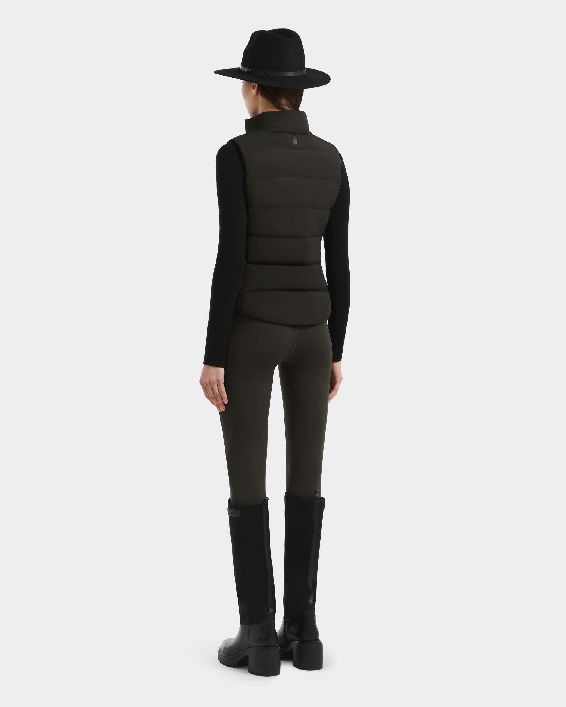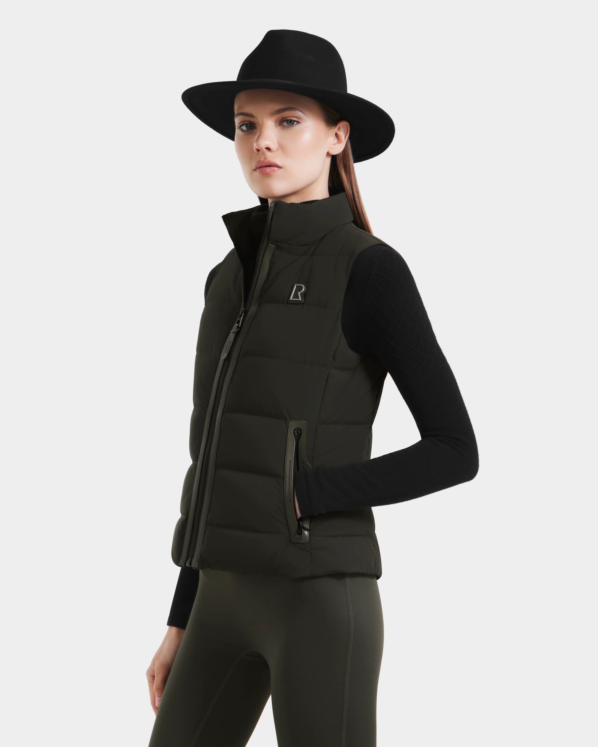 The GABRIELA by RUDSAK is a women’s fitted lightweight down puffer vest that blends practicality with refined design. Insulated with RDS-certified down, it offers exceptional warmth without bulk. Quilted for a sleek silhouette, it features vegan leather trims that add a sophisticated edge. A light day essential for spring, it’s perfect for layering over knits or under coats. Elevate your seasonal style with this versatile and polished layering piece.