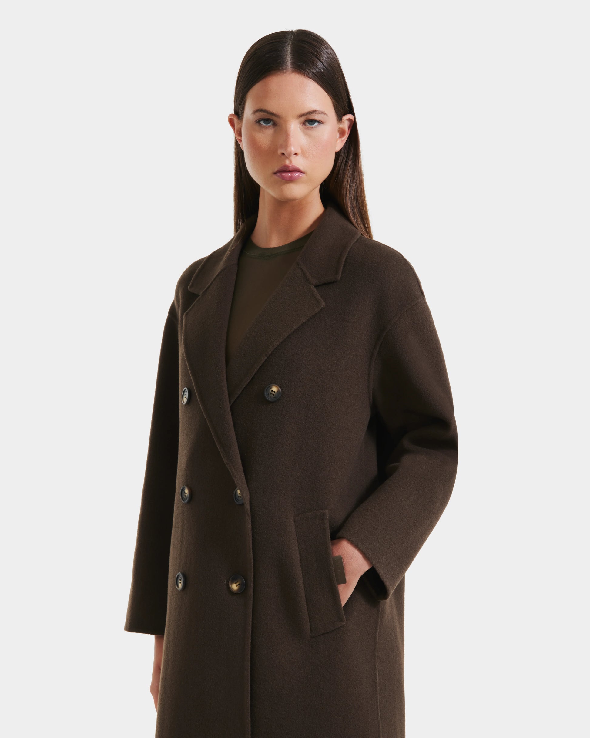 The JADE by RUDSAK is a women’s wool overcoat designed for timeless sophistication with a relaxed, modern fit. Featuring a classic double-breasted front, this tailored silhouette is crafted from a premium wool blend that offers warmth without compromising on style. Its clean lines and versatile length make it the perfect outer layer for city strolls or office commutes. Elevate cold-weather dressing with JADE—a refined essential that balances structure and softness with signature RUDSAK polish.