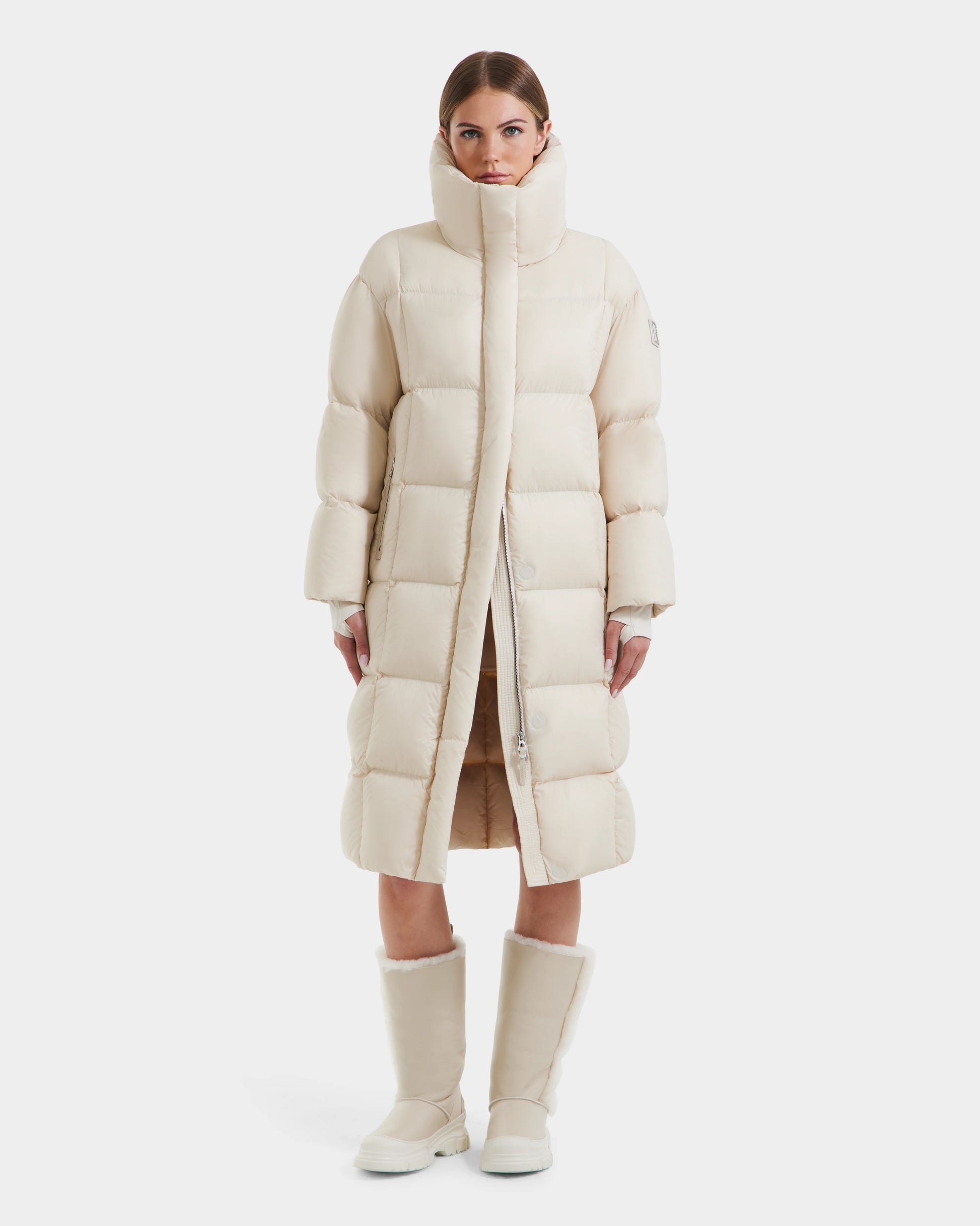 Stay warm and stylish with the SASHA by RUDSAK, a women’s long down puffer coat with a semi-lustrous finish and a removable hood for versatile wear. Insulated with RDS-certified down, it features a high funnel neck, magnetic center placket with front zipper, and signature branding. Both wind- and waterproof, this coat delivers maximum protection against the elements. Designed for winter, SASHA blends elevated function with sleek design—an essential for the modern, fashion-forward wardrobe.