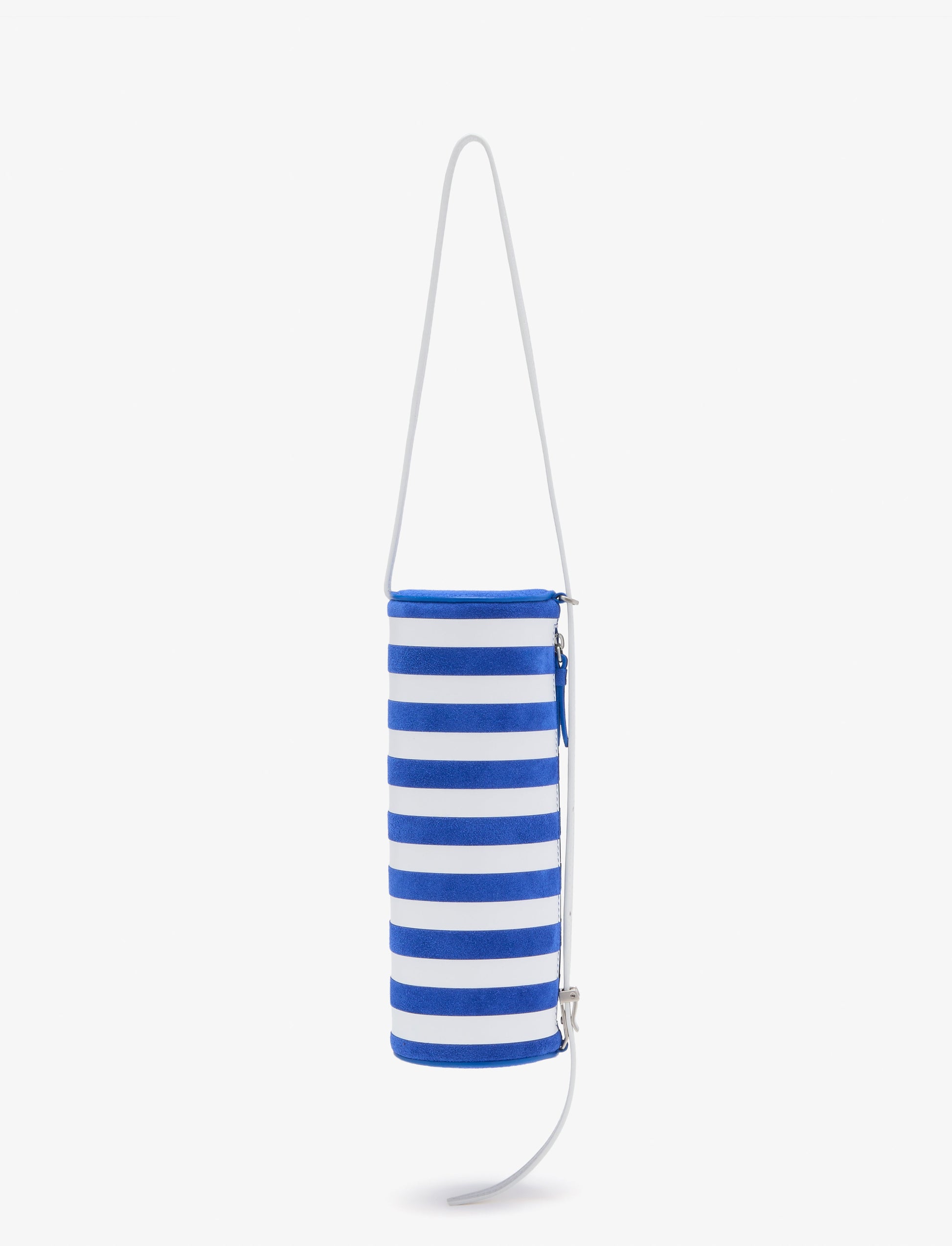 Silo Bag in Pieced Stripes is crafted in alternating suede and nappa leather to a small non-rigid barrel shape. Detailed with functional slider hardware, this bag can be worn in two ways. Wear as a traditional shoulder bag or slide the strap through the ring to create an elongated shape.