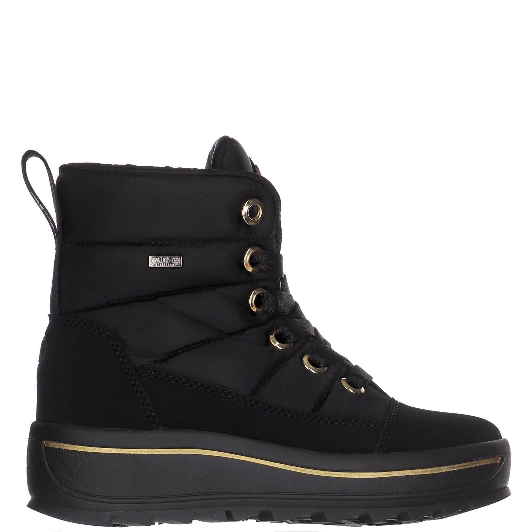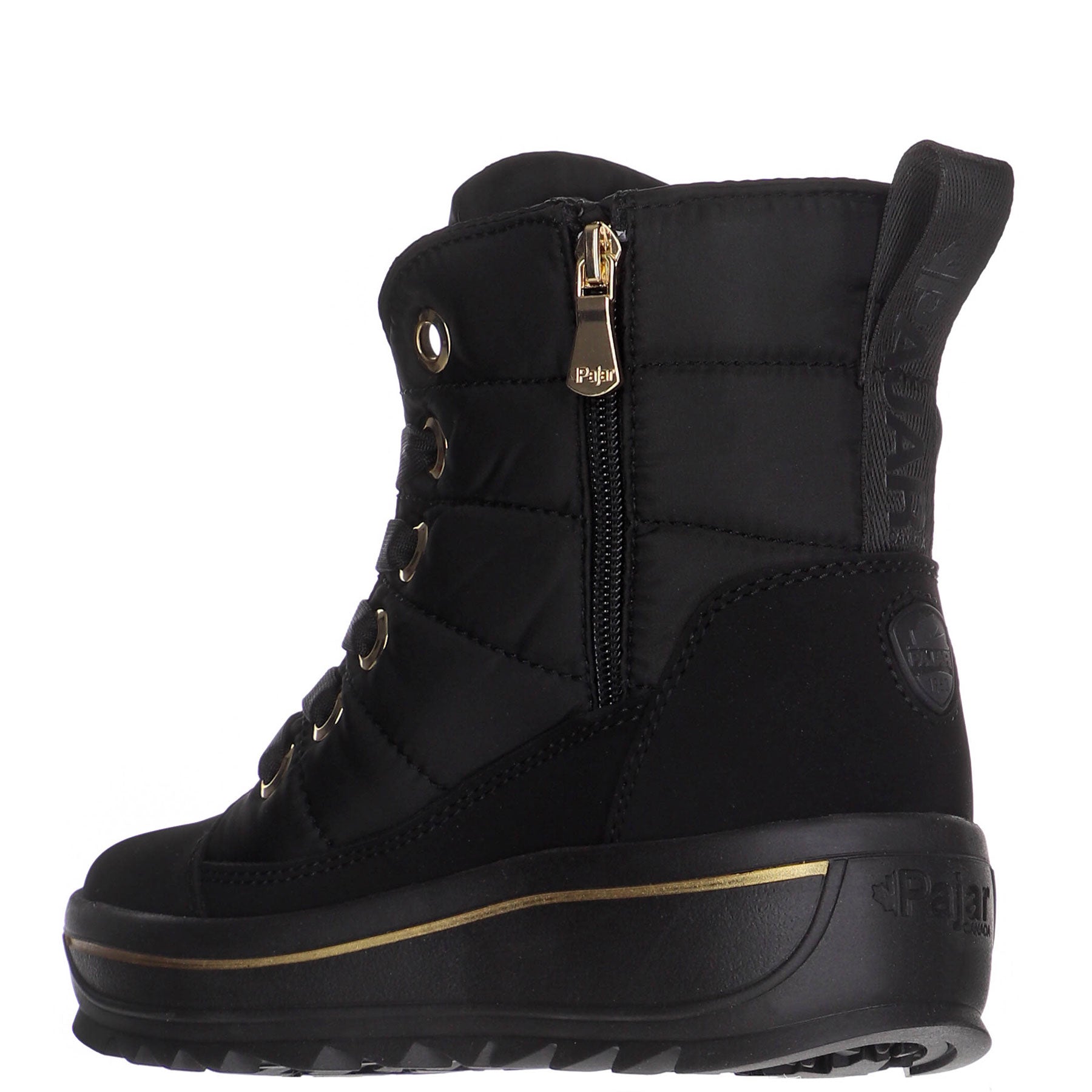 Winter wonders and snow fun are here, with our brand new Tyra boot from Pajar Canada, expertly crafted in quilted soft iron Italian nylon and vegan nubuck leather trim. The upper is entirely seam-sealed and comfort rated to -30°C, and -22°F to keep your feet snug all winter long with a red line within the sole. The signature Pajar Canada lightweight toboggan traction lug sole with 1-inch platform and 1.5-inch heel will get you through icy streets in style keeping you surefooted all the while. Our premium removable comfort molded insole features a cushy wool blend that is both breathable and anti-microbial. The waterproof upper has been pre-treated to repel water and stains.
