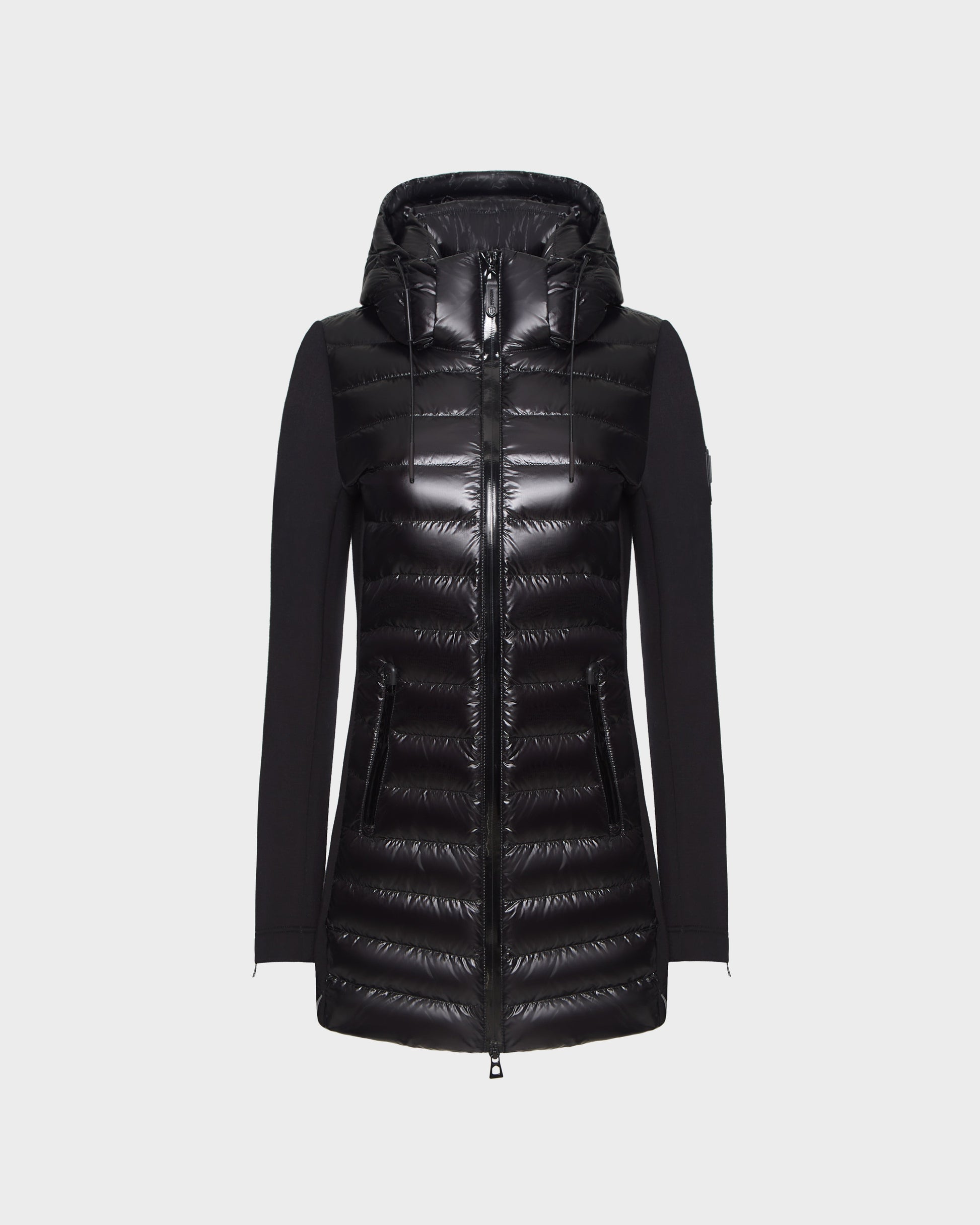 The MERINA by RUDSAK is a women’s light jacket that features a mix of materials to move you through seasons in style. This mid-length jacket has a quilted down front, back and hood designed in Cloud fabric that is insulated with premium RDS certified down that provides the warmth and lightness you expect in a transitional style. Neoprene sleeves and side body panels allow for extra stretch and comfort. With a removable hood and high gloss waterproof zippers, this lightweight jacket is sure to be an essential all season long.